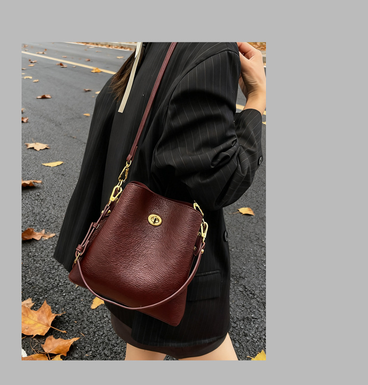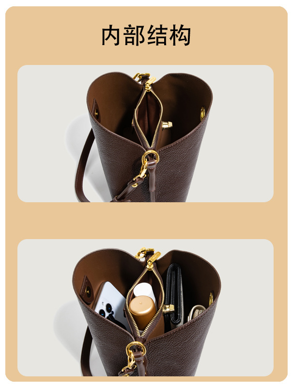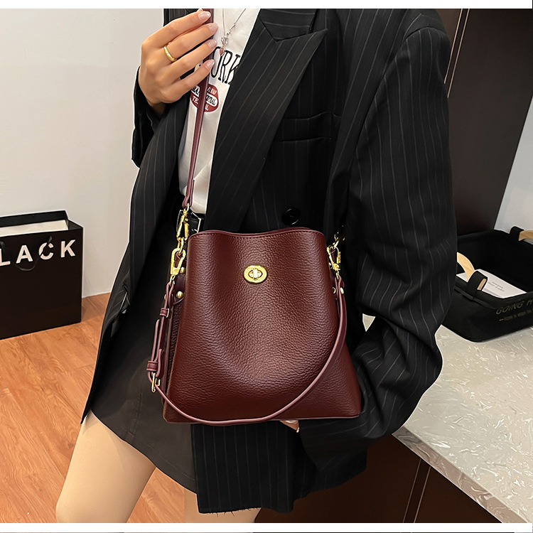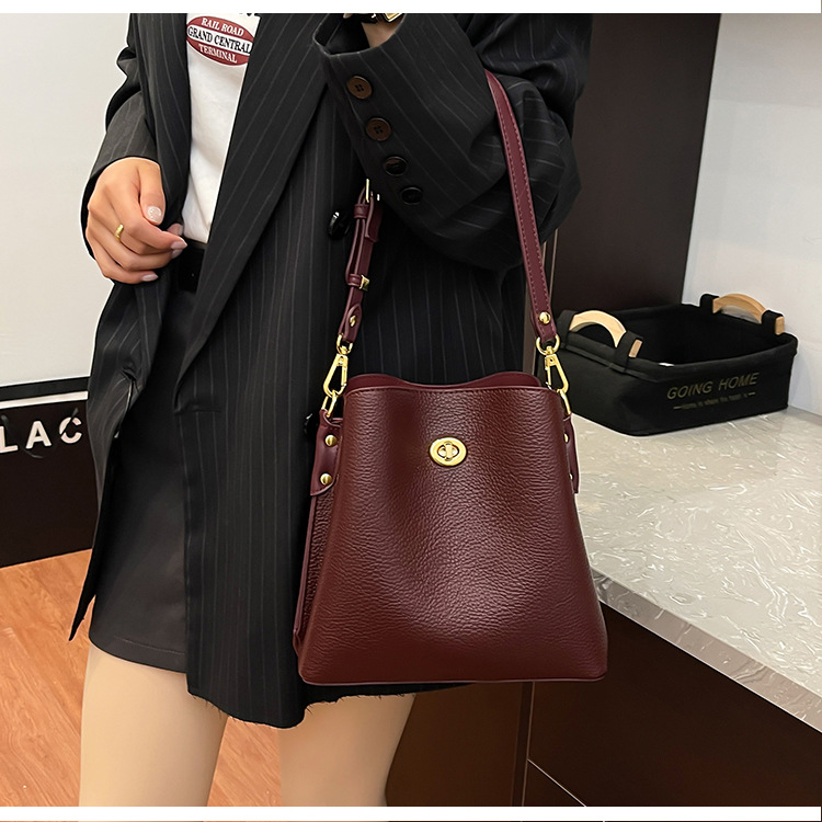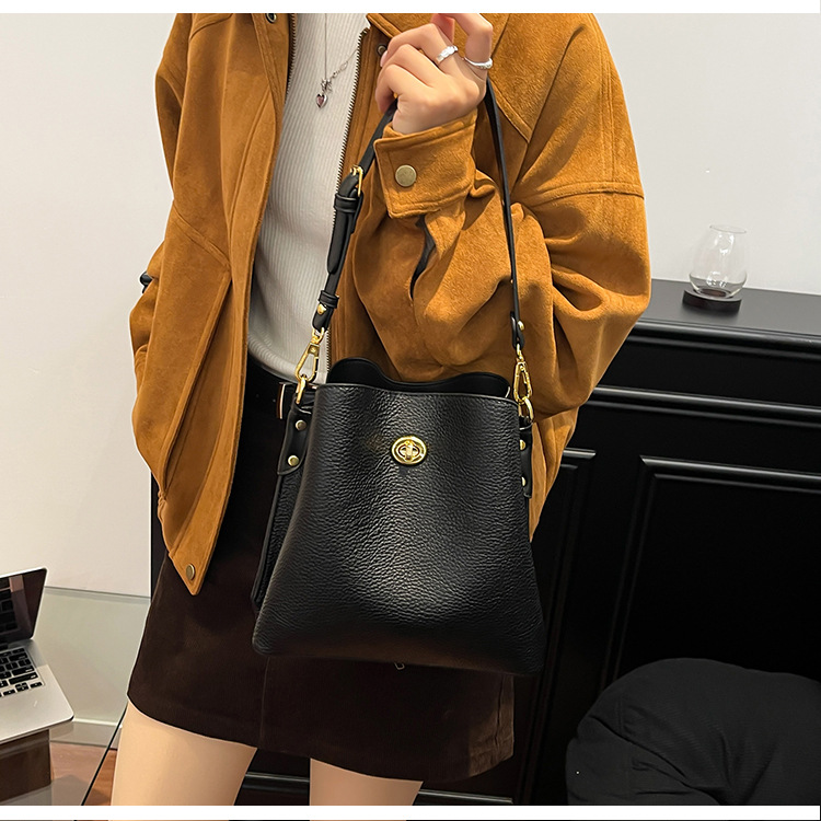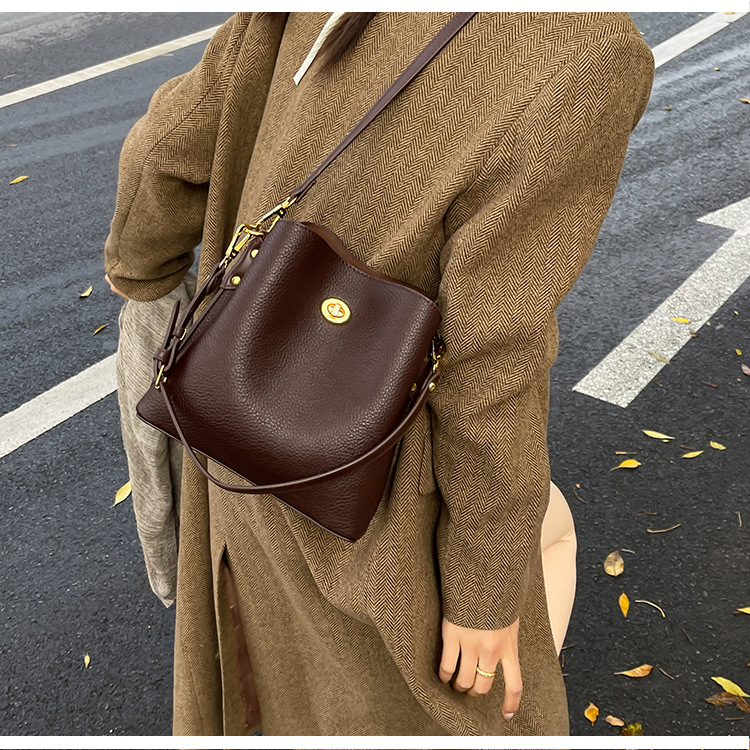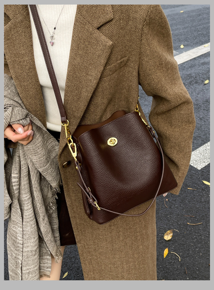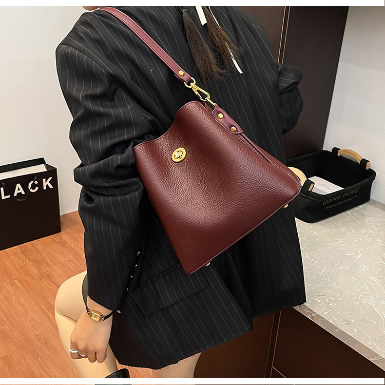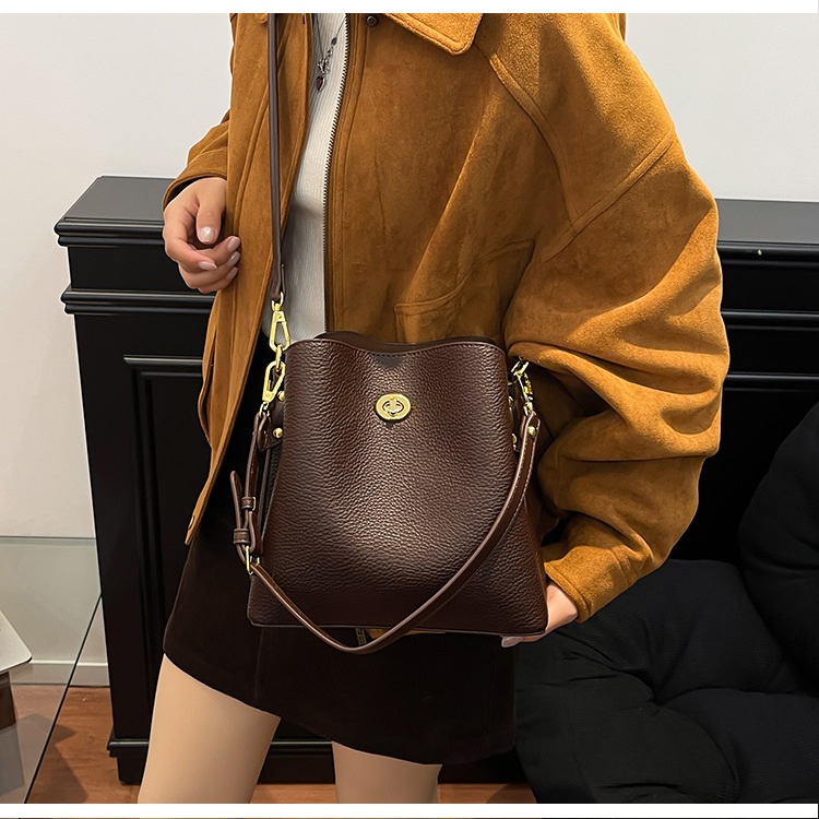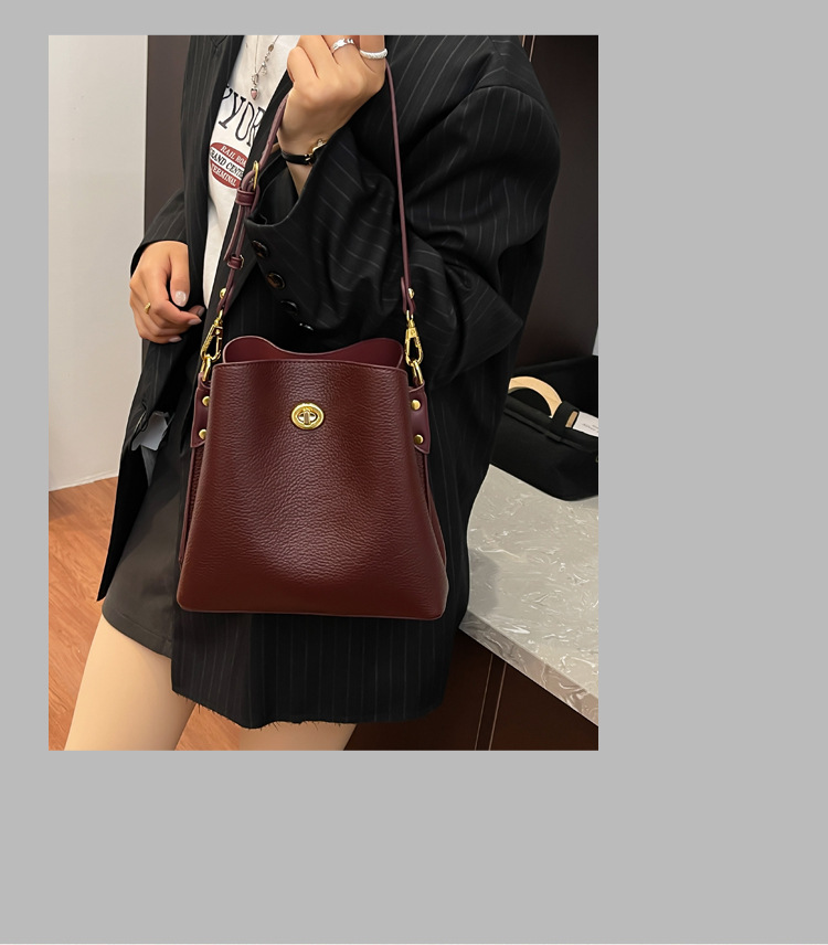 Bolso de mujer nuevo litchi cuero de vaca multicapa bolso de cubo de mano retro lujoso bolso de hombro bolso de viaje