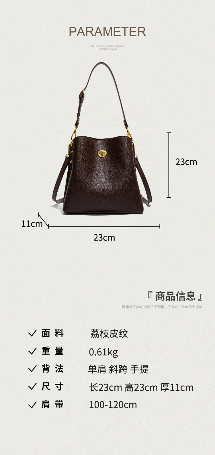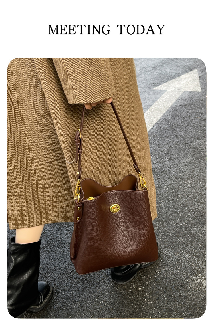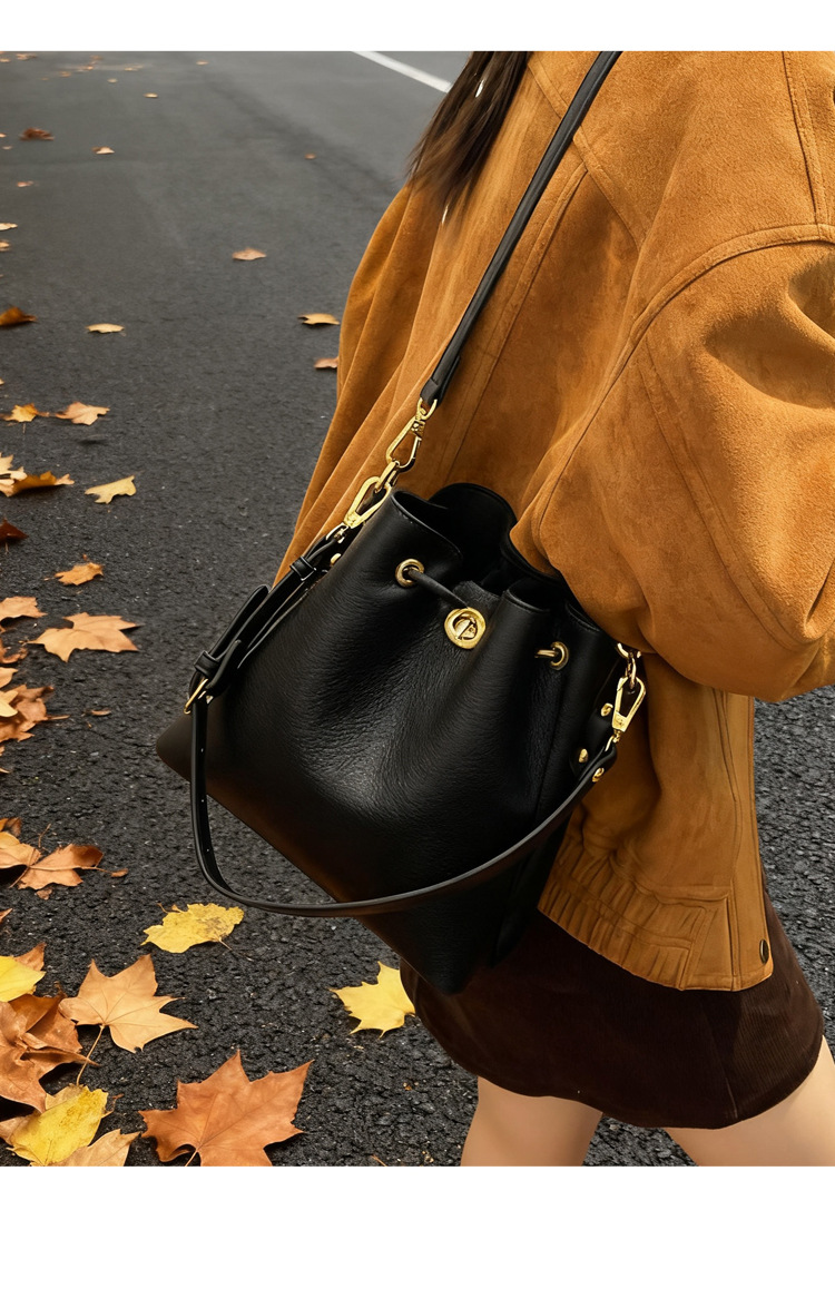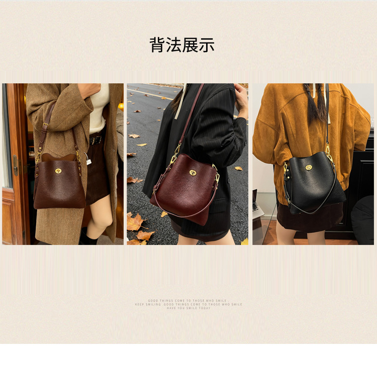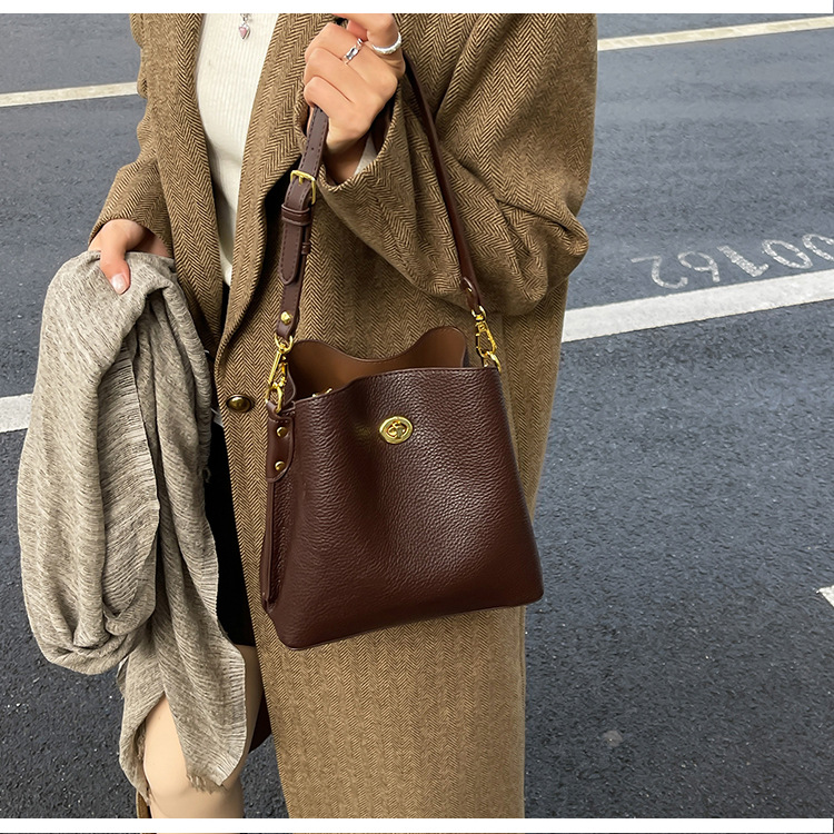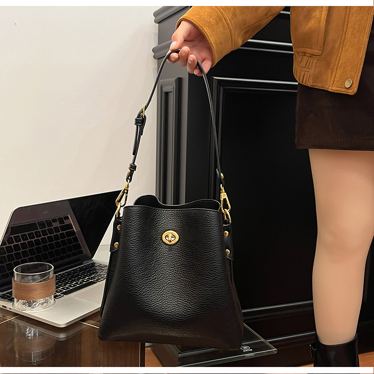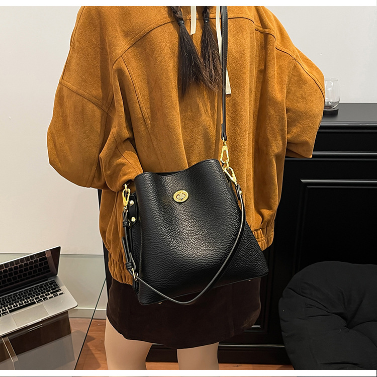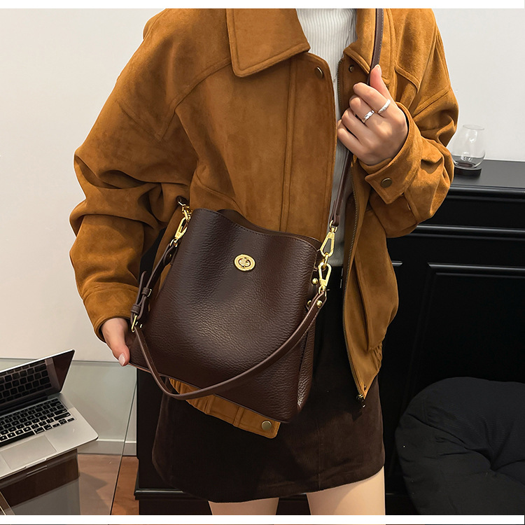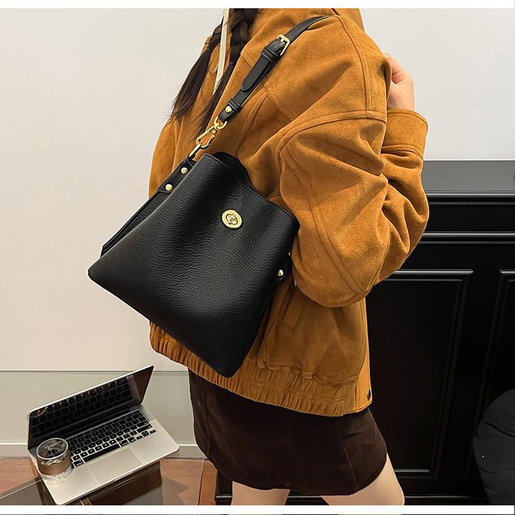 Bolso de mujer nuevo litchi cuero de vaca multicapa bolso de cubo de mano retro lujoso bolso de hombro bolso de viaje