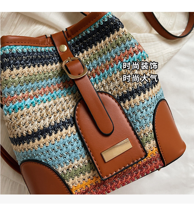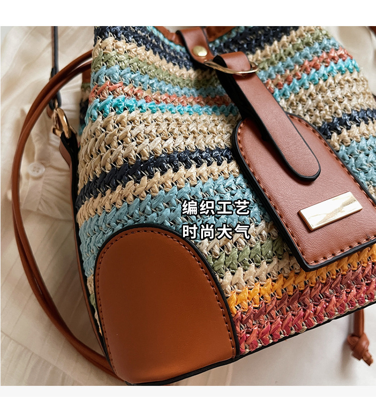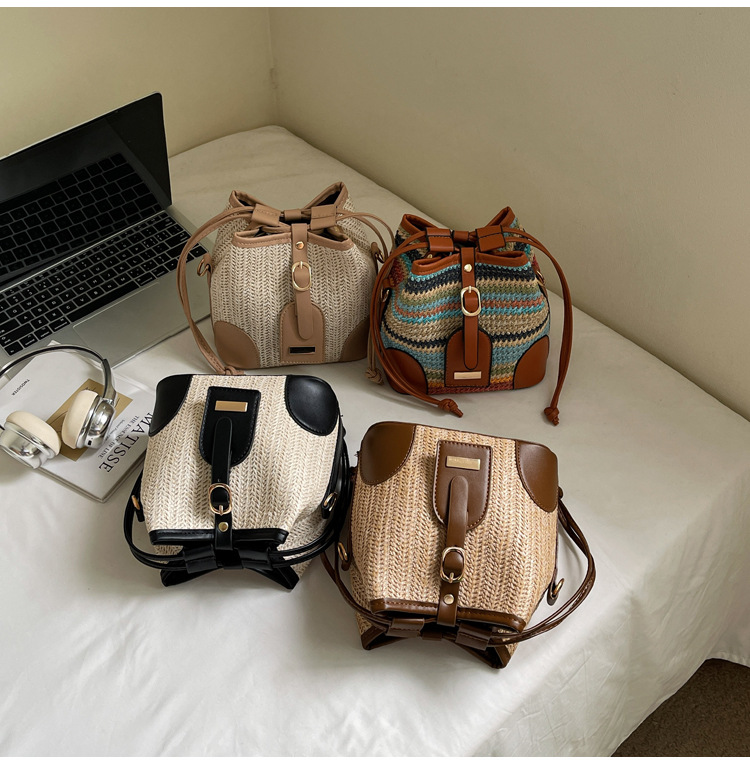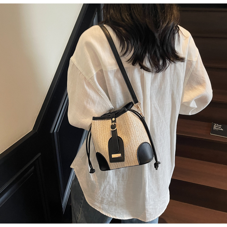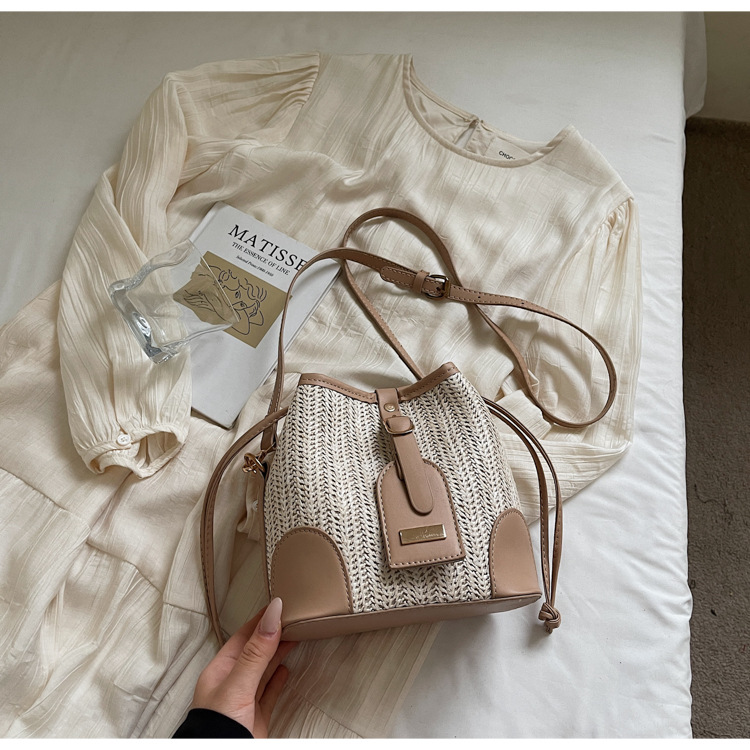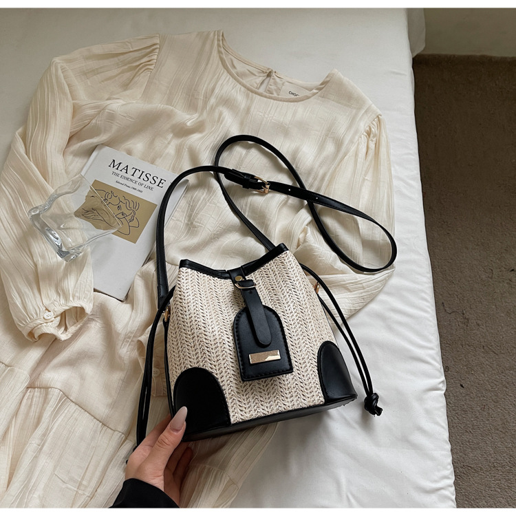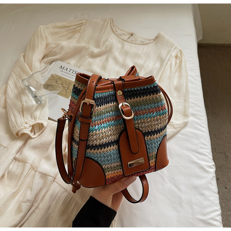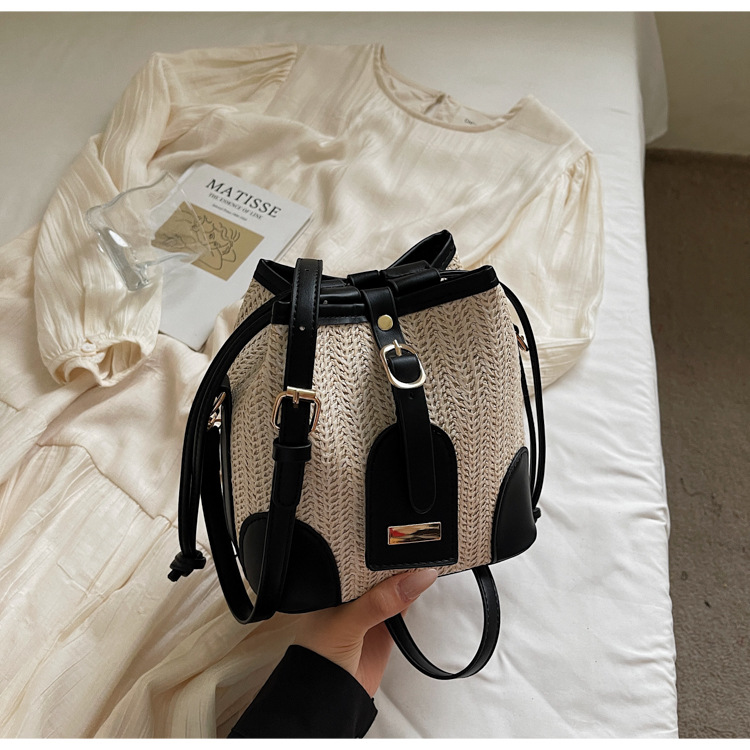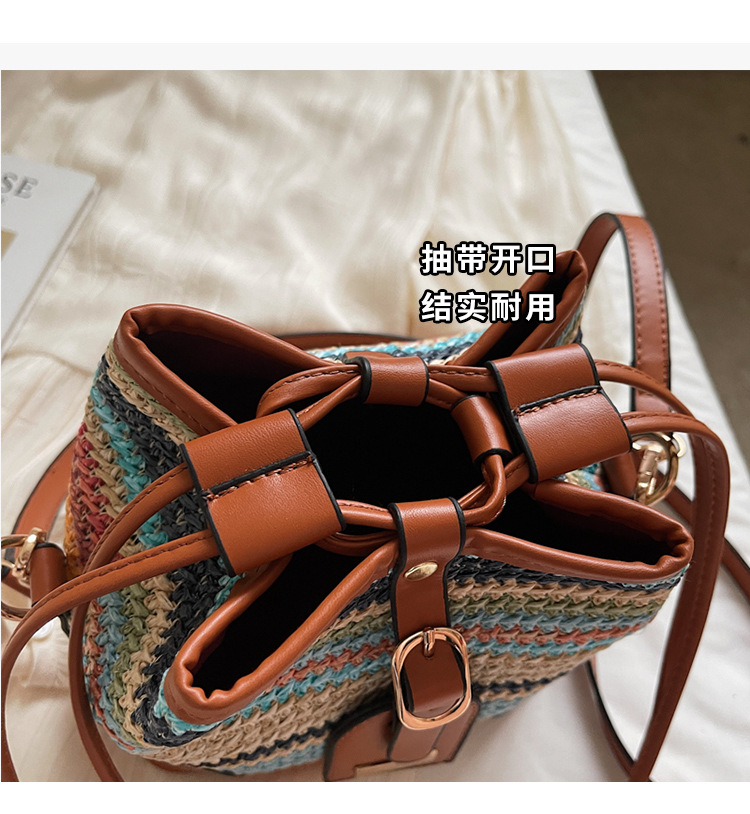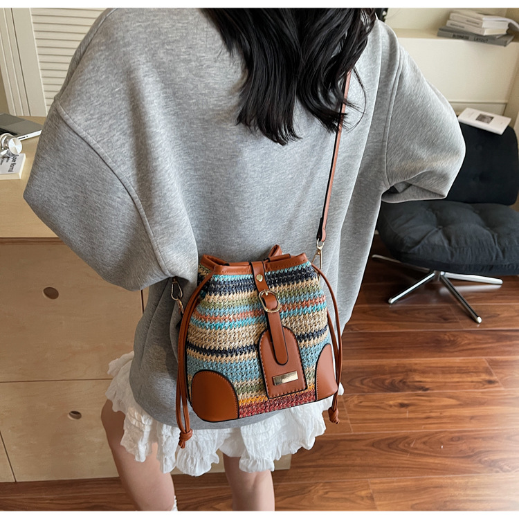 Bolso tejido femenino 2025 verano nuevo estilo juego junto al mar bolso de cubo de viaje tendencia bolsa de paja de mensajero de todo fósforo de nicho