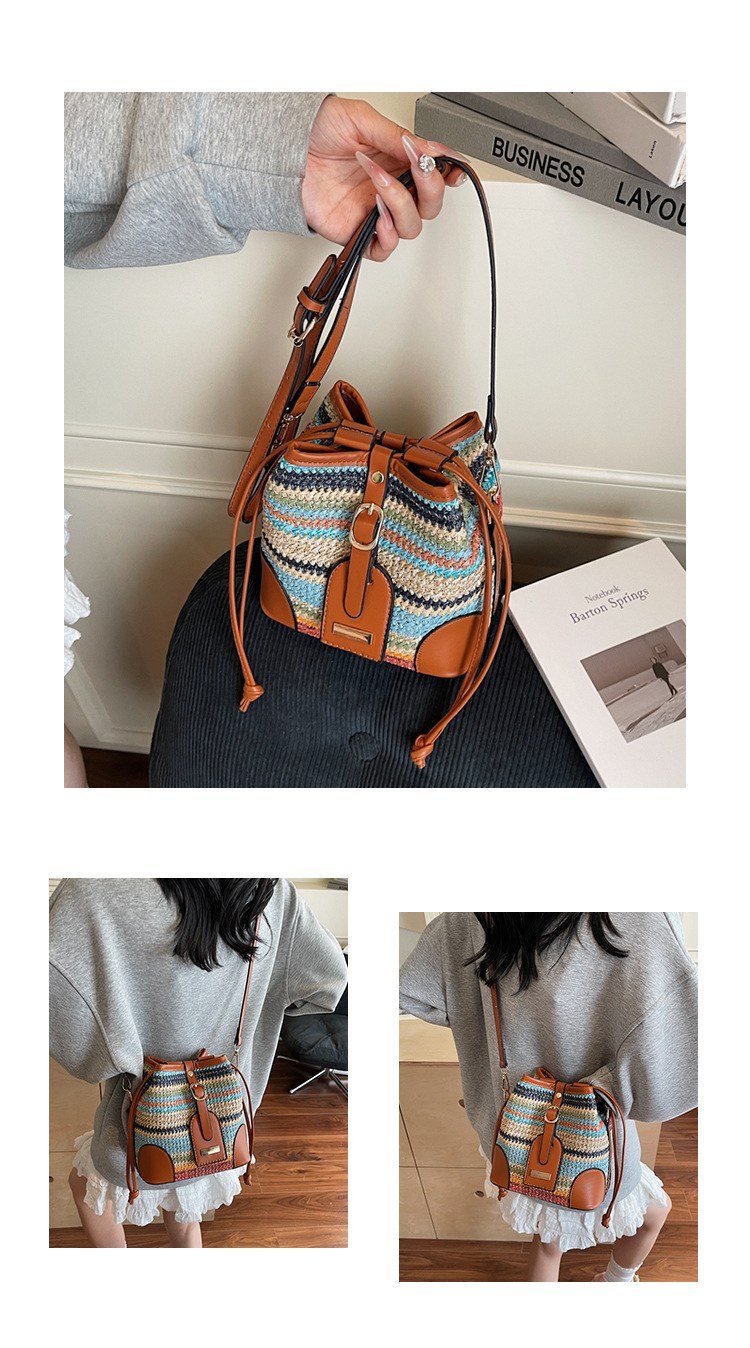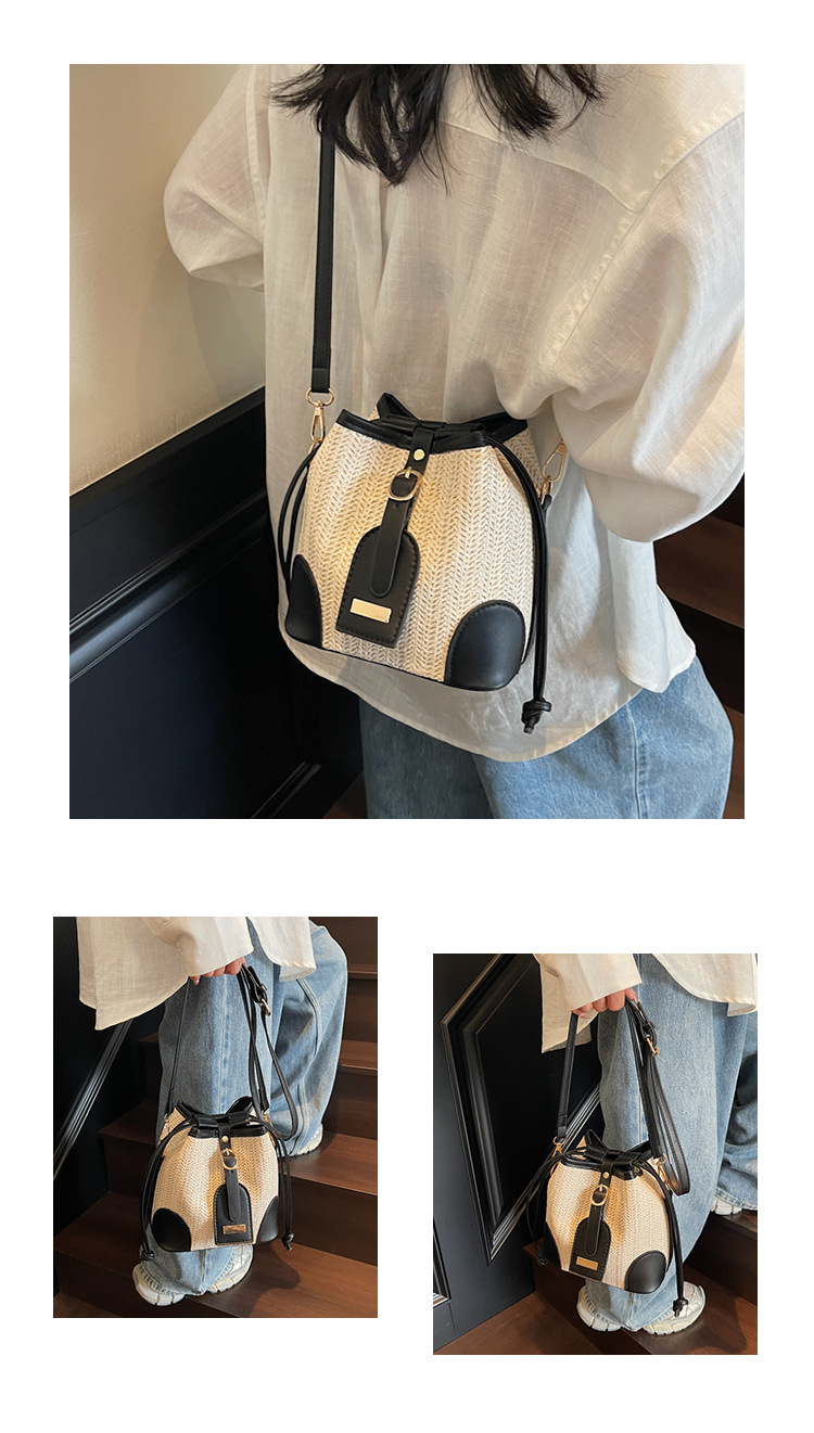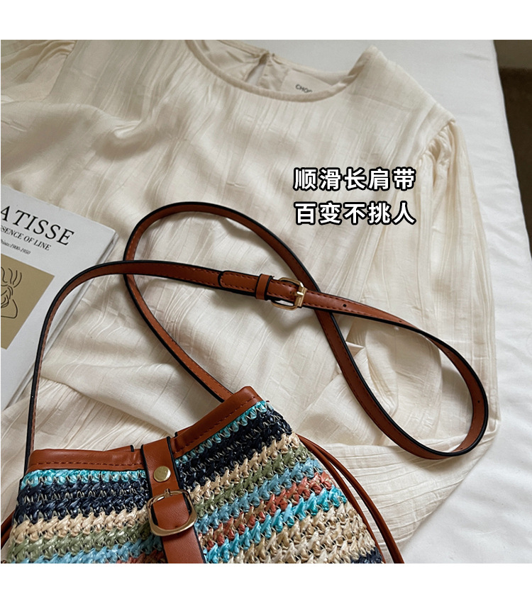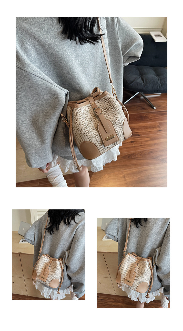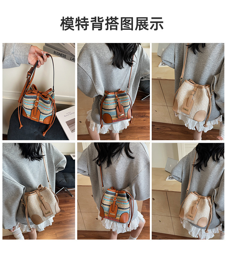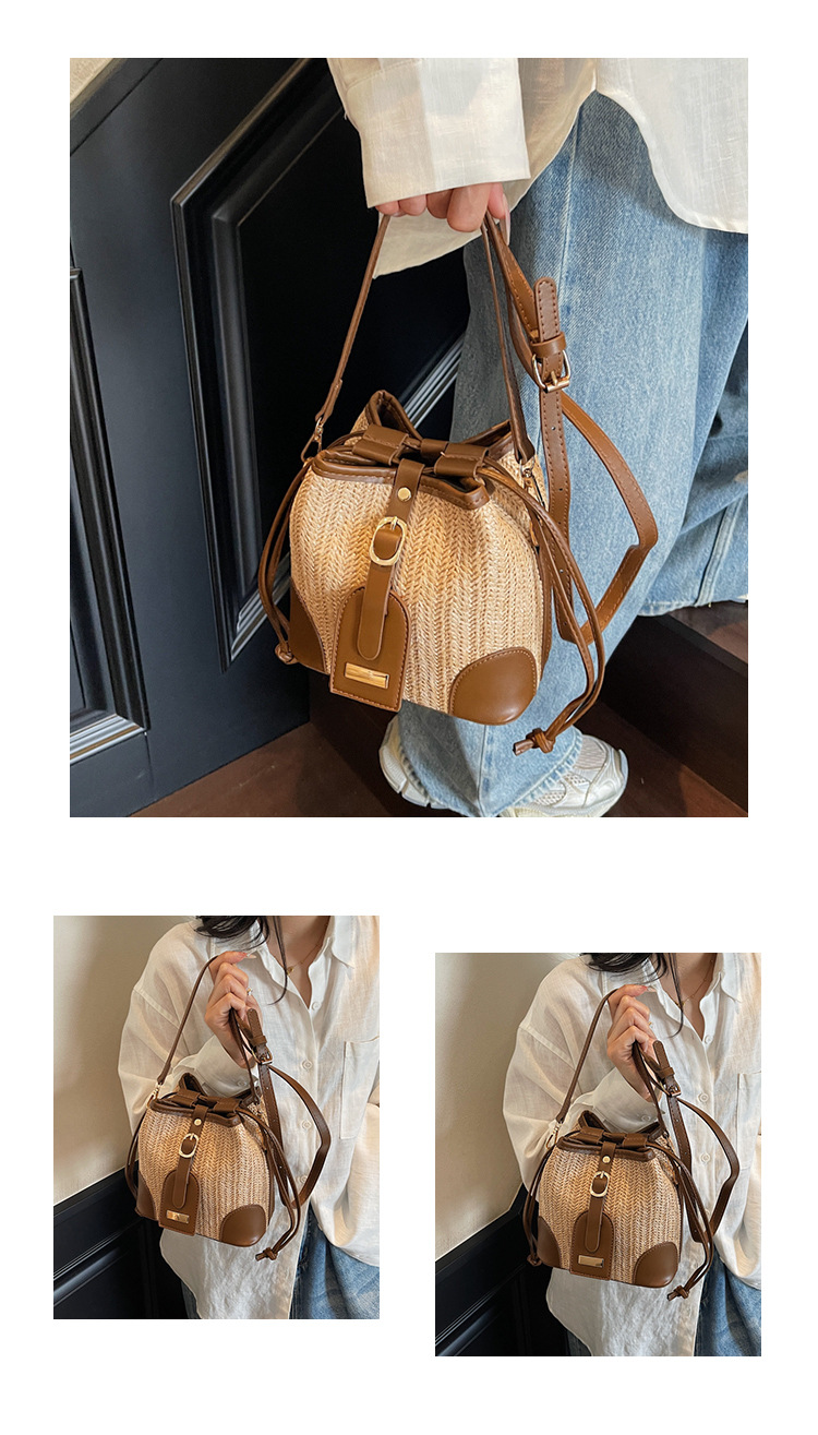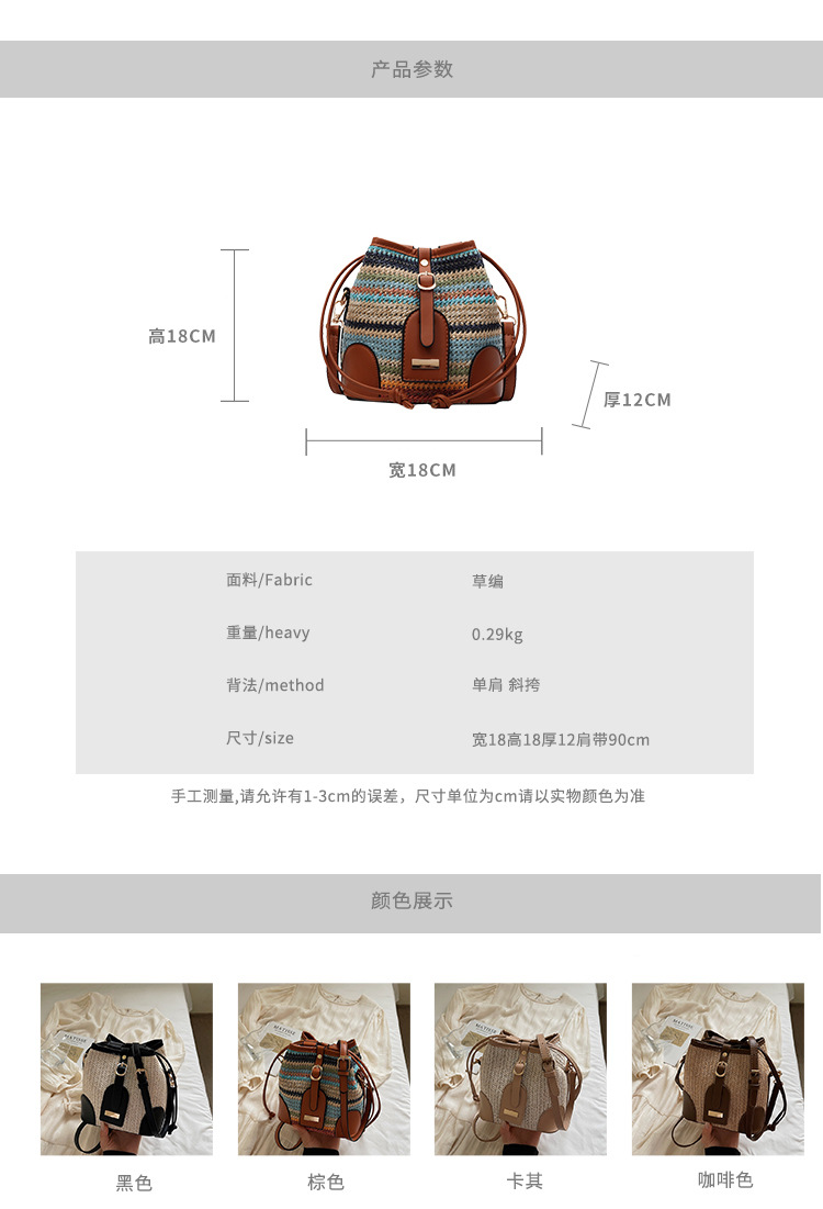 Bolso tejido femenino 2025 verano nuevo estilo juego junto al mar bolso de cubo de viaje tendencia bolsa de paja de mensajero de todo fósforo de nicho