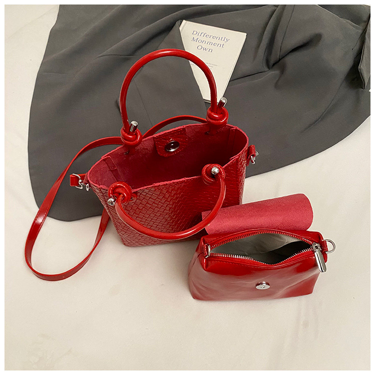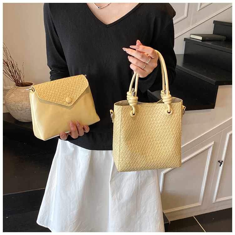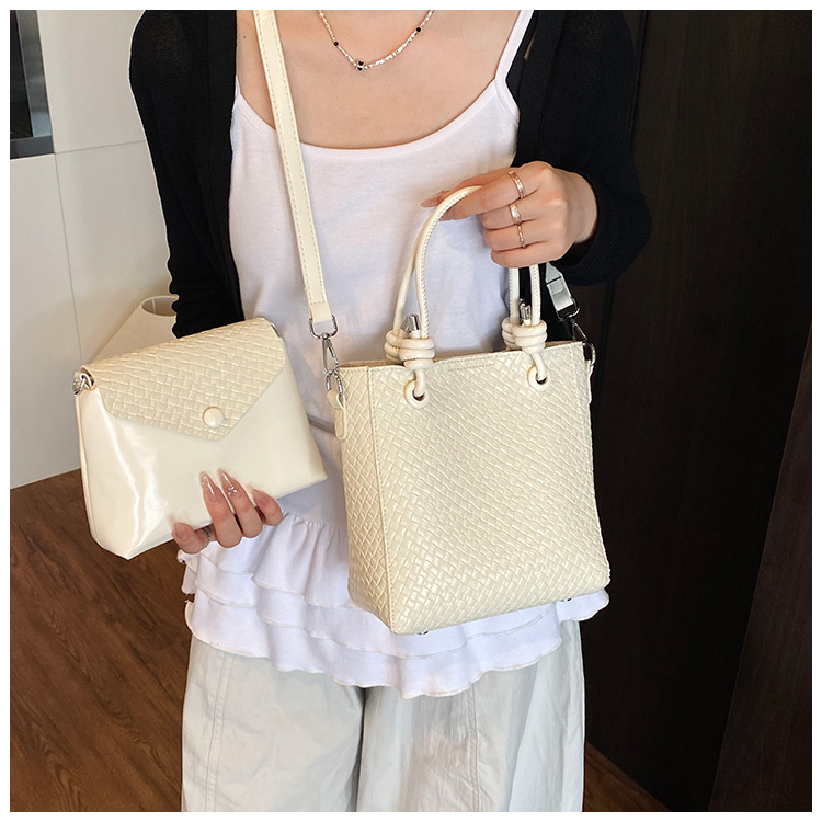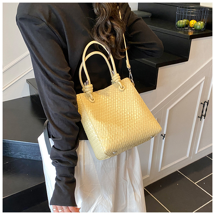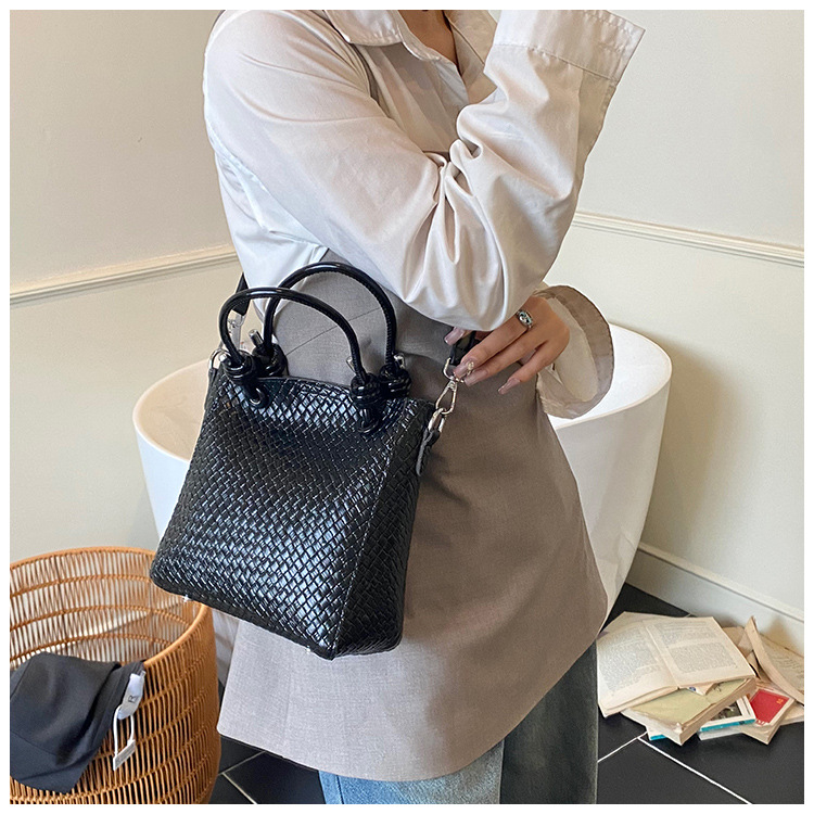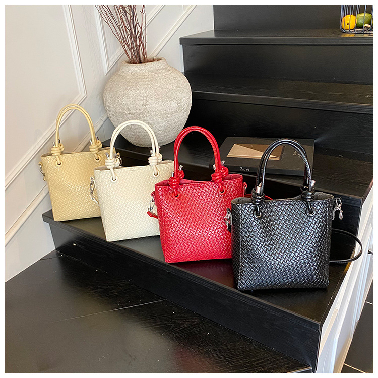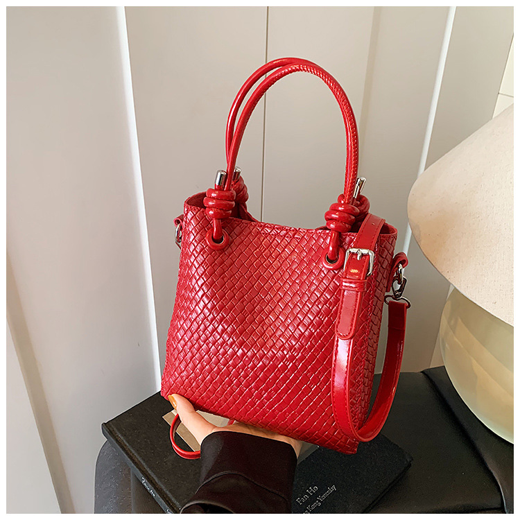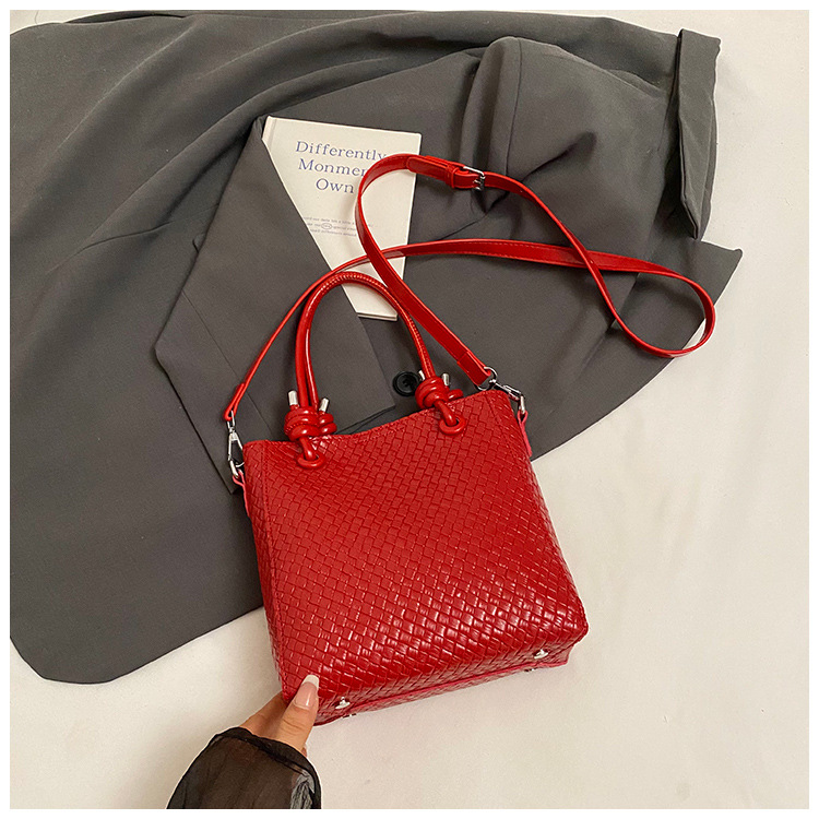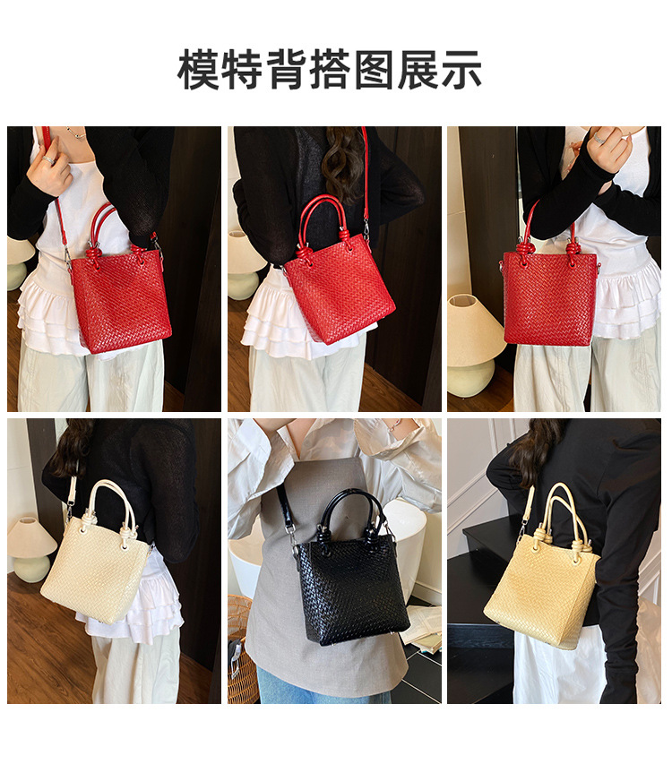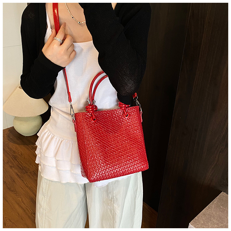 Bolso de cubo portátil tejido de comercio exterior femenino 2025 nuevo estilo estilo estilo occidental todo-fósforo bolso de mensajero de fuego súper casual simple
