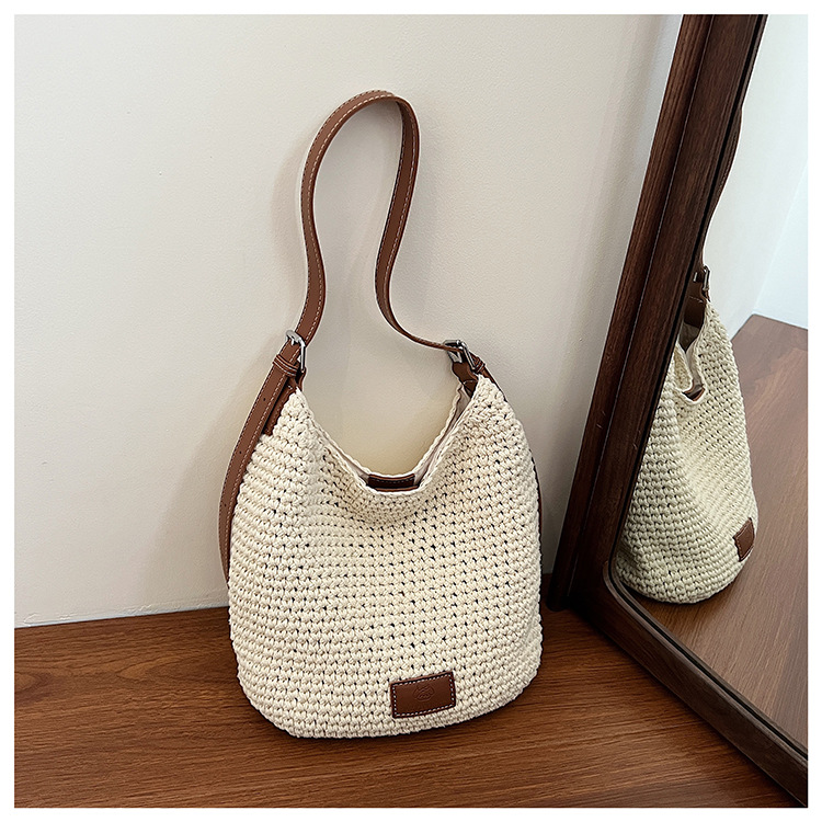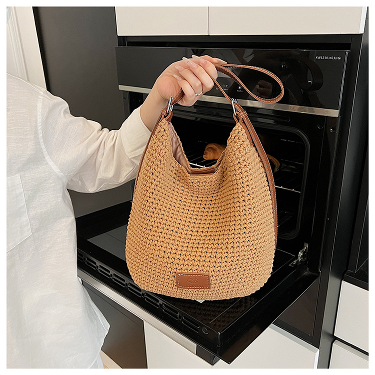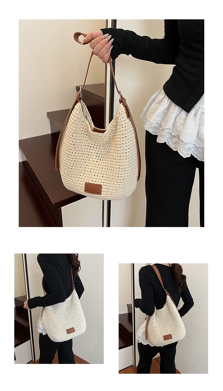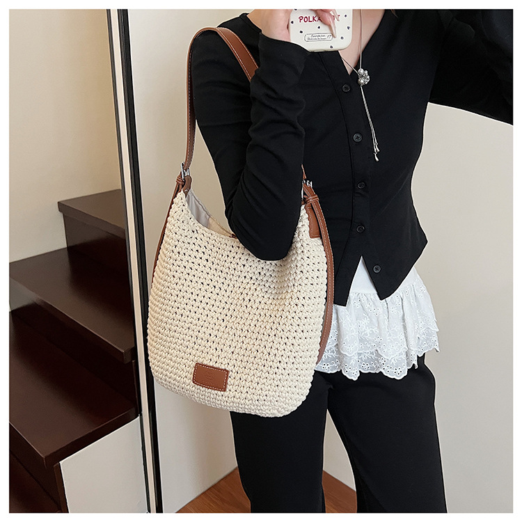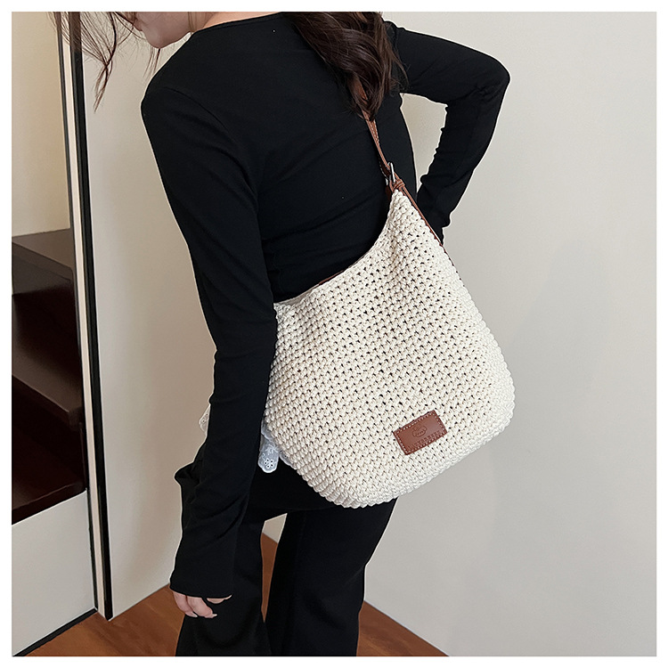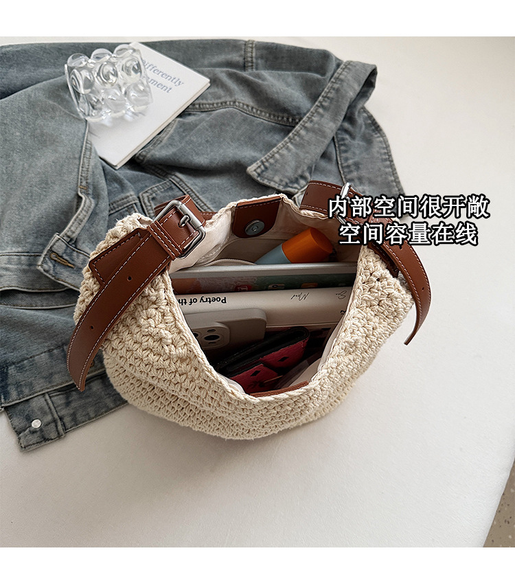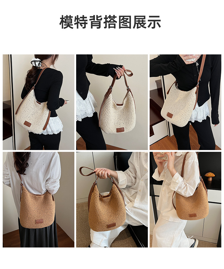 Bolso tejido hueco de estilo explosivo de verano para mujer de gran capacidad 2025 nuevo estilo de ocio junto al mar estilo vacaciones bolso tejido de paja de cercanías