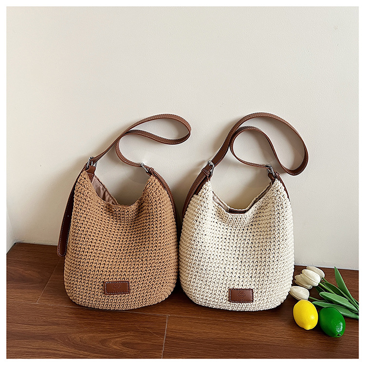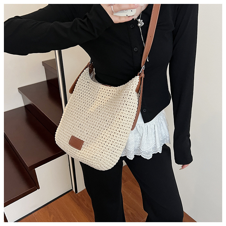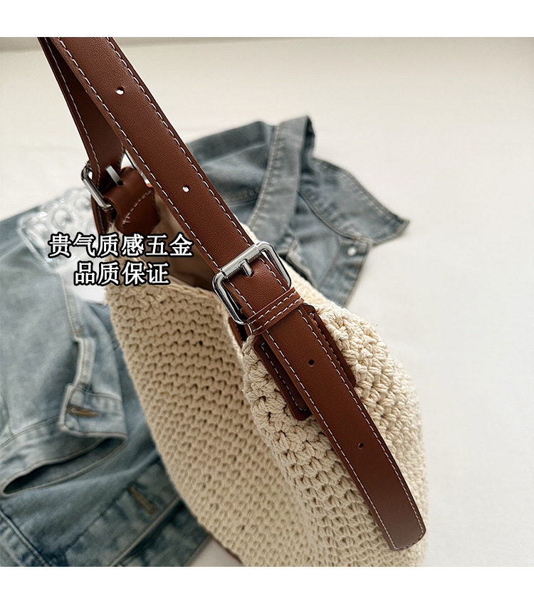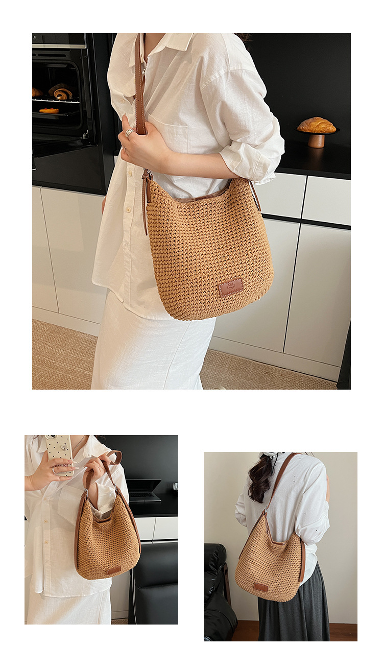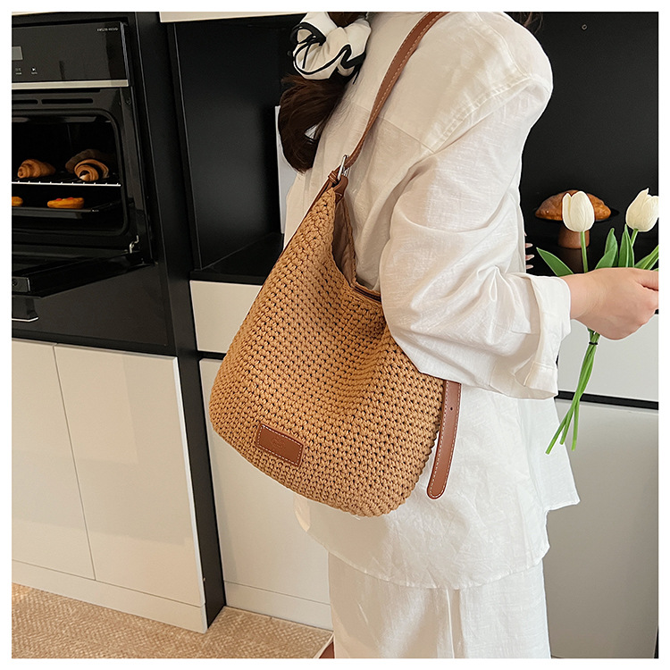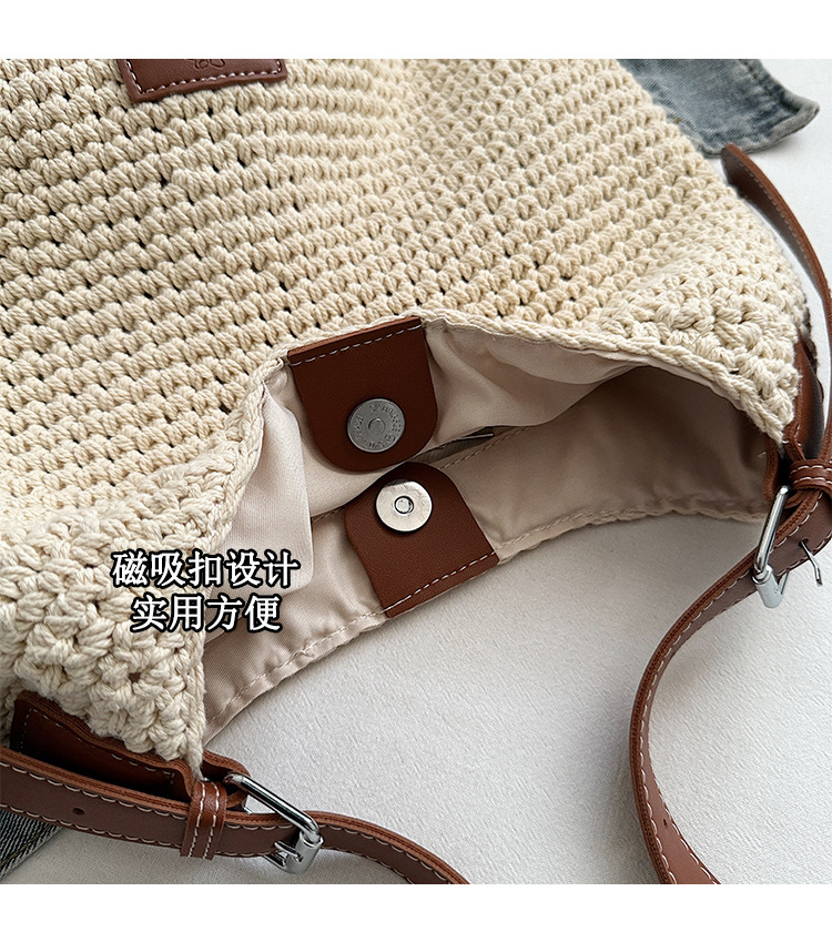 Bolso tejido hueco de estilo explosivo de verano para mujer de gran capacidad 2025 nuevo estilo de ocio junto al mar estilo vacaciones bolso tejido de paja de cercanías