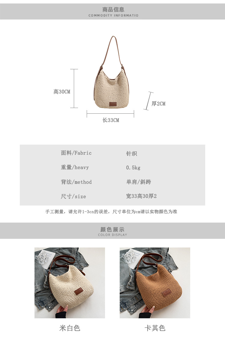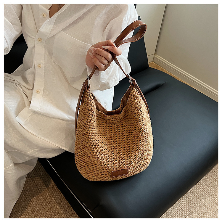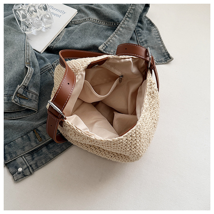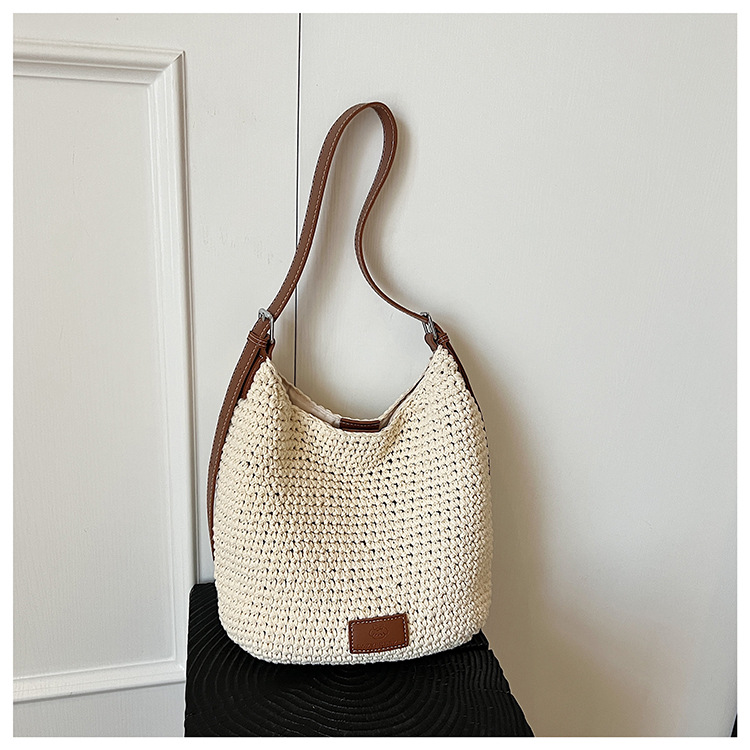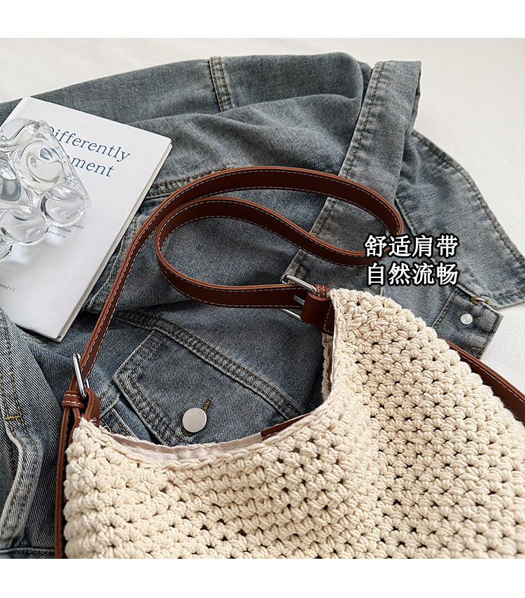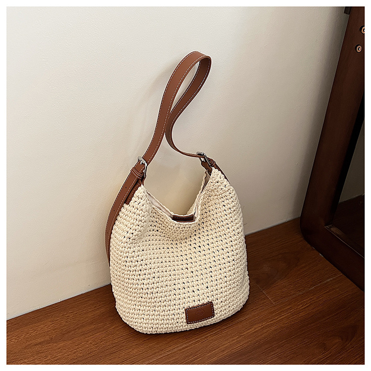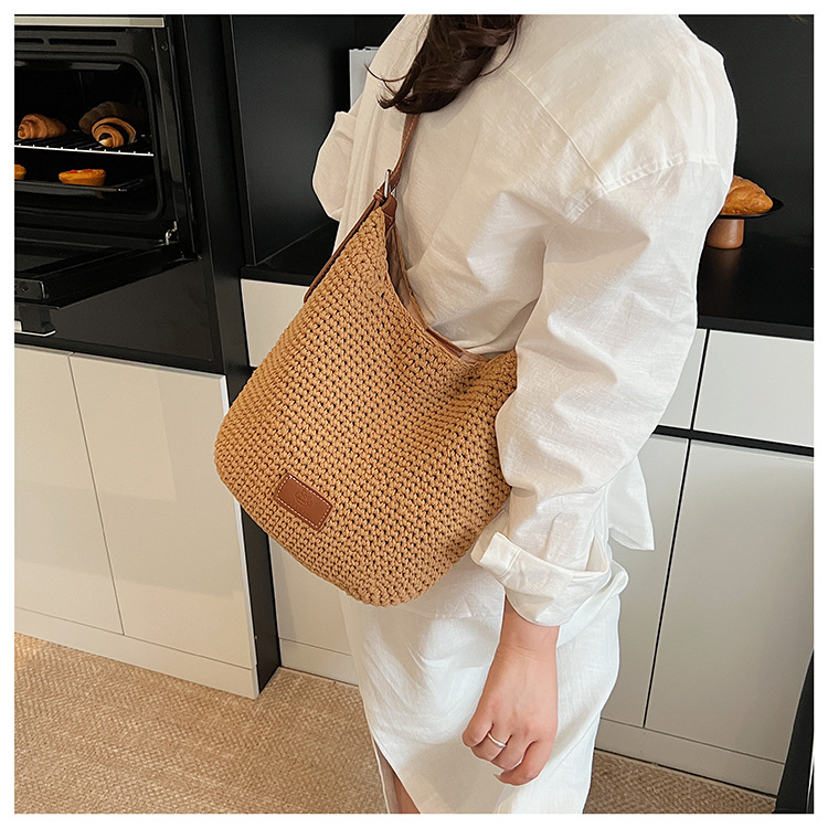 Bolso tejido hueco de estilo explosivo de verano para mujer de gran capacidad 2025 nuevo estilo de ocio junto al mar estilo vacaciones bolso tejido de paja de cercanías