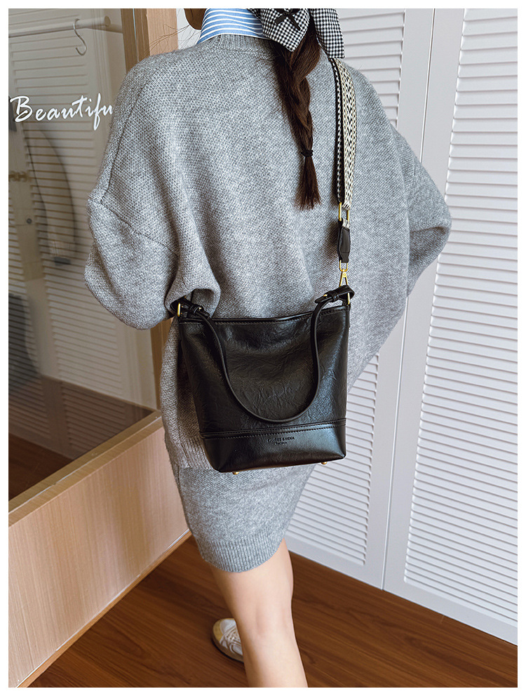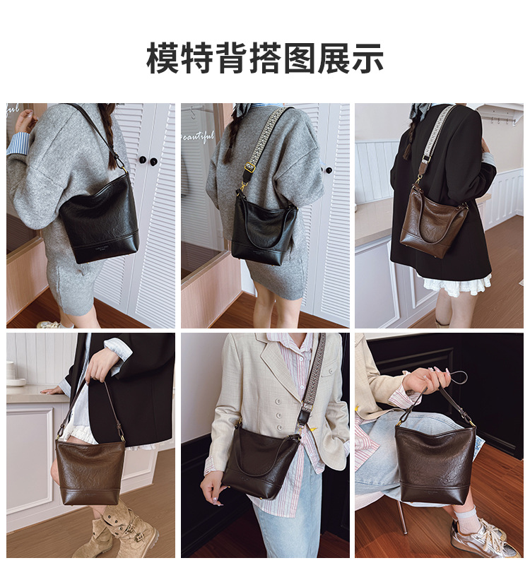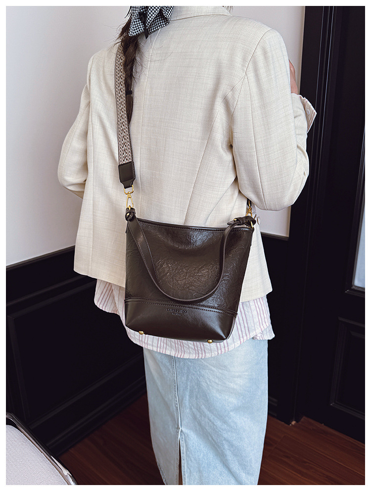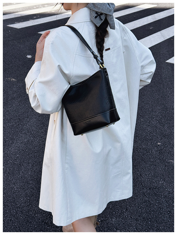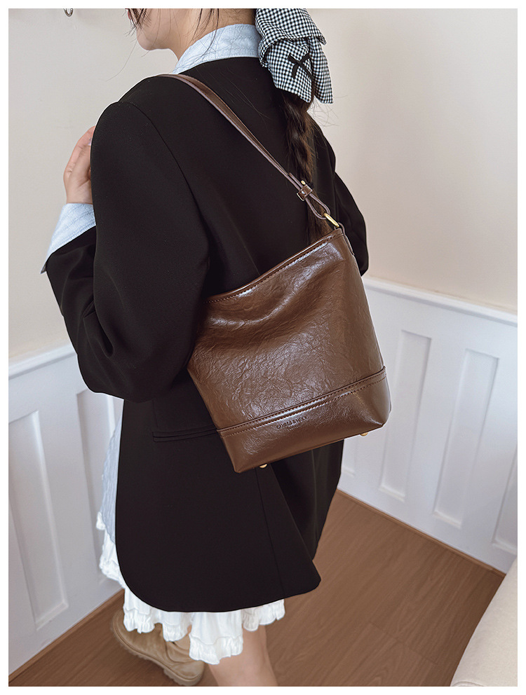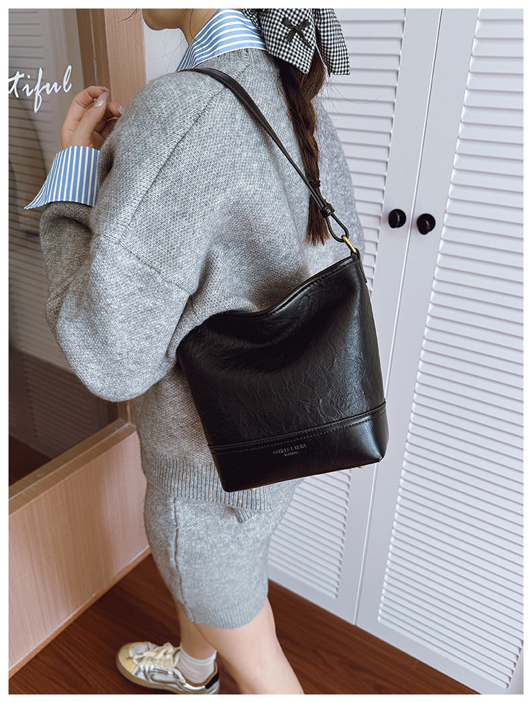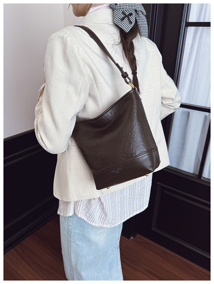 Cross-border 2025 invierno nuevo retro bolso de balde de mujer simple de gran capacidad bolso de hombro para viajar mochila