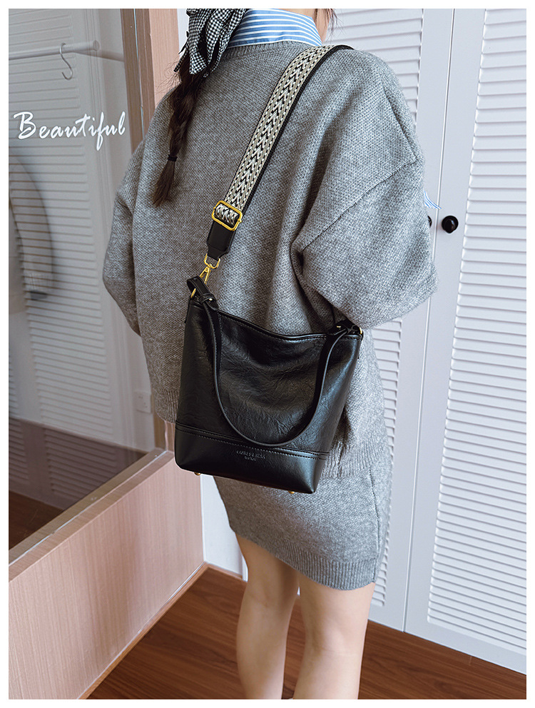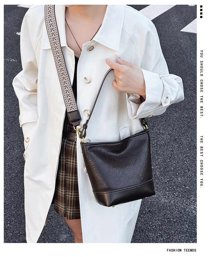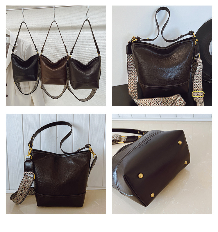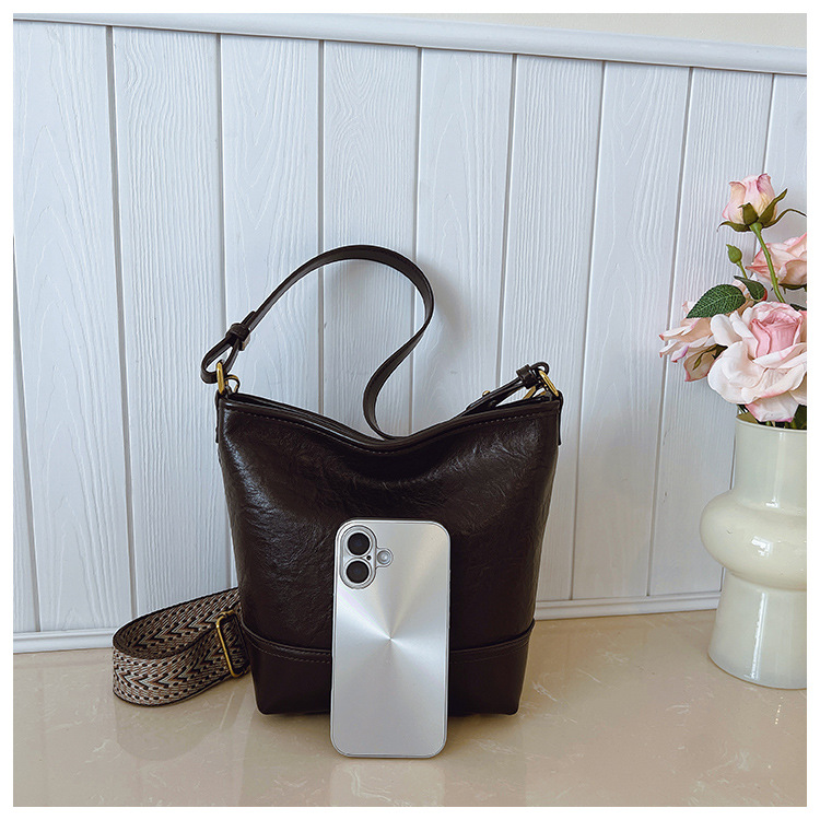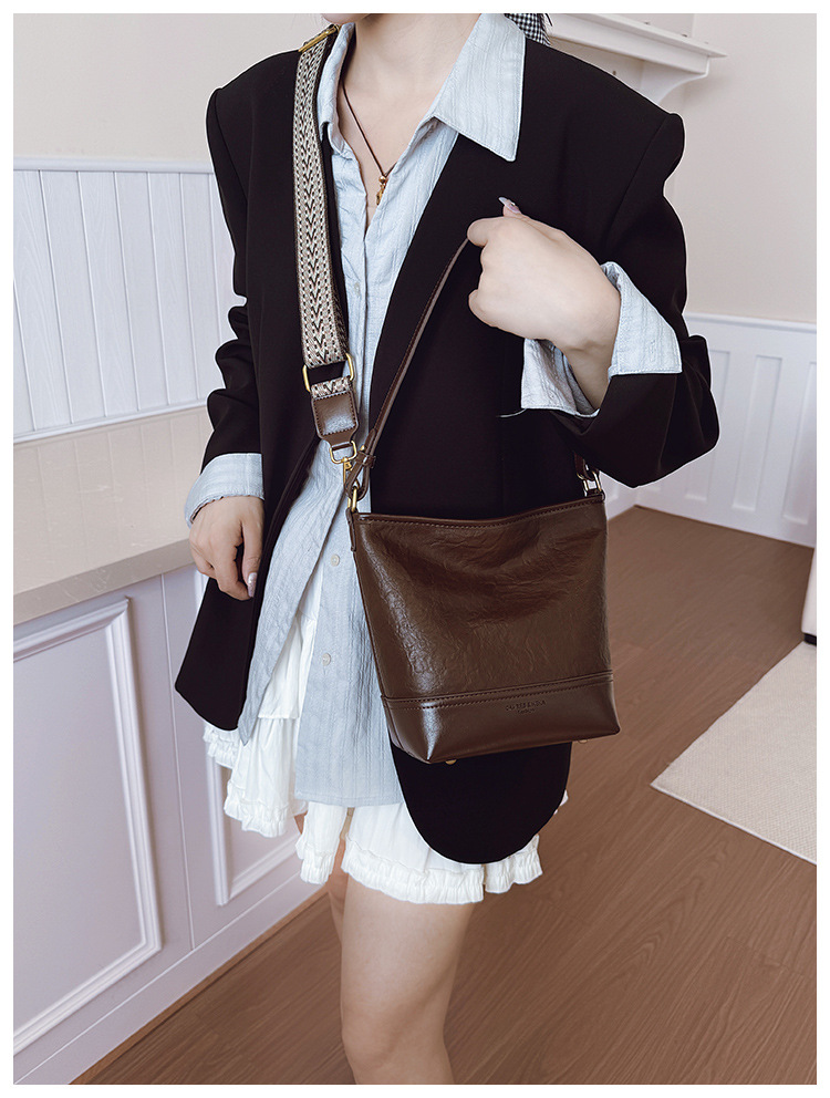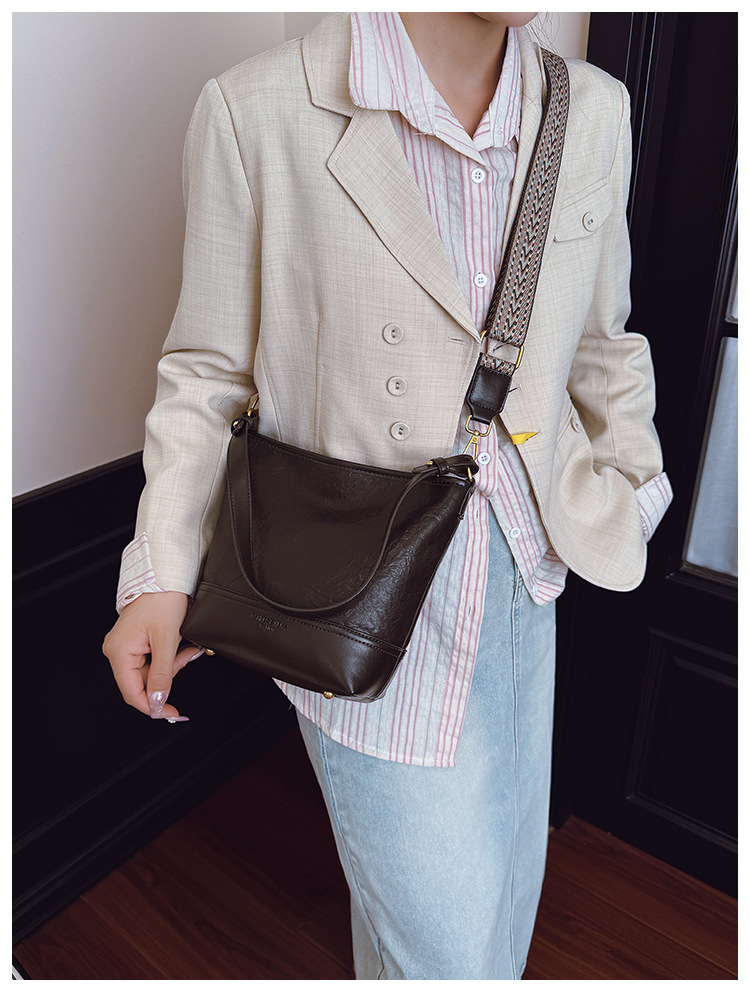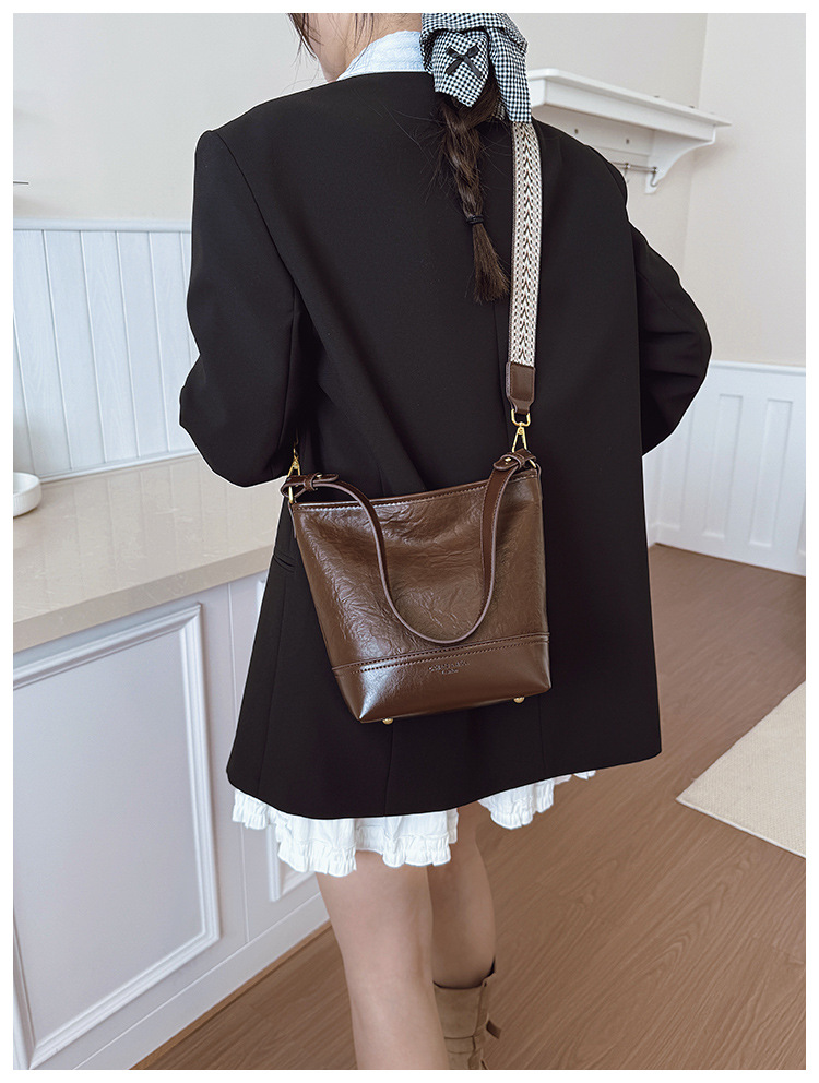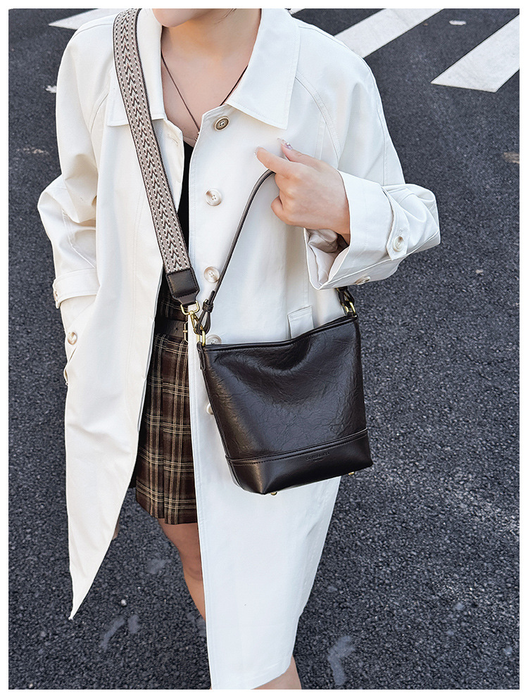 Cross-border 2025 invierno nuevo retro bolso de balde de mujer simple de gran capacidad bolso de hombro para viajar mochila