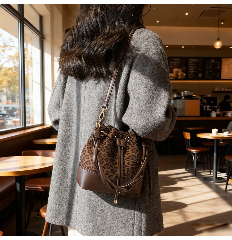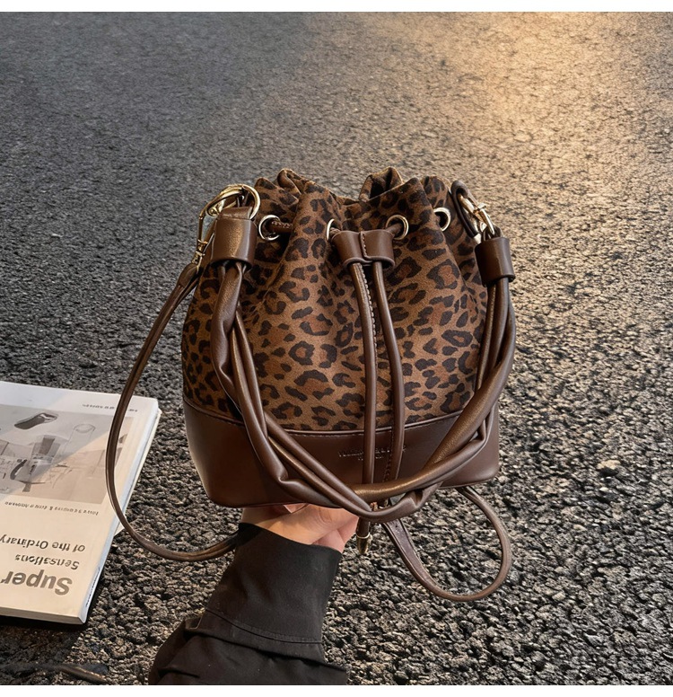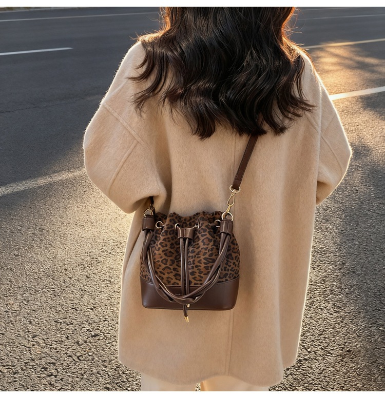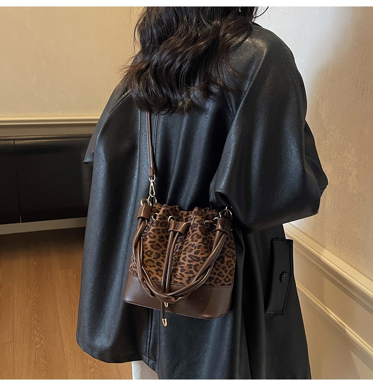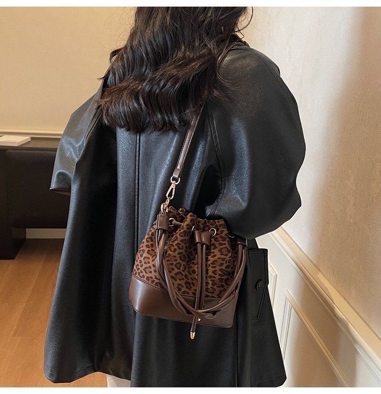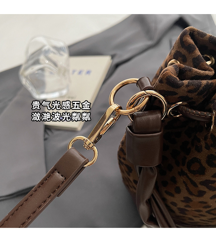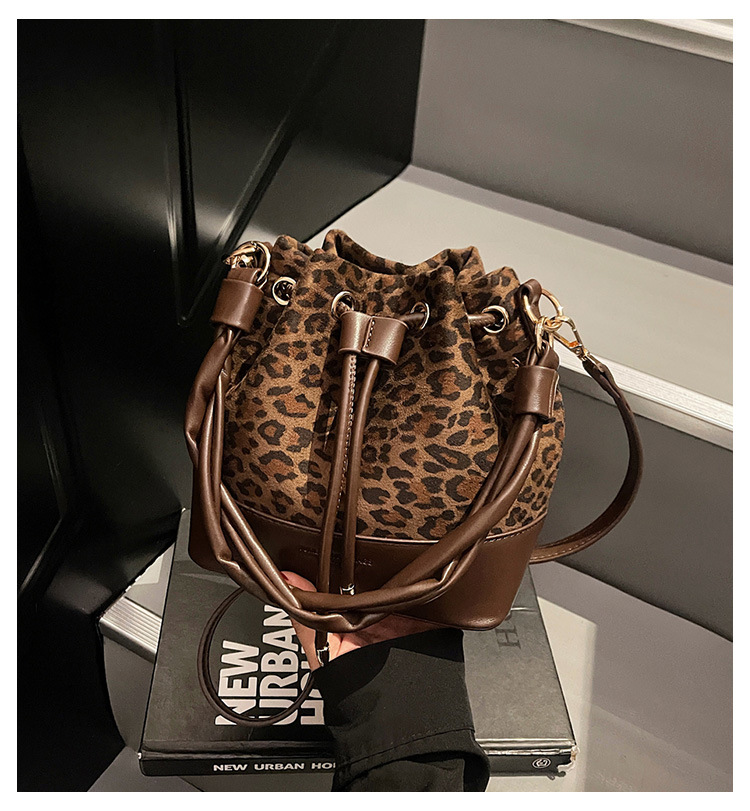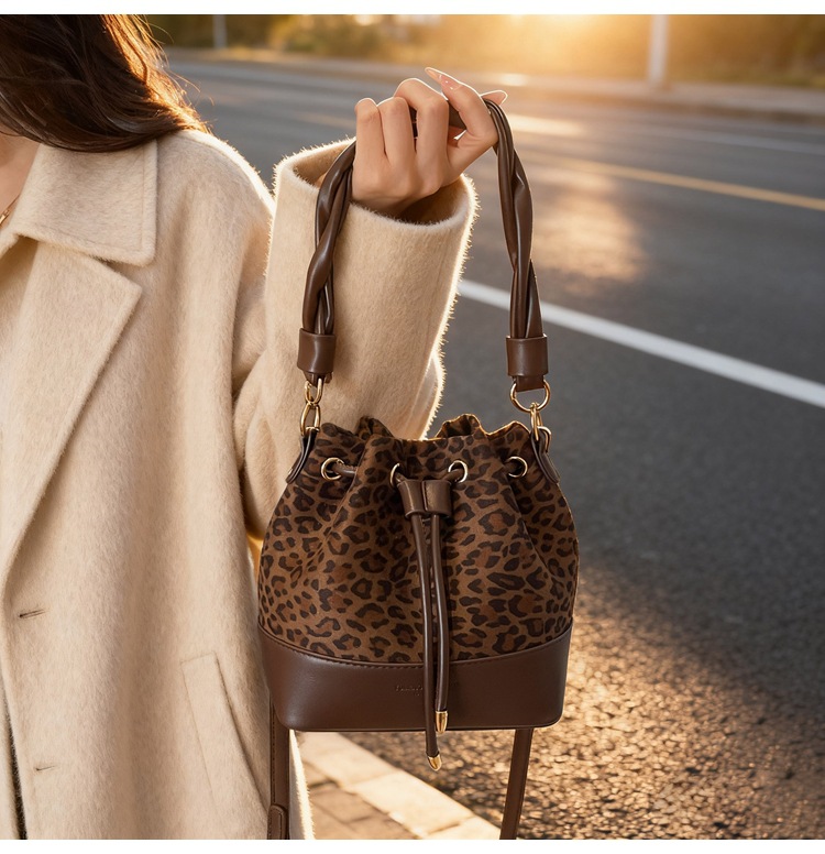 Bolso de leopardo de mujer 2025 nuevo otoño invierno lujo ligero nicho de alta sensación bolso de hombro de terciopelo de gamuz bolso de balde