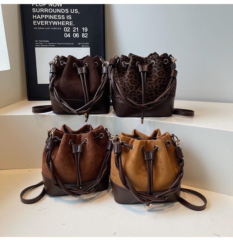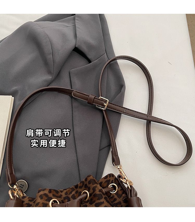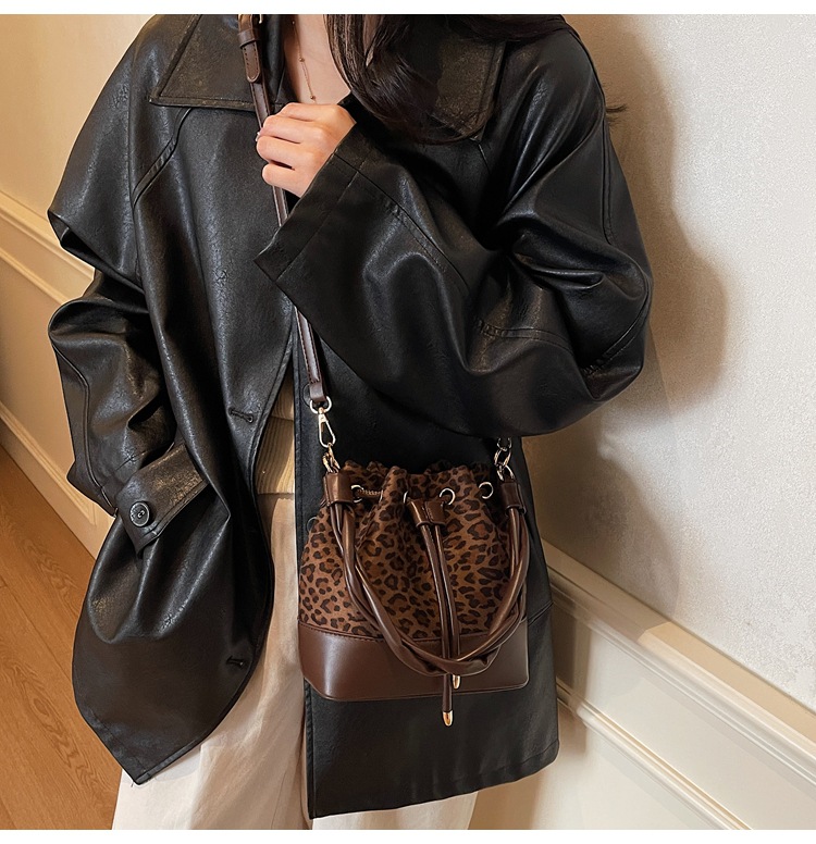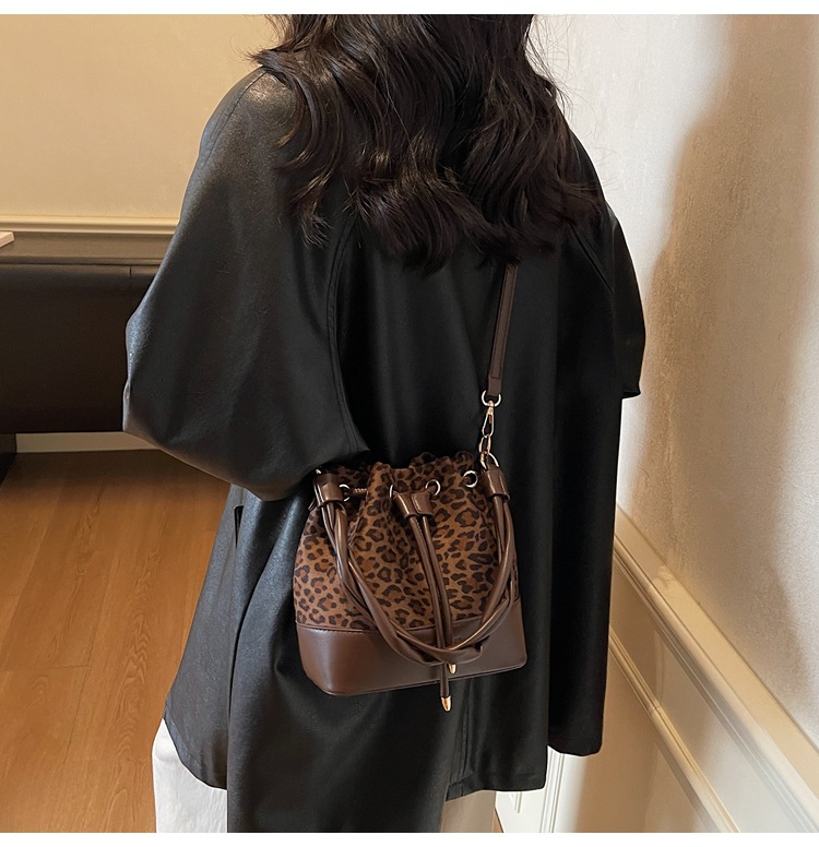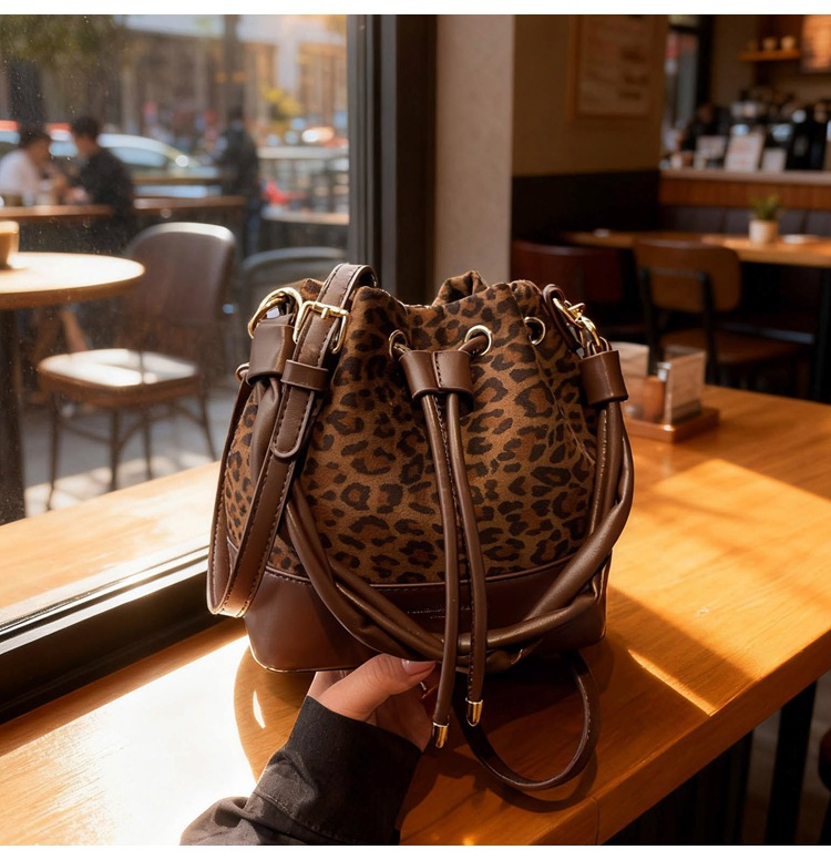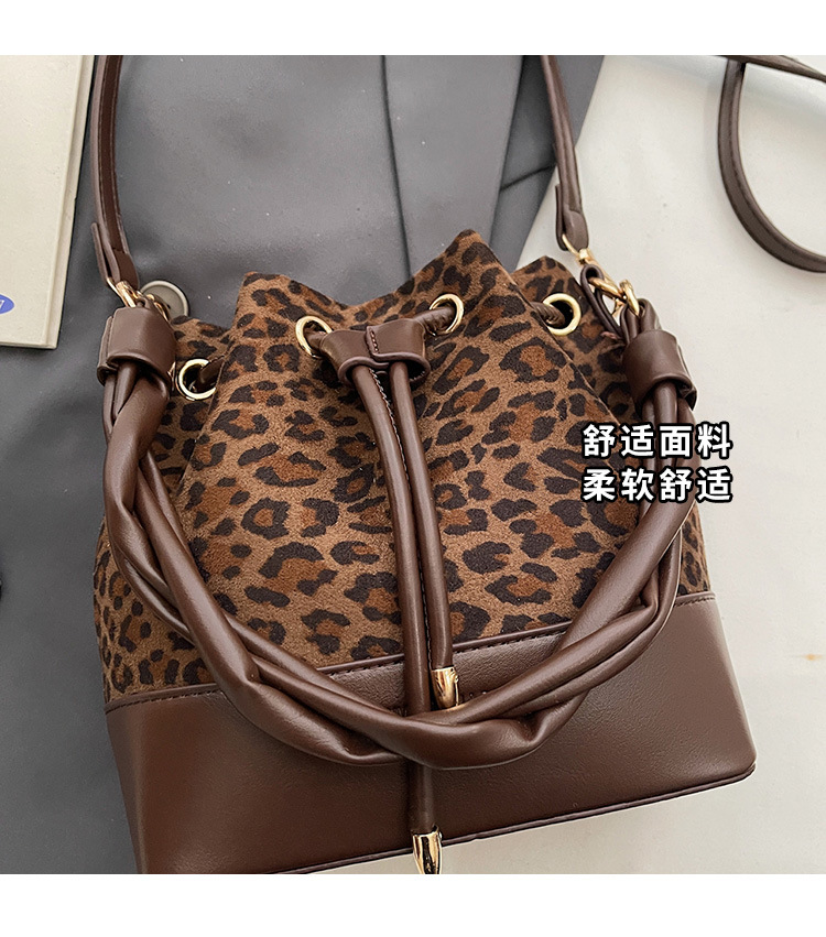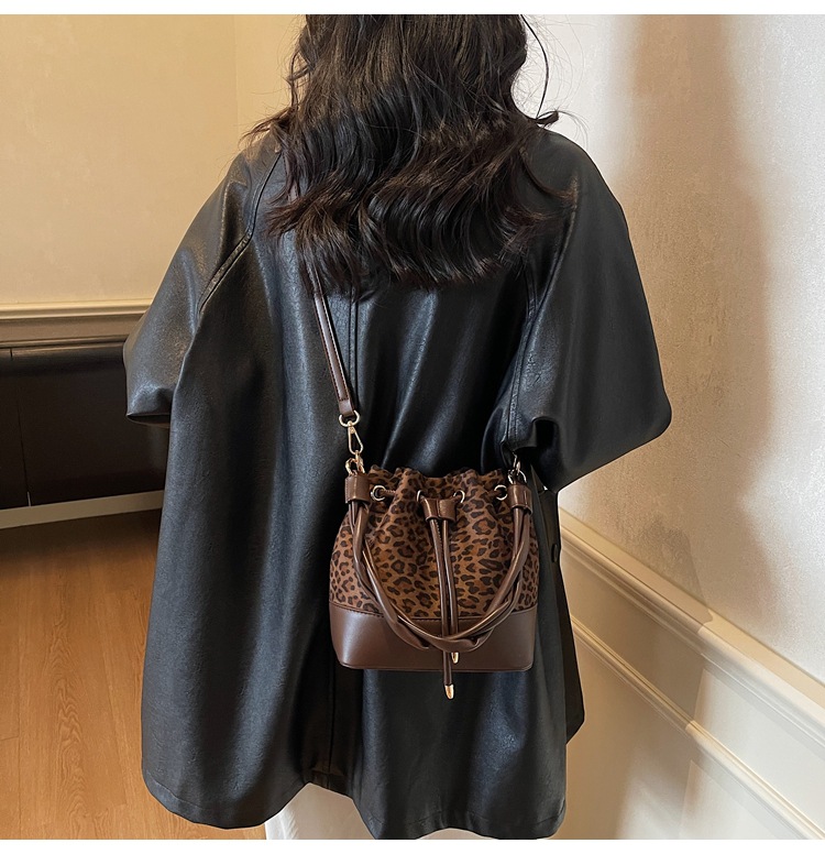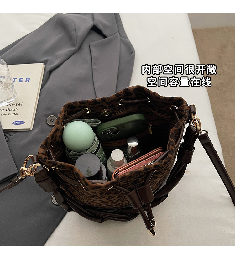 Bolso de leopardo de mujer 2025 nuevo otoño invierno lujo ligero nicho de alta sensación bolso de hombro de terciopelo de gamuz bolso de balde
