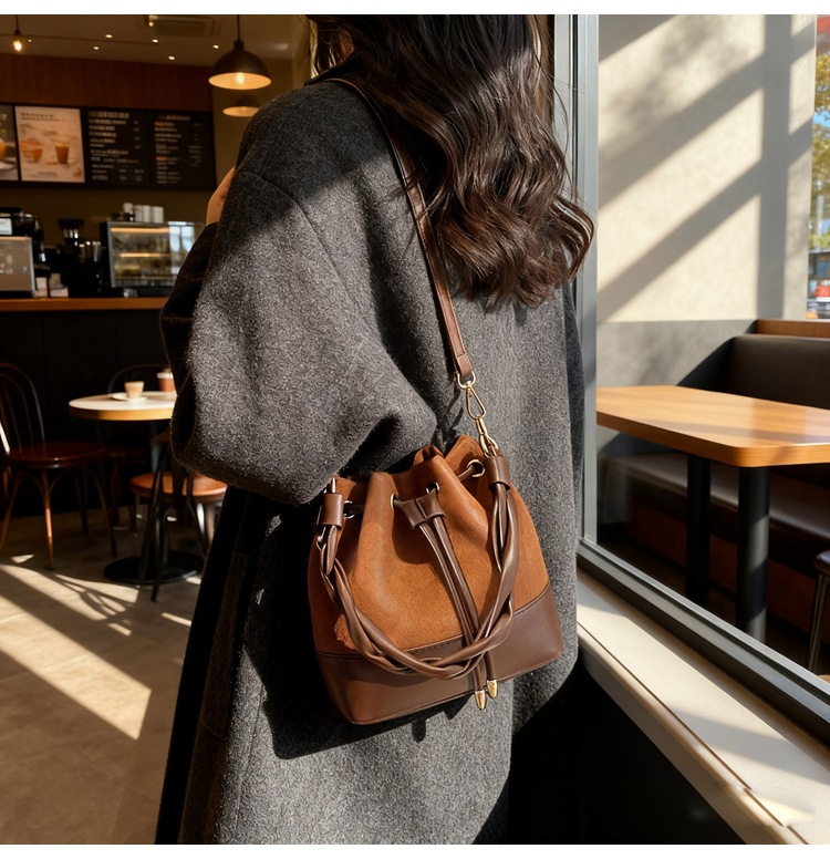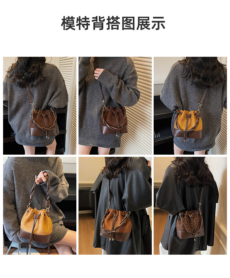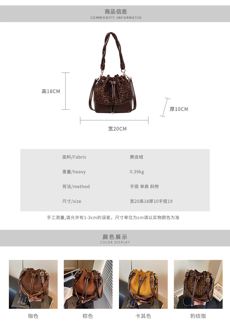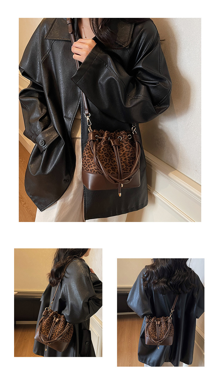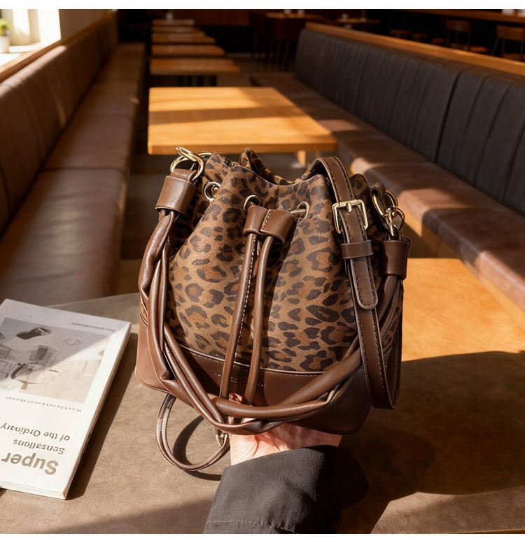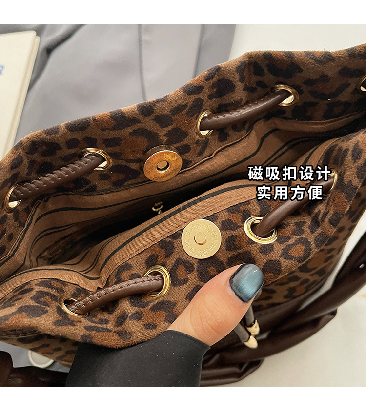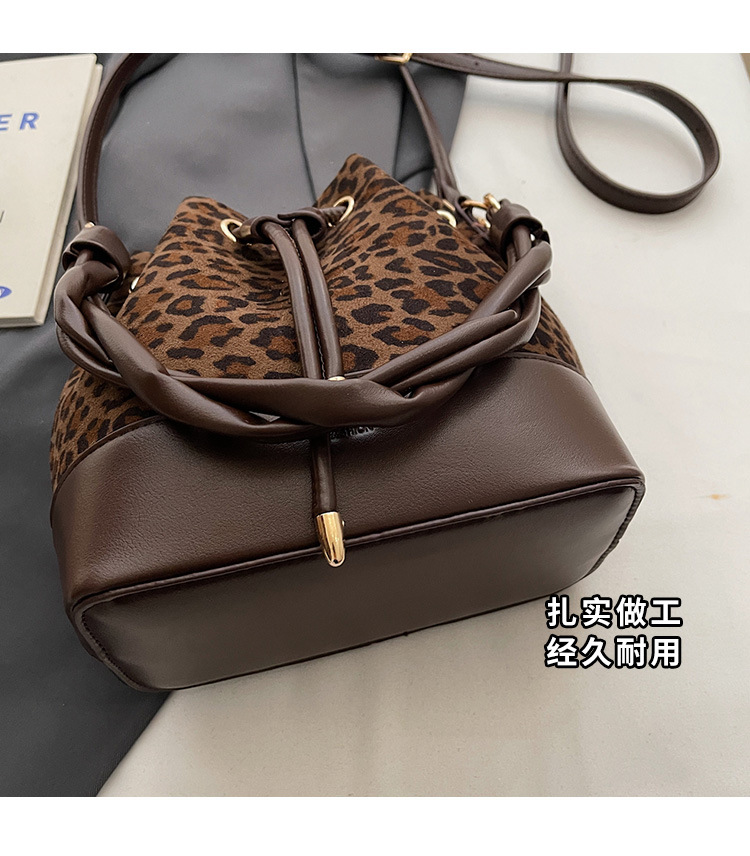 Bolso de leopardo de mujer 2025 nuevo otoño invierno lujo ligero nicho de alta sensación bolso de hombro de terciopelo de gamuz bolso de balde