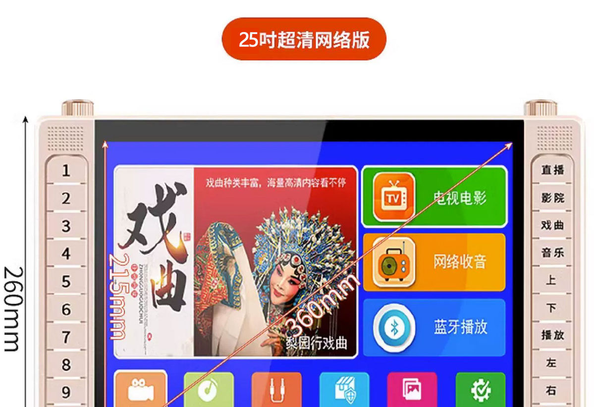 | Especificaciones | 16寸WiFi版+蓝牙+电视直播-十年质保【送16U盘】,16寸WiFi版+蓝牙+电视直播-十年质保【送32U盘】,16寸WiFi版+蓝牙+电视直播-十年质保【送64U盘】,16寸WiFi版+蓝牙+电视直播-十年质保【送128U盘】,16寸WiFi版+蓝牙+电视直播-十年质保【无U盘】,20寸WiFi版+蓝牙+电视直播-十年质保【送16U盘】,20寸WiFi版+蓝牙+电视直播-十年质保【送32U盘】,20寸WiFi版+蓝牙+电视直播-十年质保【送64U盘】,20寸WiFi版+蓝牙+电视直播-十年质保【送128U盘】,20寸WiFi版+蓝牙+电视直播-十年质保【无U盘】,25寸WiFi版+蓝牙+电视直播-十年质保【送16U盘】,25寸WiFi版+蓝牙+电视直播-十年质保【送32U盘】,25寸WiFi版+蓝牙+电视直播-十年质保【送64U盘】,25寸WiFi版+蓝牙+电视直播-十年质保【送128U盘】,25寸WiFi版+蓝牙+电视直播-十年质保【无U盘】,9寸插卡U盘款-十年质保【送16U盘】,9寸插卡U盘款-十年质保【送32U盘】,9寸插卡U盘款-十年质保【送64U盘】,9寸插卡U盘款-十年质保【送128U盘】,9寸插卡U盘款-十年质保【无U盘】,13寸插卡U盘款-十年质保【送16U盘】,13寸插卡U盘款-十年质保【送32U盘】,13寸插卡U盘款-十年质保【送64U盘】,13寸插卡U盘款-十年质保【送128U盘】,13寸插卡U盘款-十年质保【无U盘】,16寸插卡U盘款-十年质保【送16U盘】,16寸插卡U盘款-十年质保【送32U盘】,16寸插卡U盘款-十年质保【送64U盘】,16寸插卡U盘款-十年质保【送128U盘】,16寸插卡U盘款-十年质保【无U盘】,18寸插卡U盘款-十年质保【送16U盘】,18寸插卡U盘款-十年质保【送32U盘】,18寸插卡U盘款-十年质保【送64U盘】,18寸插卡U盘款-十年质保【送128U盘】,18寸插卡U盘款-十年质保【无U盘】,25寸插卡U盘款-十年质保【送16U盘】,25寸插卡U盘款-十年质保【送32U盘】,25寸插卡U盘款-十年质保【送64U盘】,25寸插卡U盘款-十年质保【送128U盘】,25寸插卡U盘款-十年质保【无U盘】 |