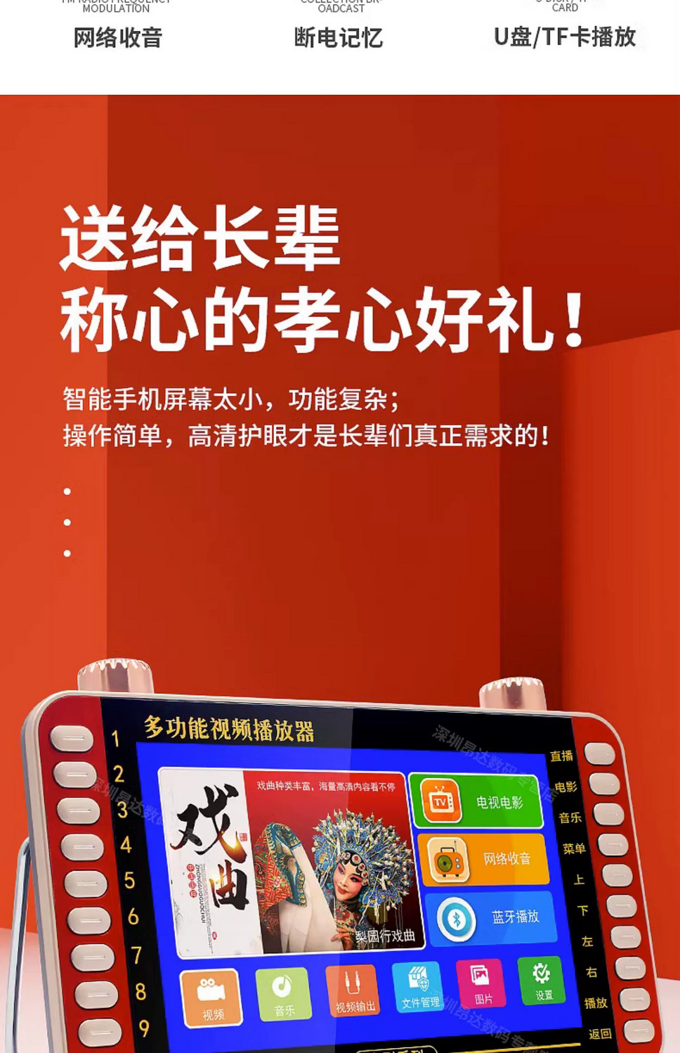 Máquina de teatro de Kim Jong-un, máquina de teatro para viejos, máquina de video multifuncional de baile, radio de carga, Bluetooth, wifi, pequeña televisión