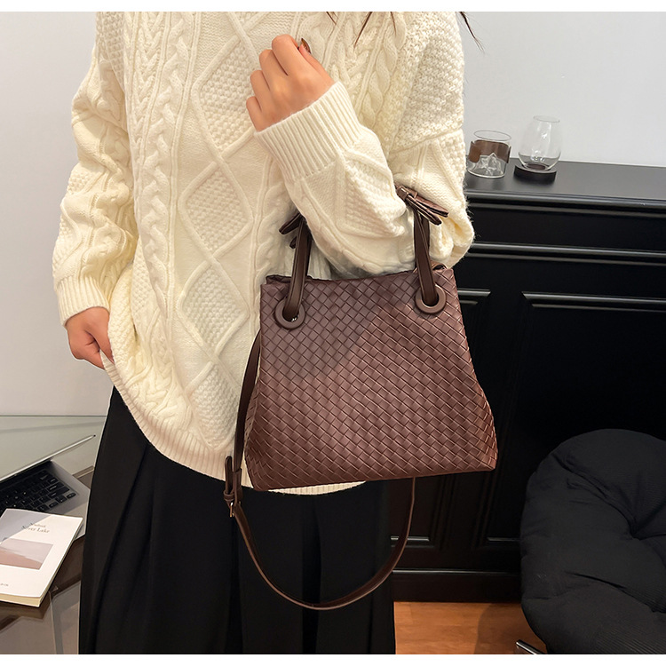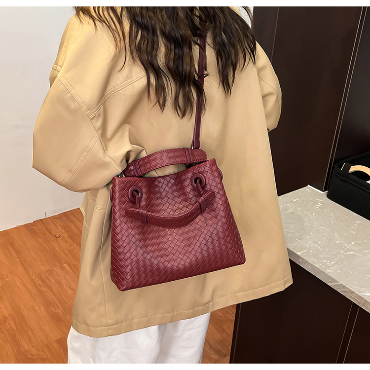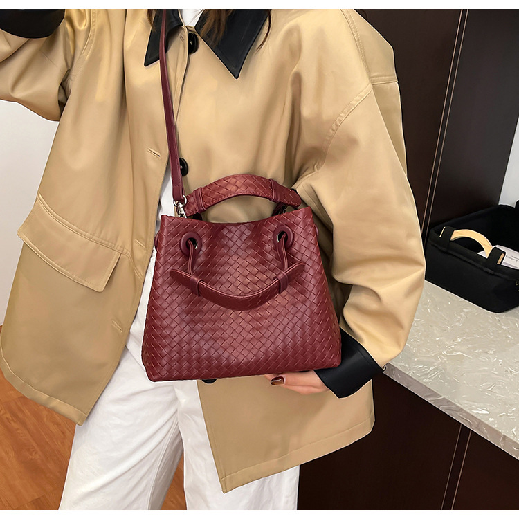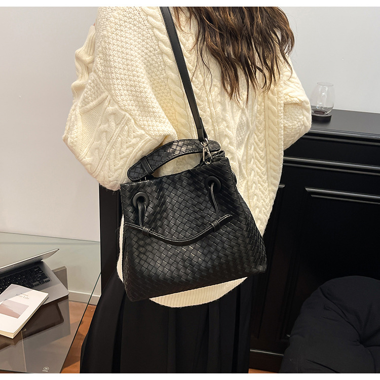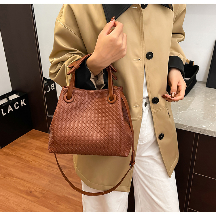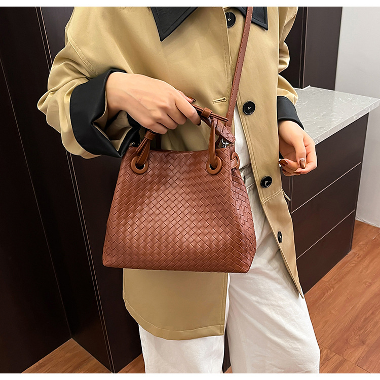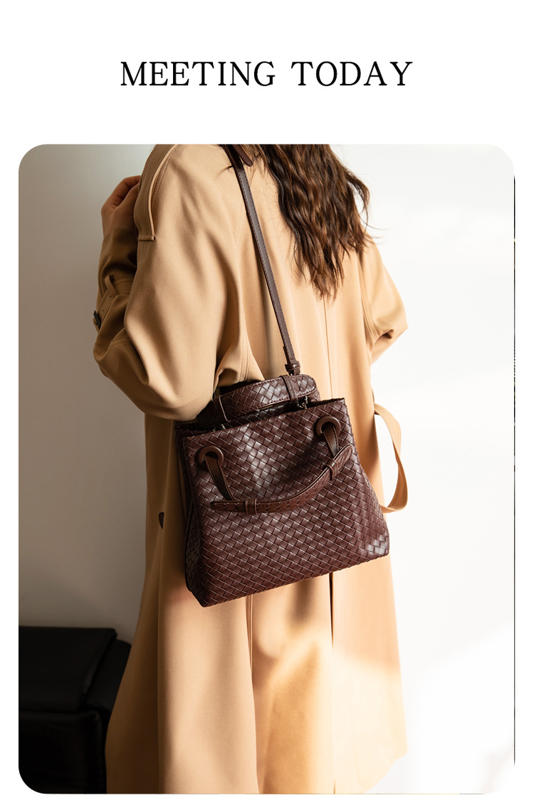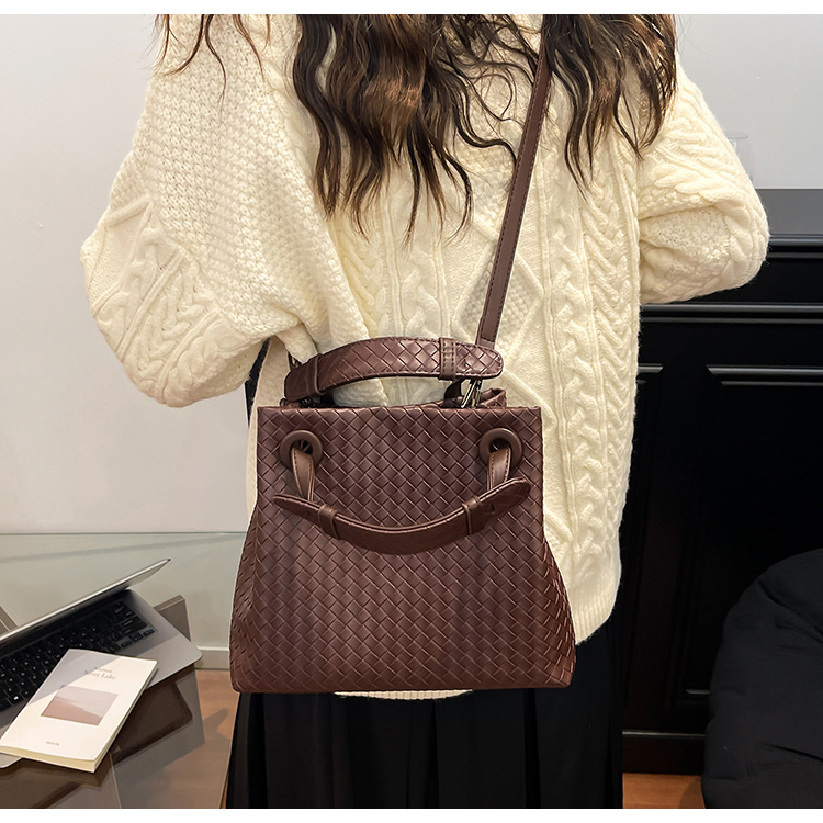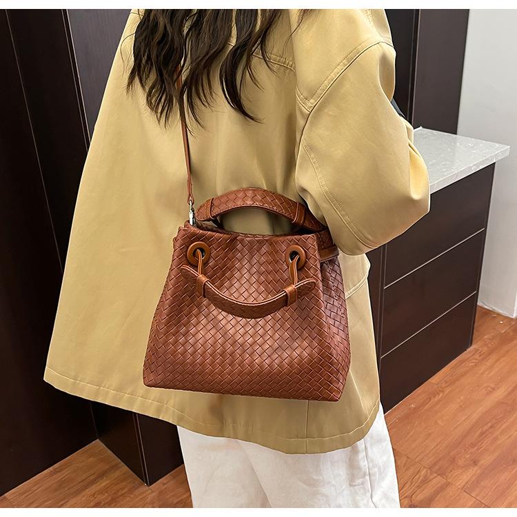 Bolso retro europeo y americano de nicho transfronterizo de mujer bolso de mano de tejido de alto nivel bolso de cubo de hombro de gran capacidad mochila
