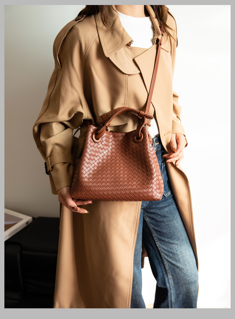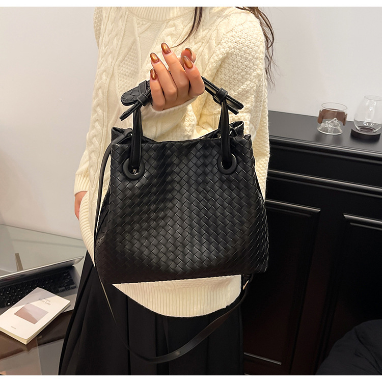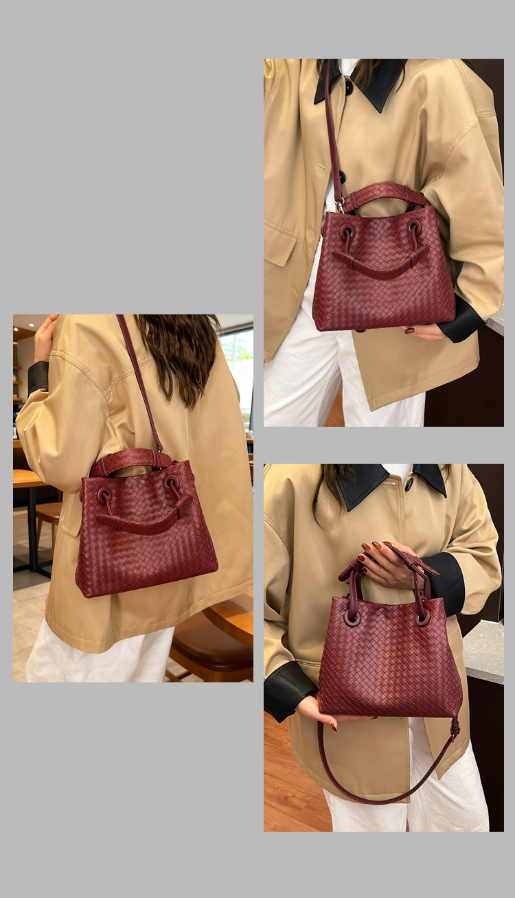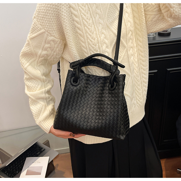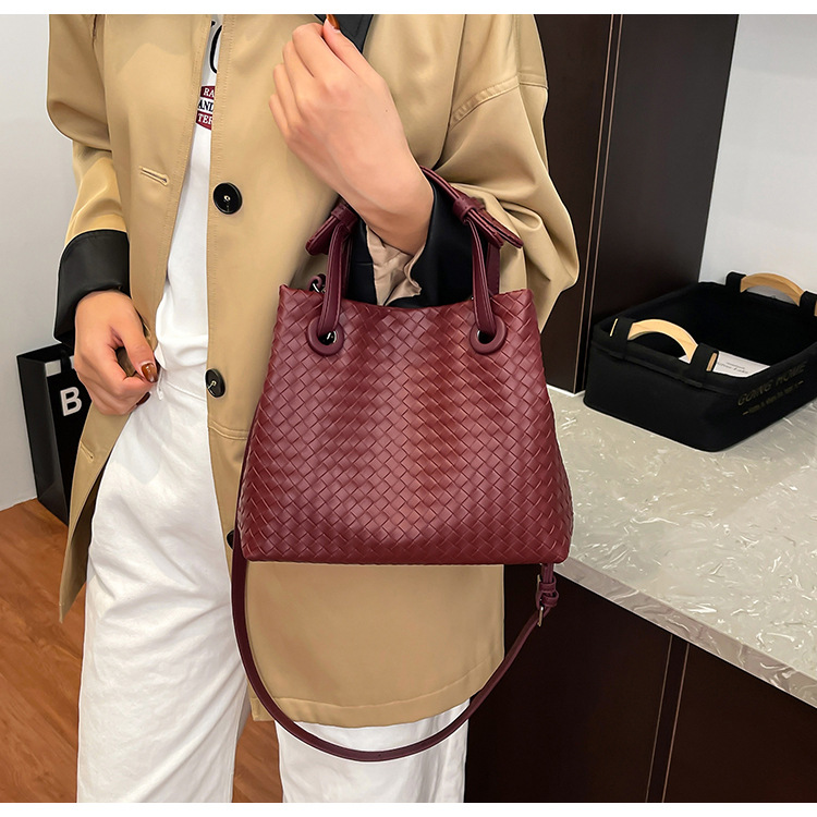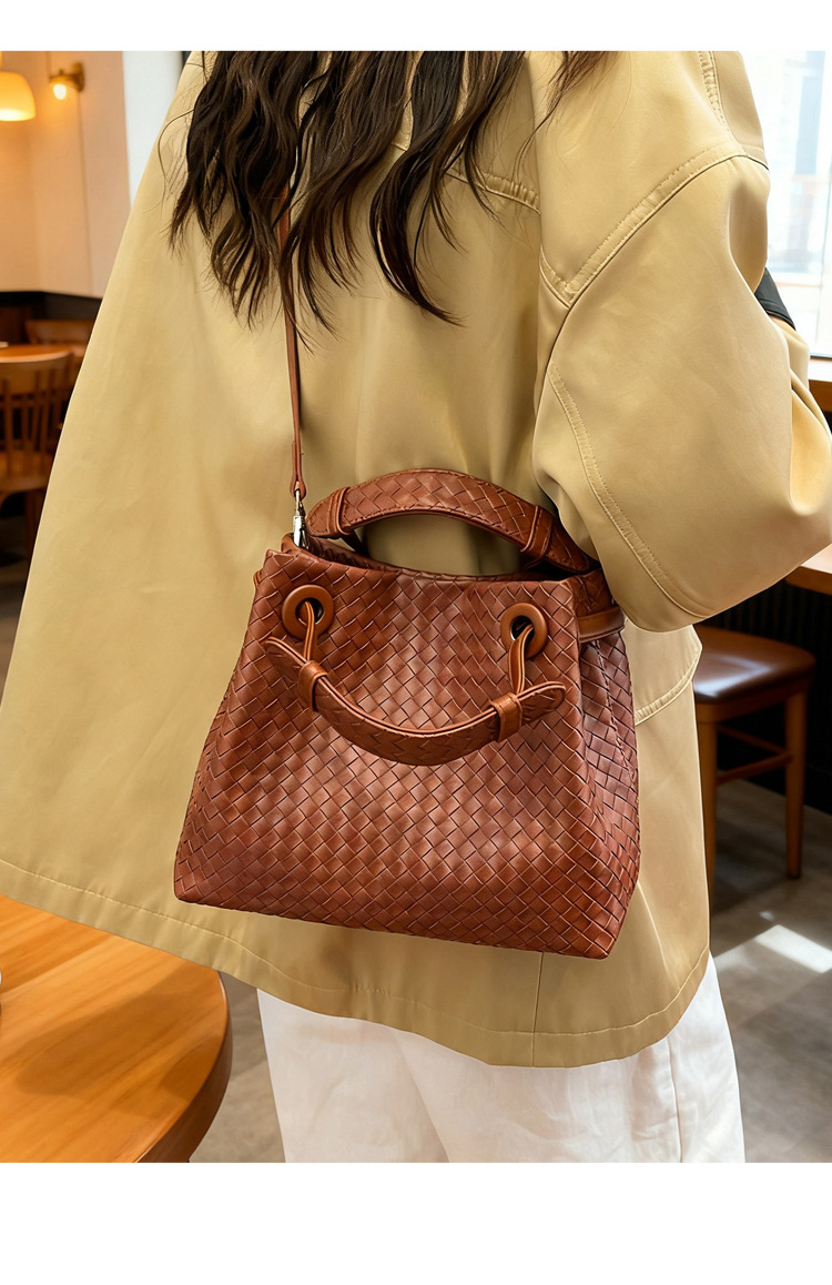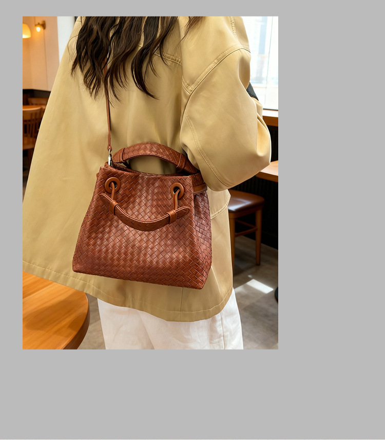 Bolso retro europeo y americano de nicho transfronterizo de mujer bolso de mano de tejido de alto nivel bolso de cubo de hombro de gran capacidad mochila