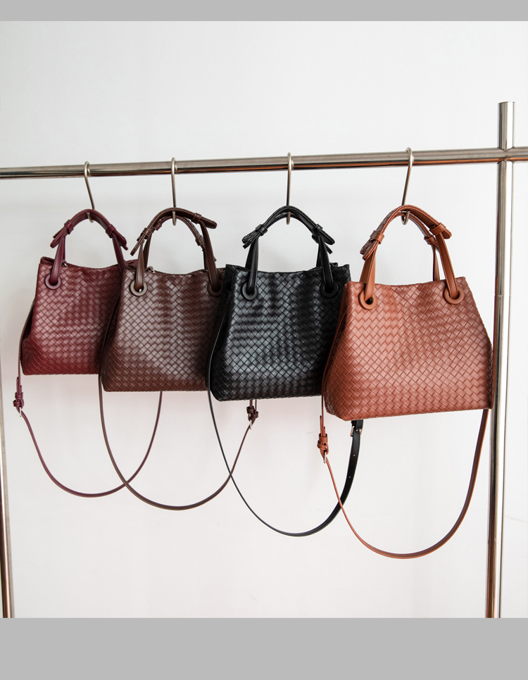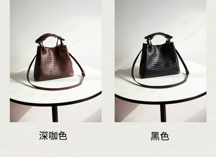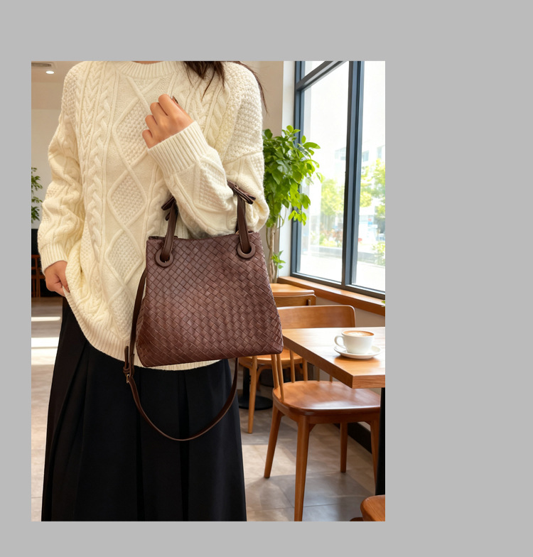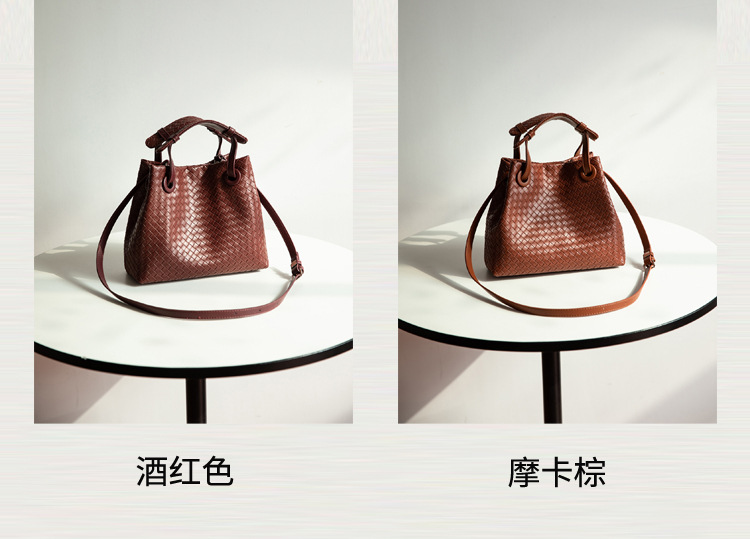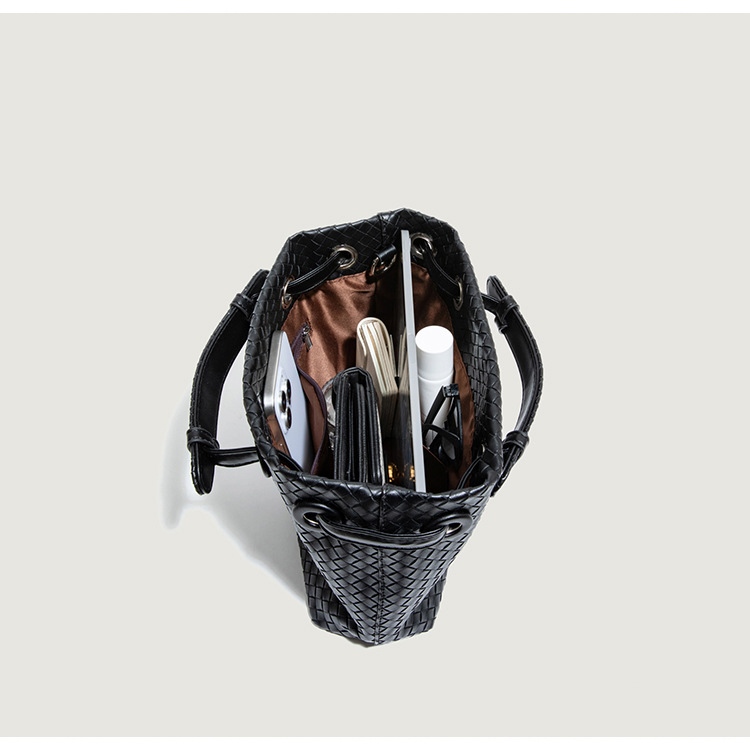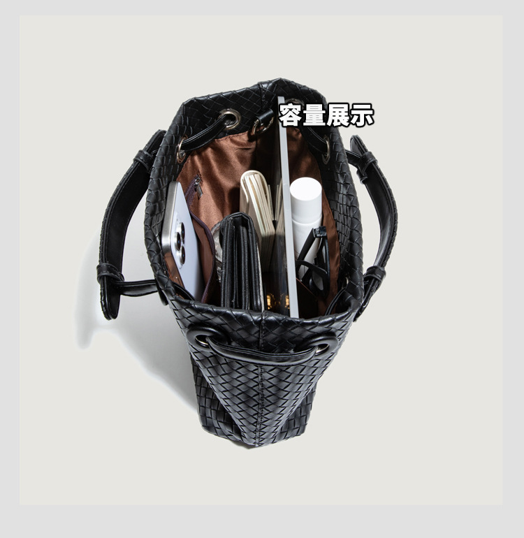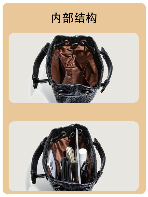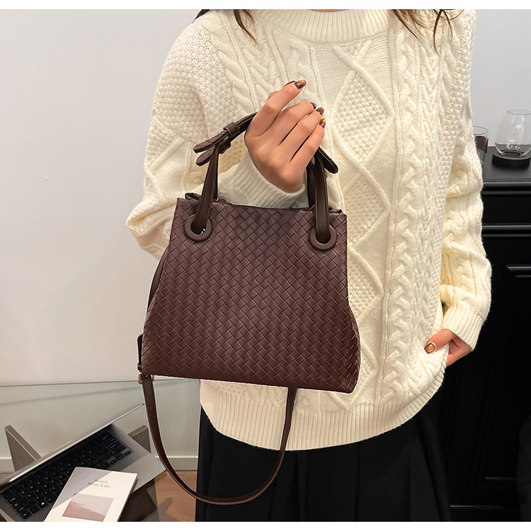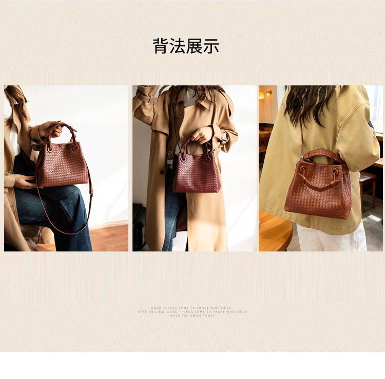 Bolso retro europeo y americano de nicho transfronterizo de mujer bolso de mano de tejido de alto nivel bolso de cubo de hombro de gran capacidad mochila