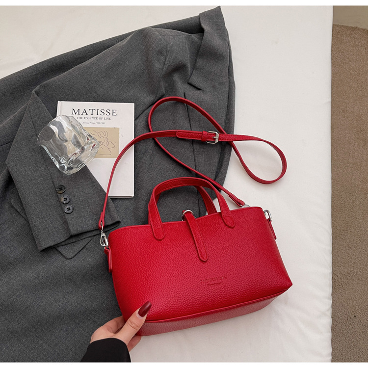 Bolso de mano simple de comercio exterior para mujer 2025 nuevo bolso de hombro de color sólido de todo fósforo bolso de mensajero de textura de moda popular