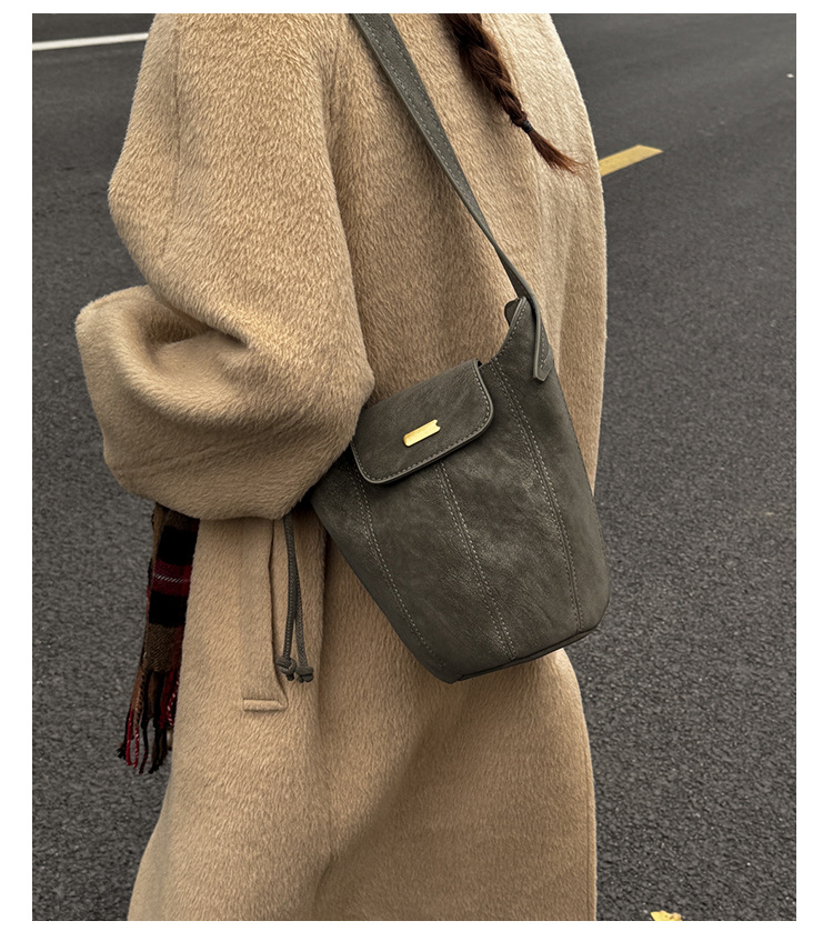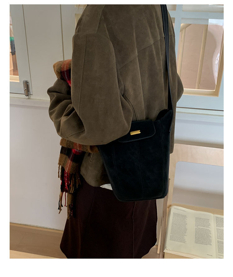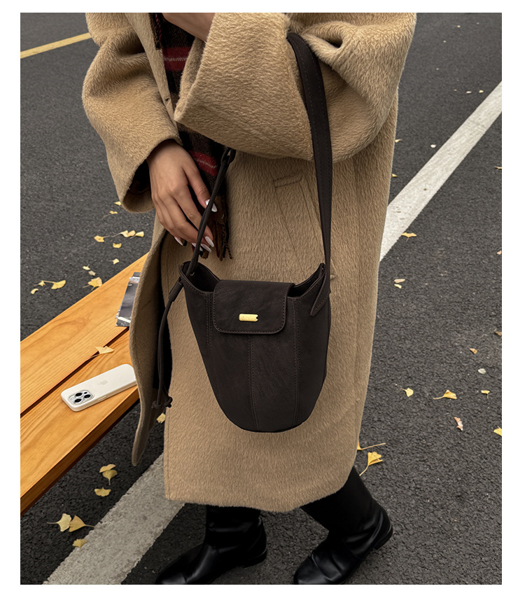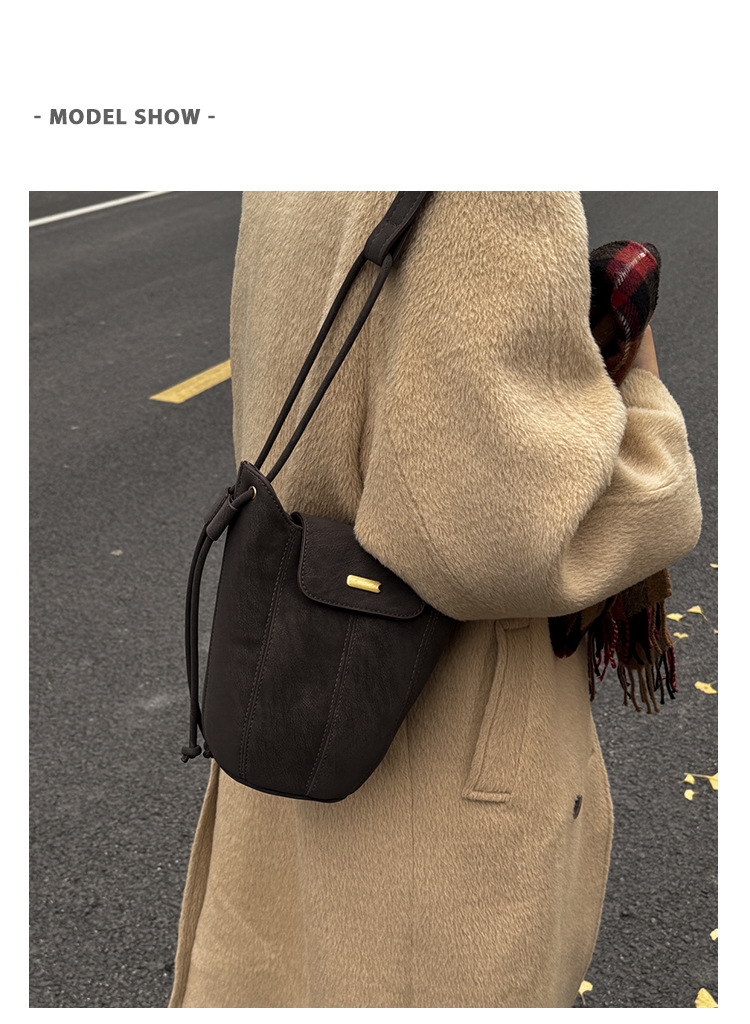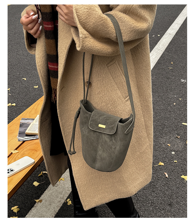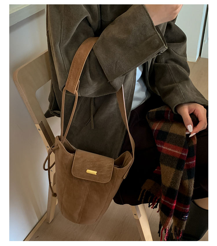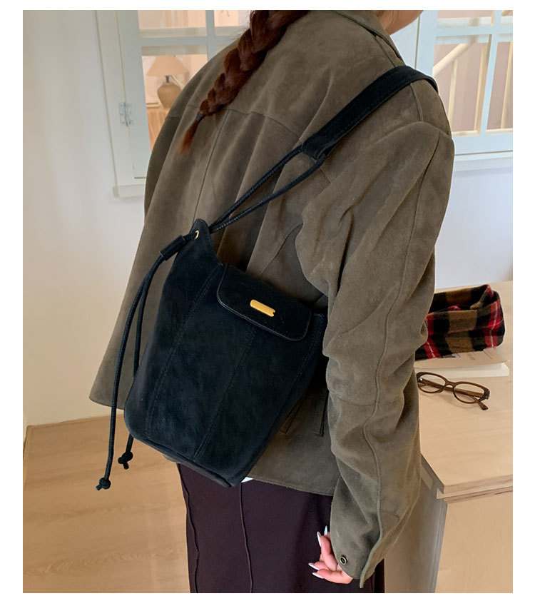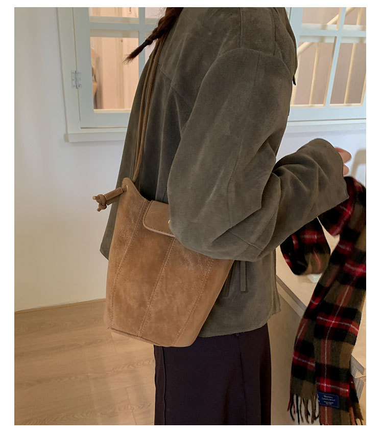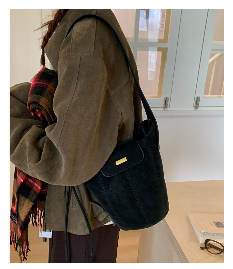 Bolsa de hombro coreana de estilo extranjero de gamuz, bolso de vestir, bolso inferior de mujer otoño-invierno 2025, nuevo nicho retro bolso de cubo de transporte