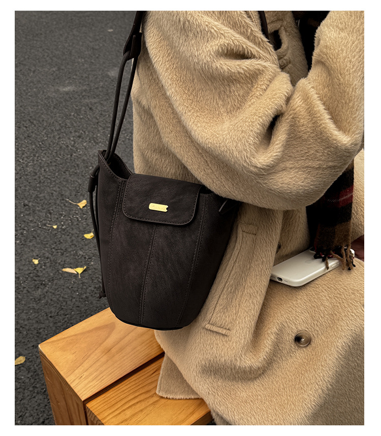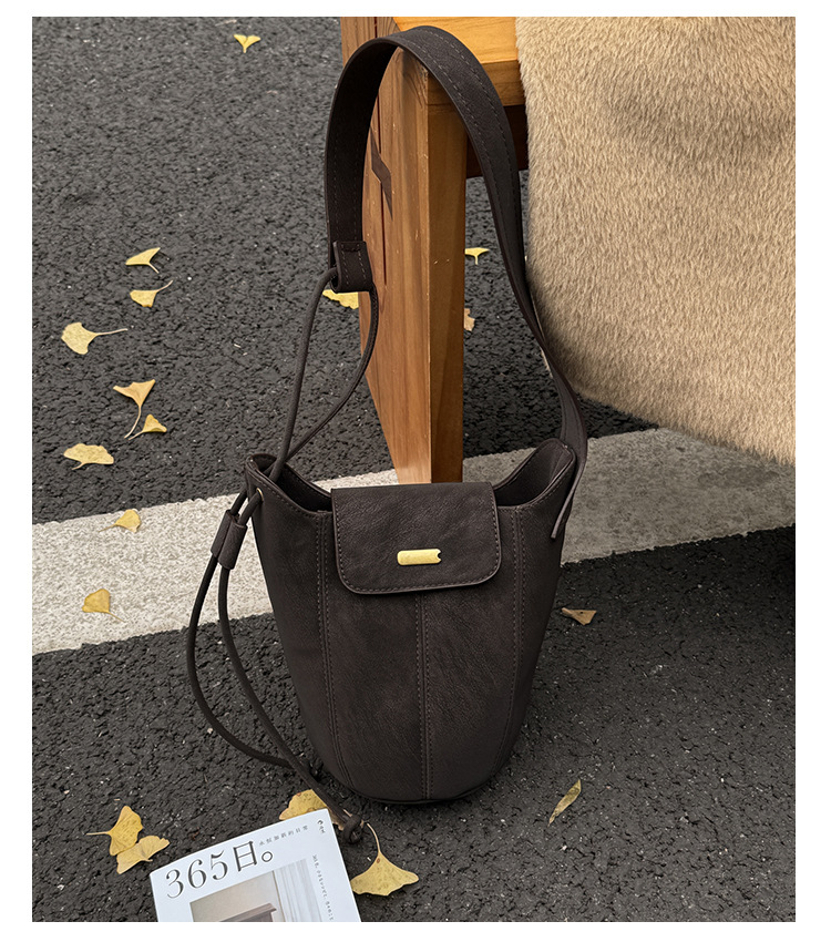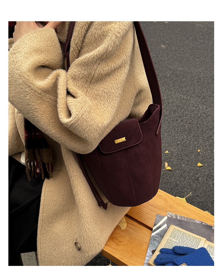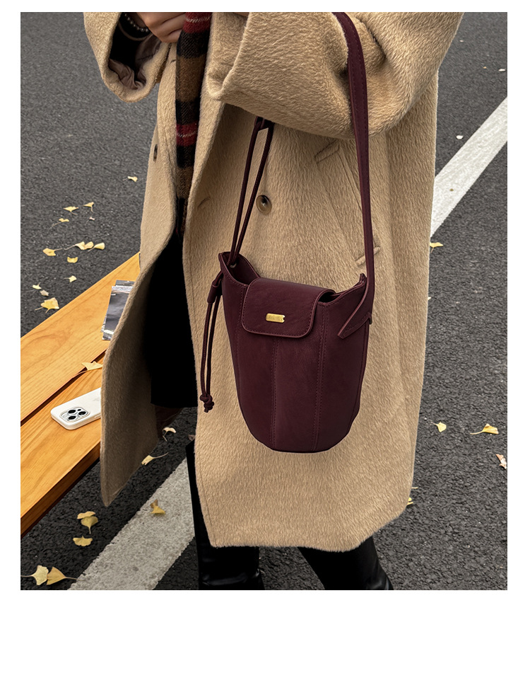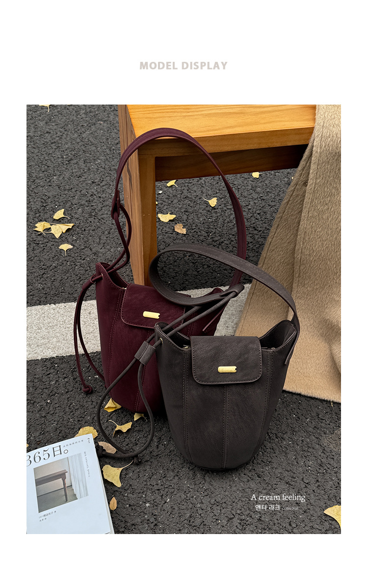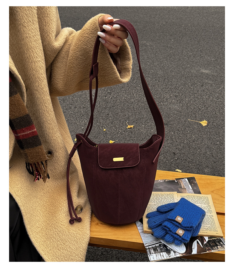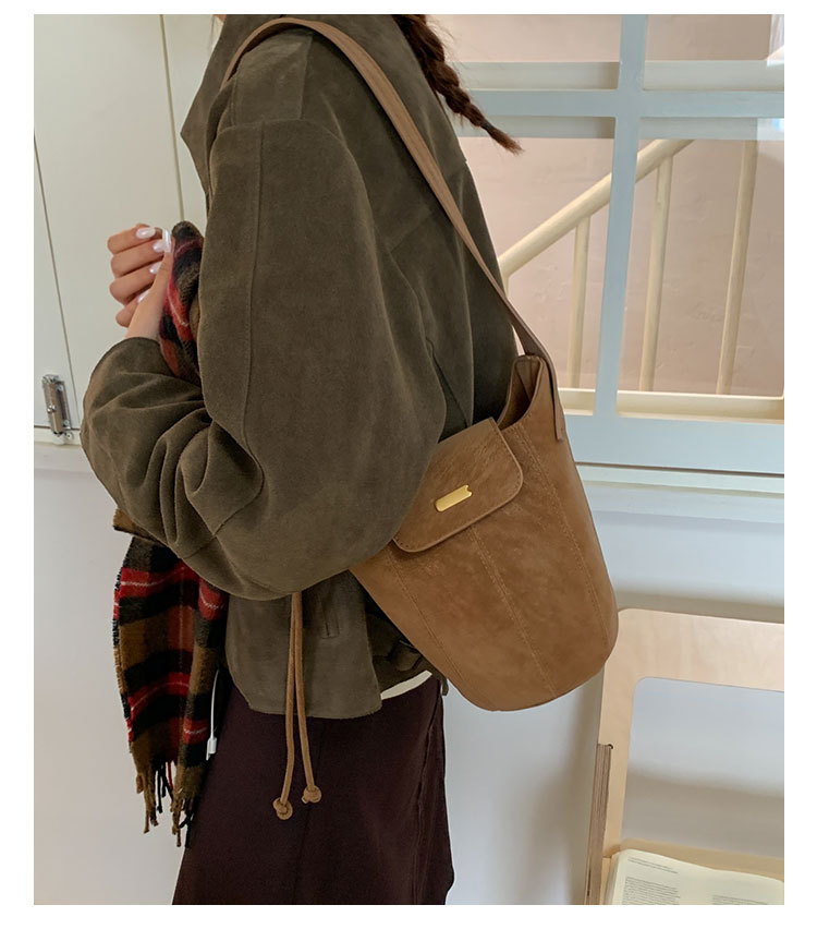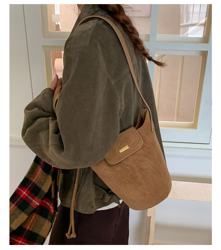 Bolsa de hombro coreana de estilo extranjero de gamuz, bolso de vestir, bolso inferior de mujer otoño-invierno 2025, nuevo nicho retro bolso de cubo de transporte