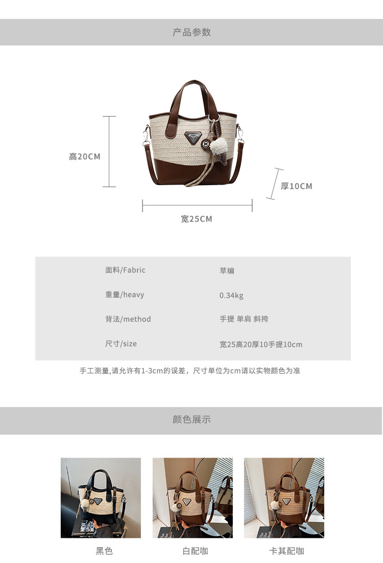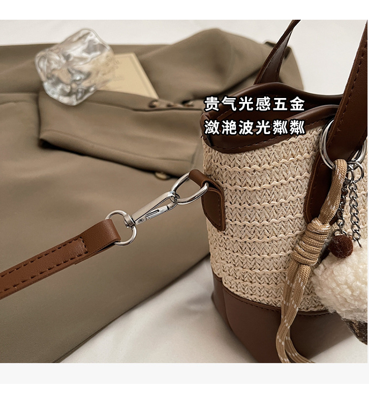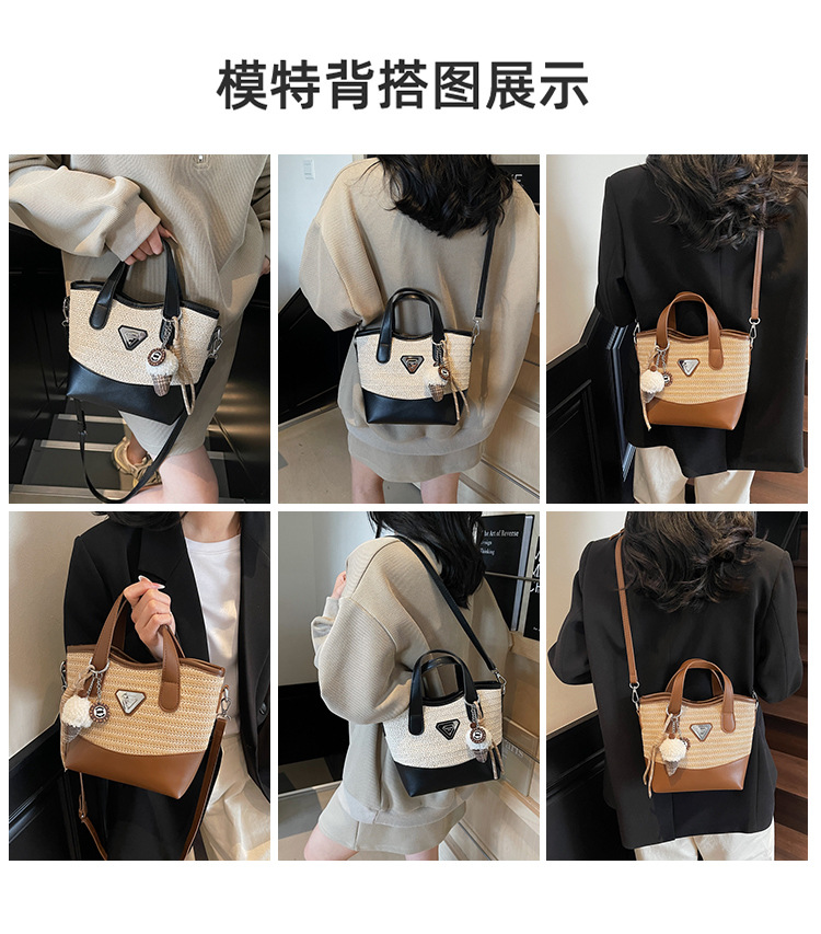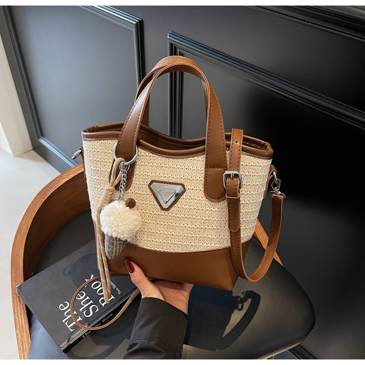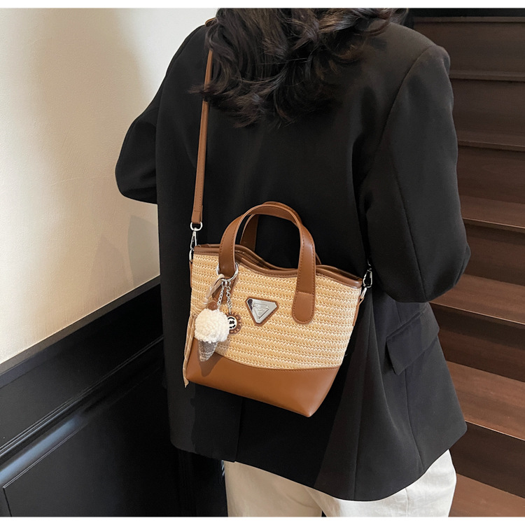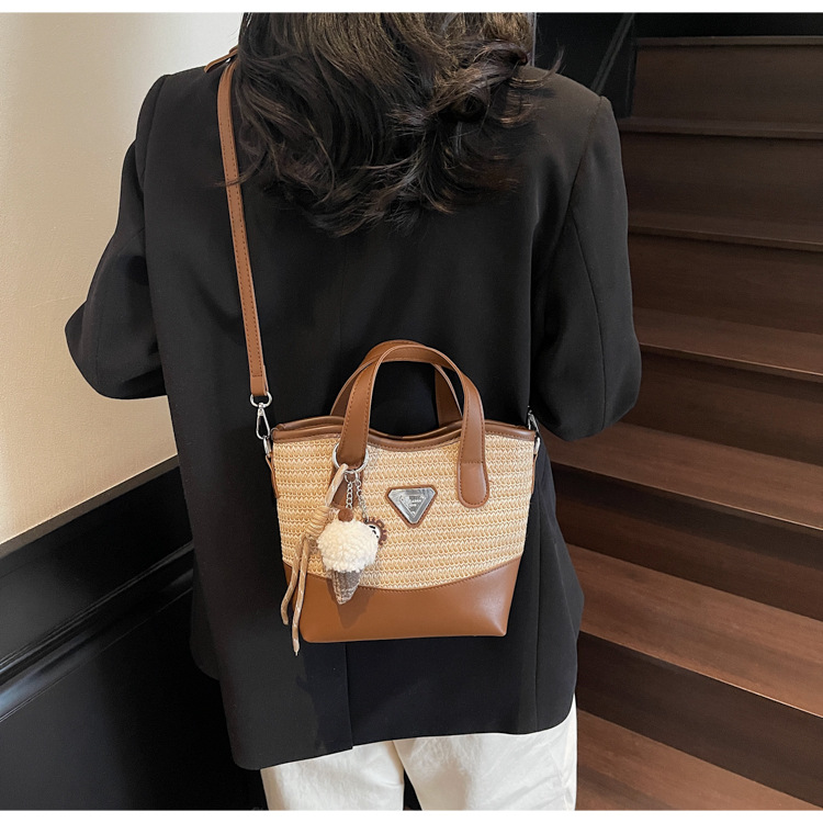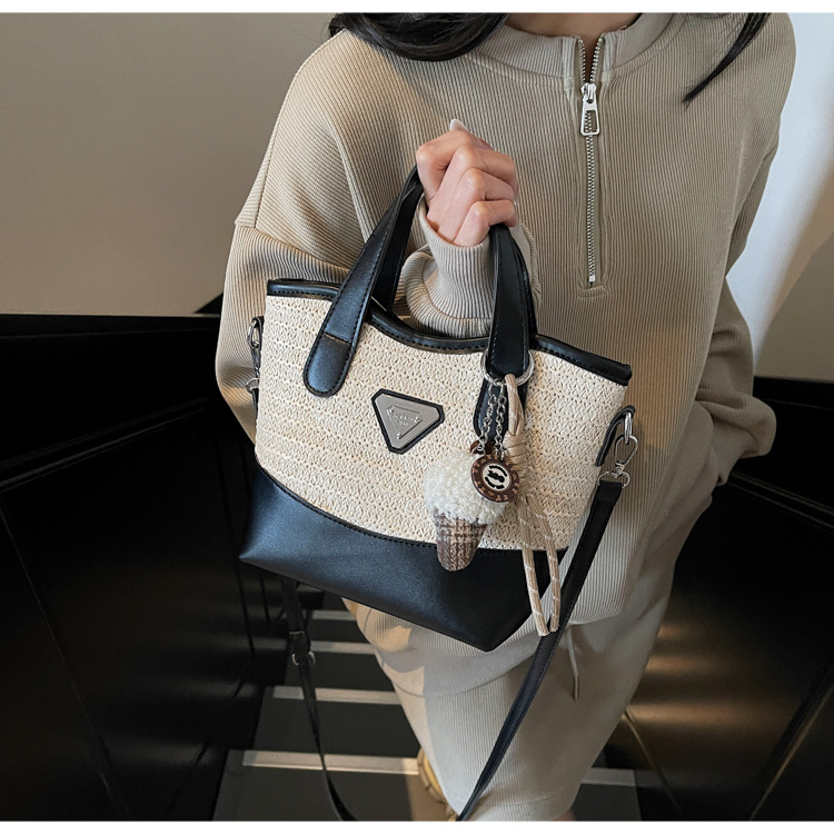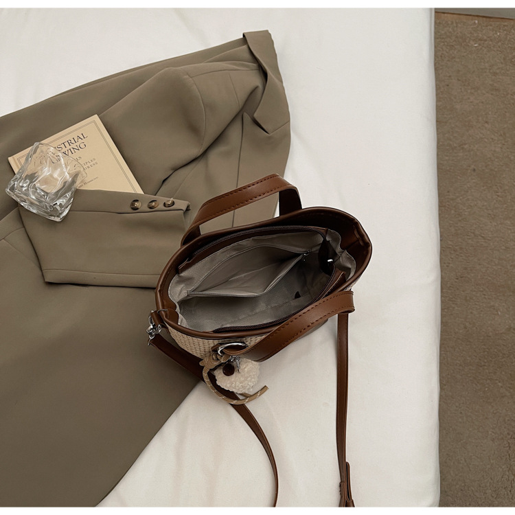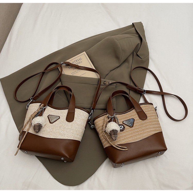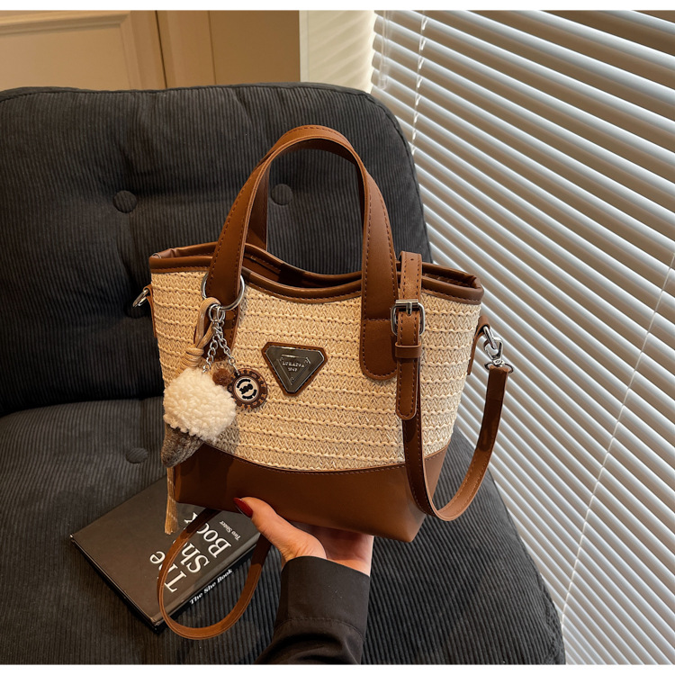 Bolso de mano de color de contraste tejido de estilo caliente de verano para mujer 2025 nuevo bolso de cubo simple salvaje estilo occidental para mujer