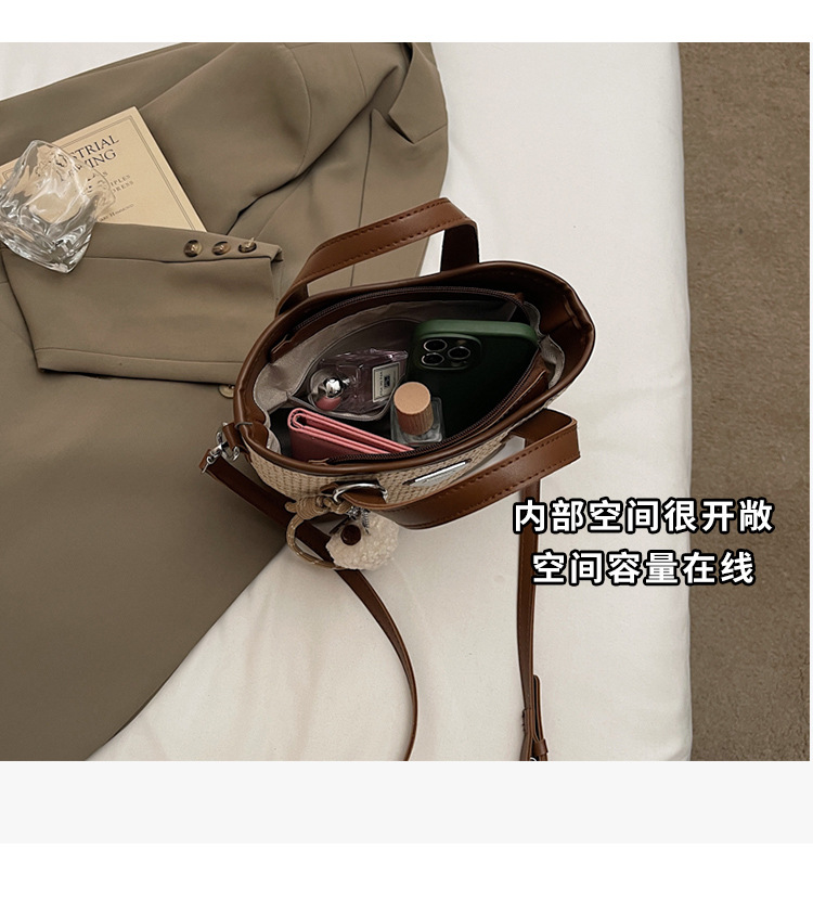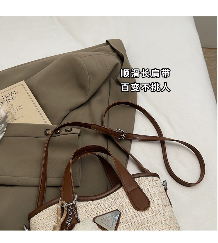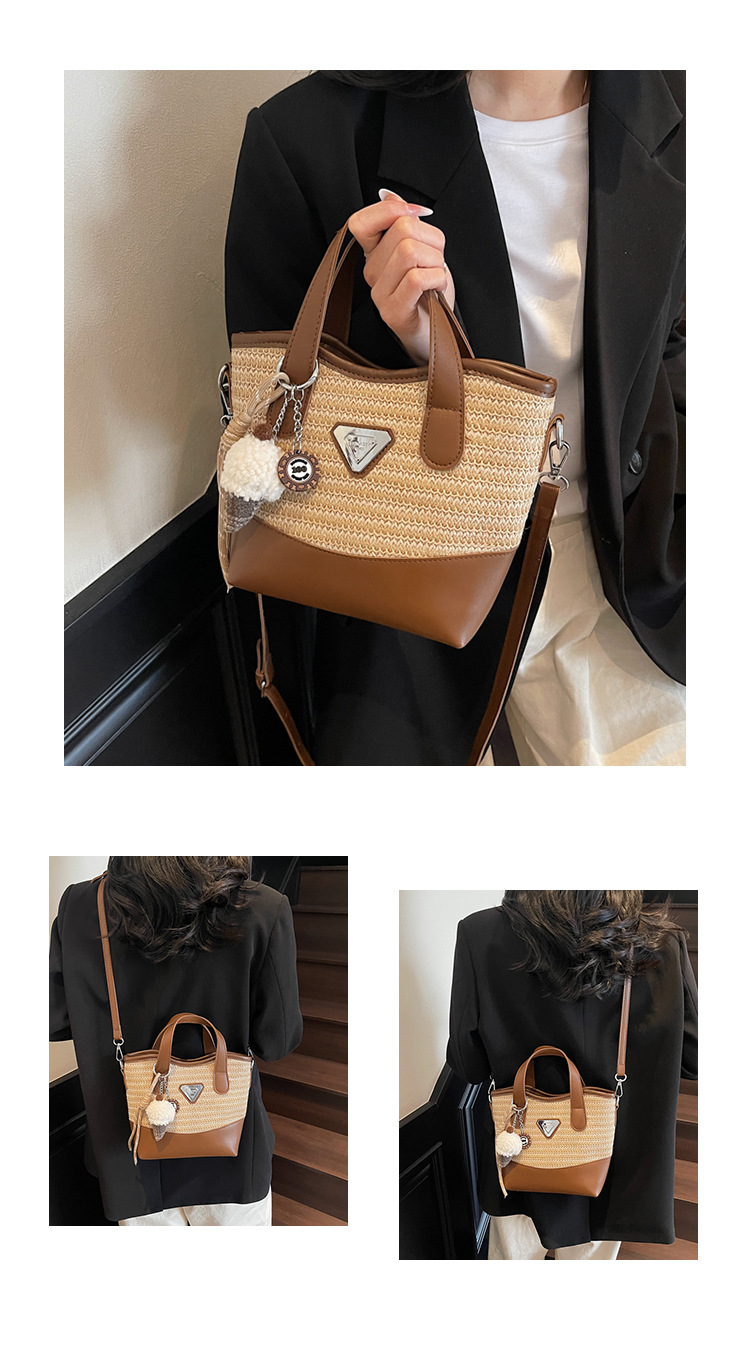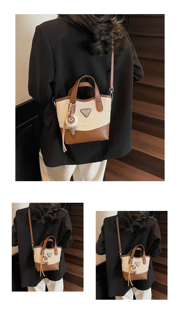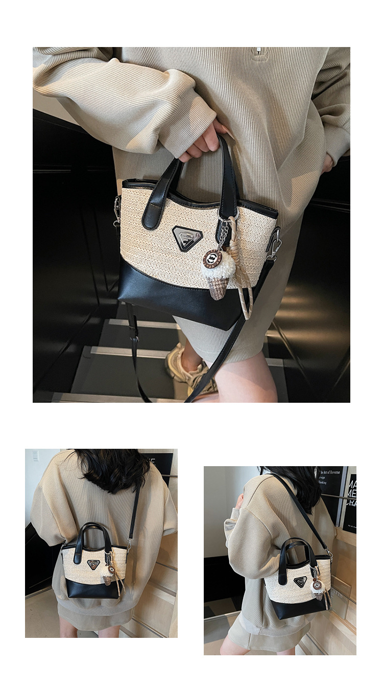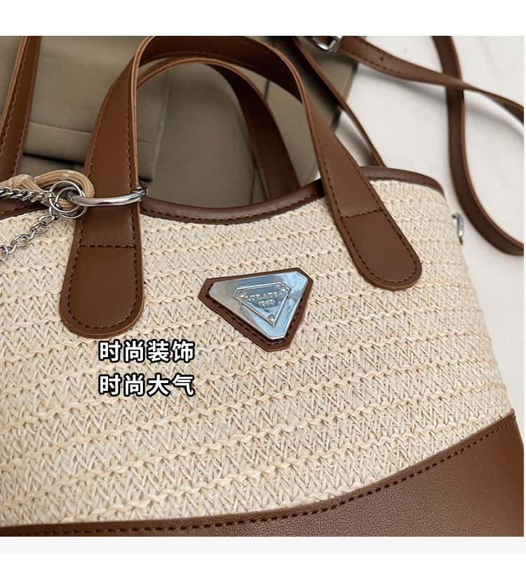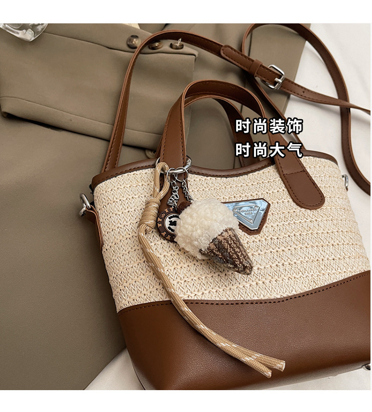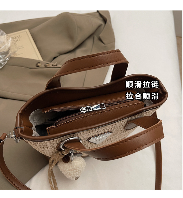 Bolso de mano de color de contraste tejido de estilo caliente de verano para mujer 2025 nuevo bolso de cubo simple salvaje estilo occidental para mujer