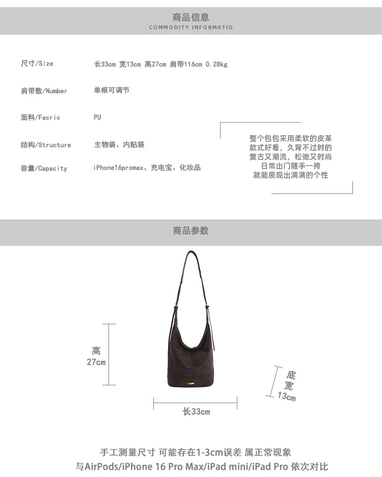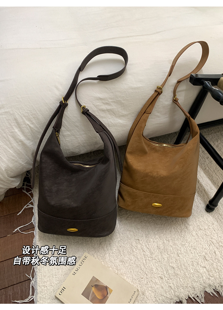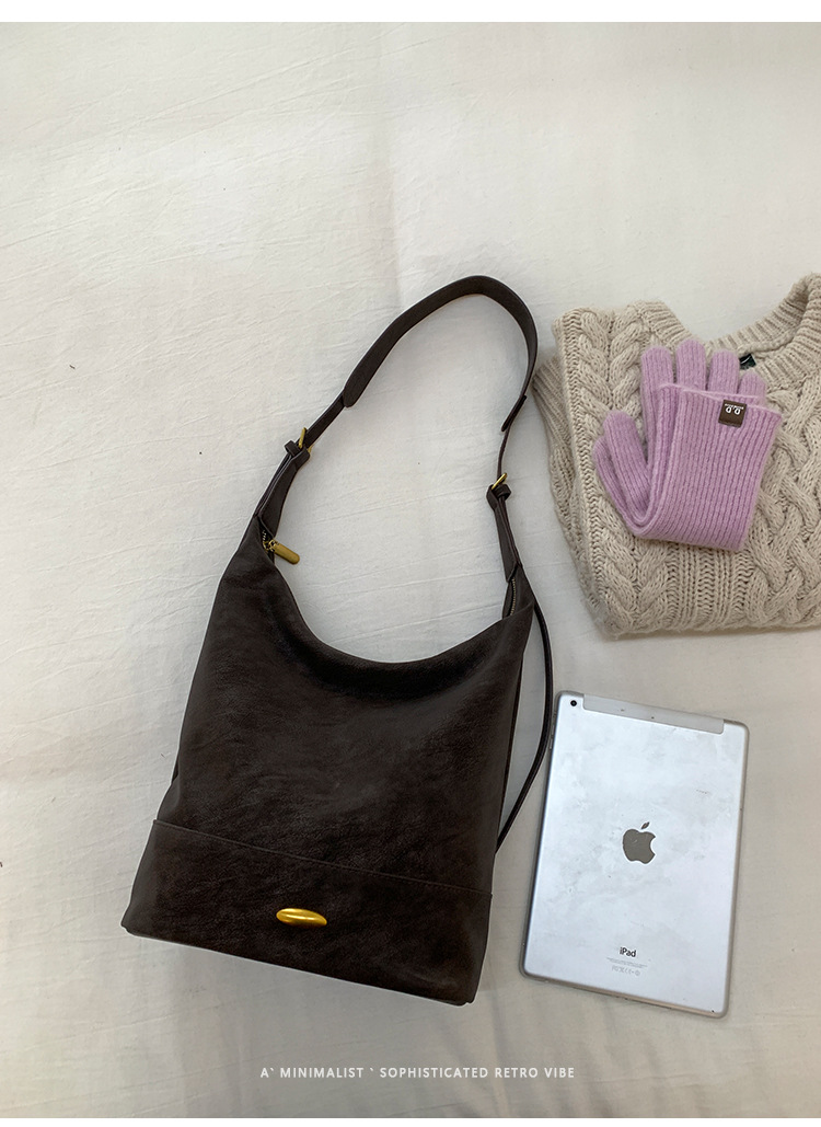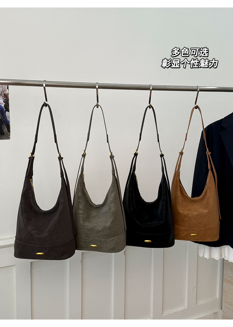 Coreano relajado sensación de colapsar bolso de cubo de seda bolso de mujer 2025 nuevo retro bolso de hombro bolso de viaje