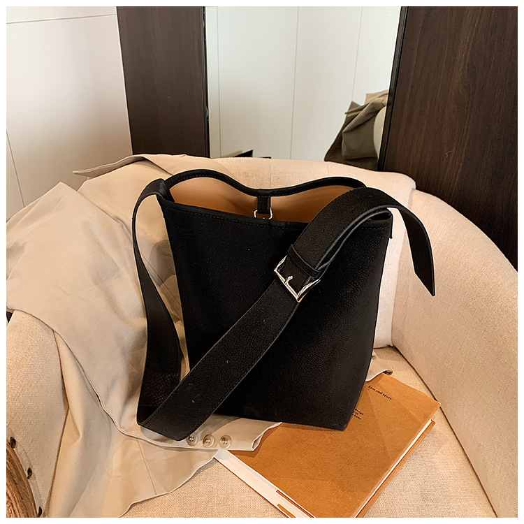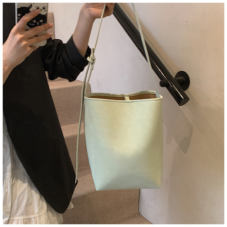 Nuevo bolso de cubo simple retro transfronterizo para mujer, estilo popular y explosivo, bolso de mensajero de un solo hombro de nicho casual