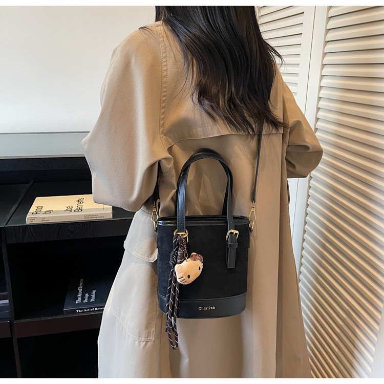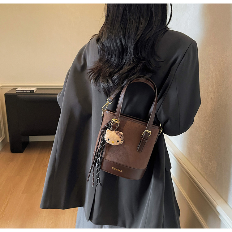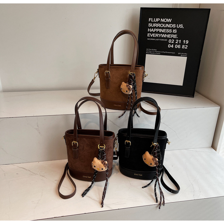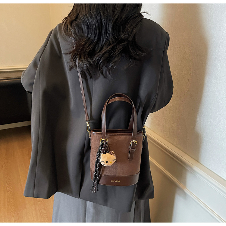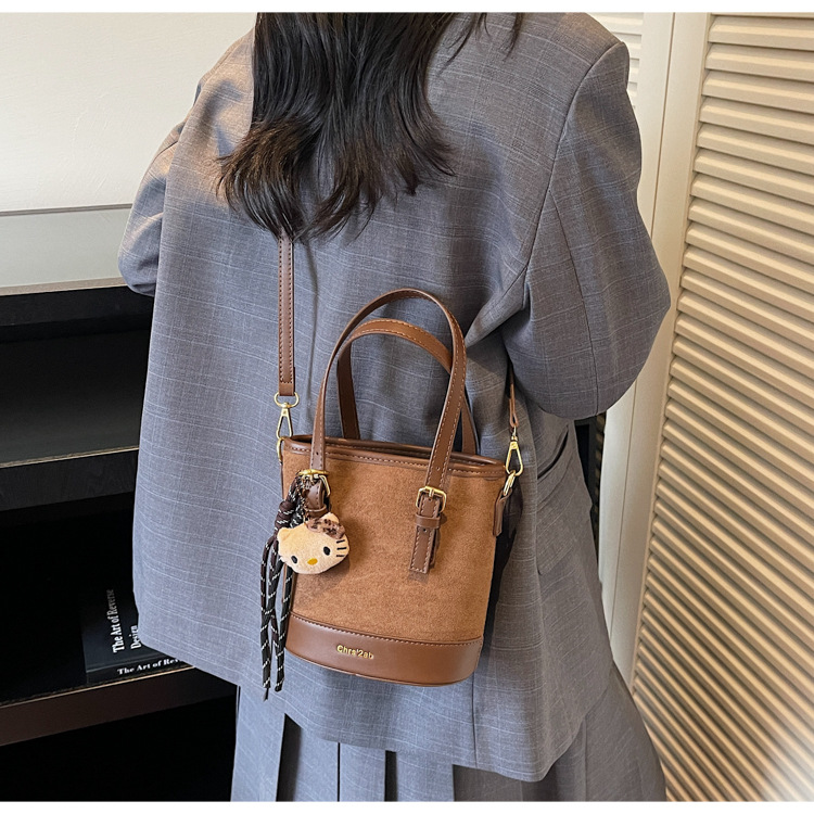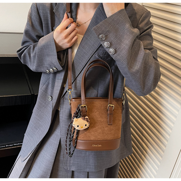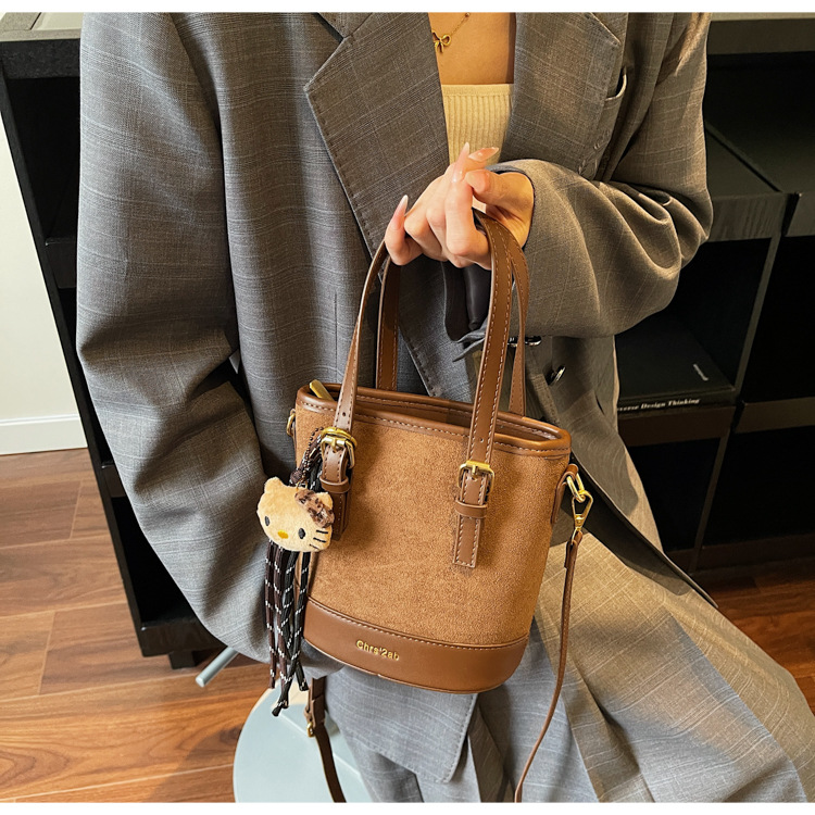 Cross-border coreano nicho esmerizado bolso de cubo de mano mujer 2025 nuevo invierno retro mochila de hombro mochila de viaje