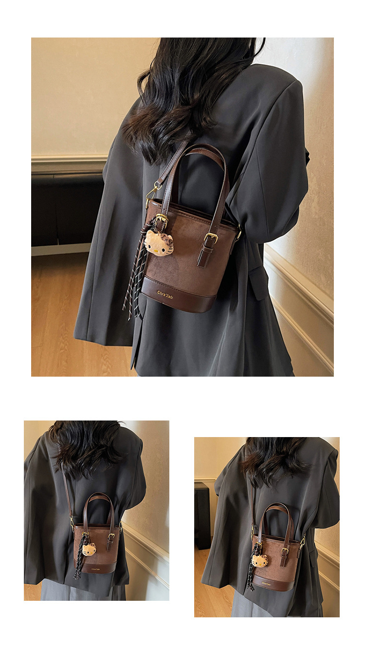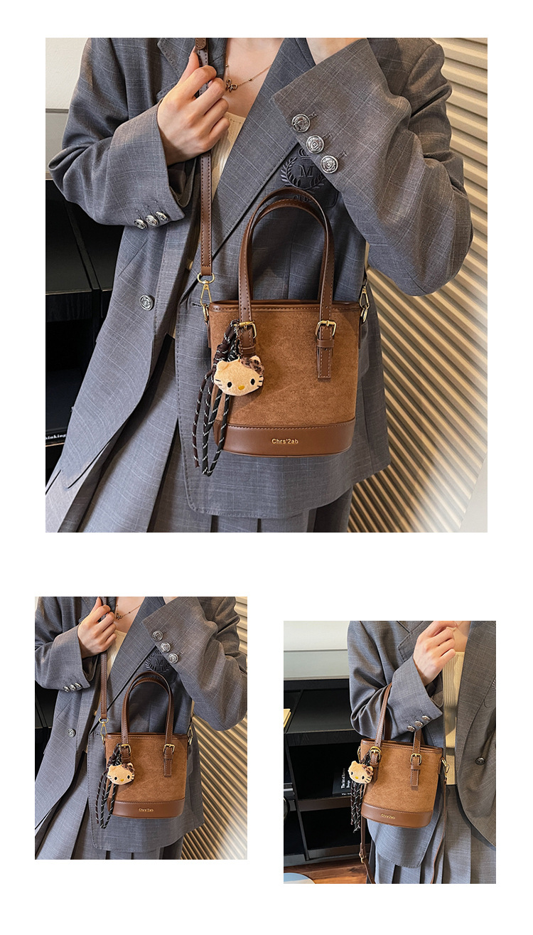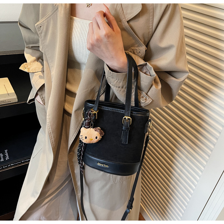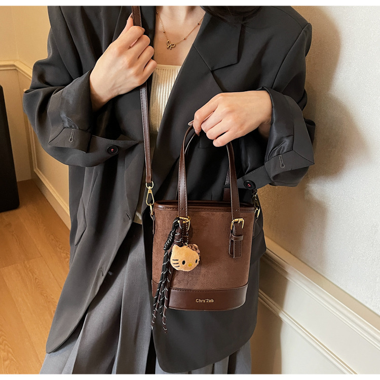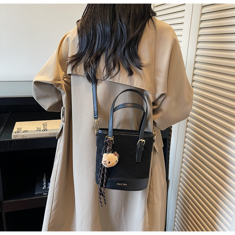 Cross-border coreano nicho esmerizado bolso de cubo de mano mujer 2025 nuevo invierno retro mochila de hombro mochila de viaje