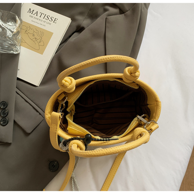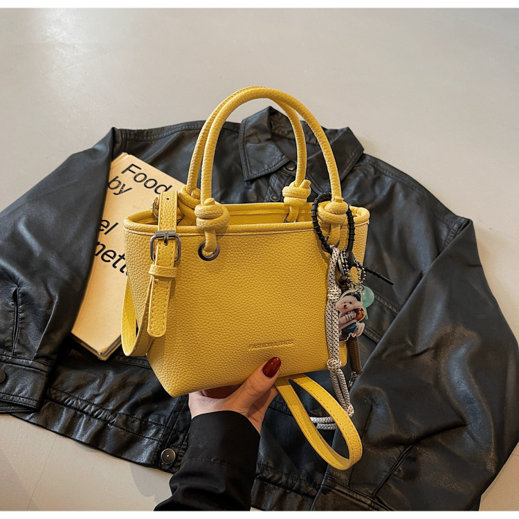 Bolso de cubo portátil para mujer, nuevo bolso de mensajero de textura salvaje 2025, bolso de canasta de verduras de moda retro de alta gama