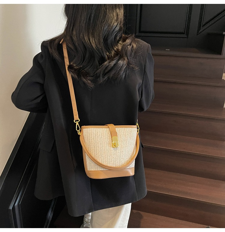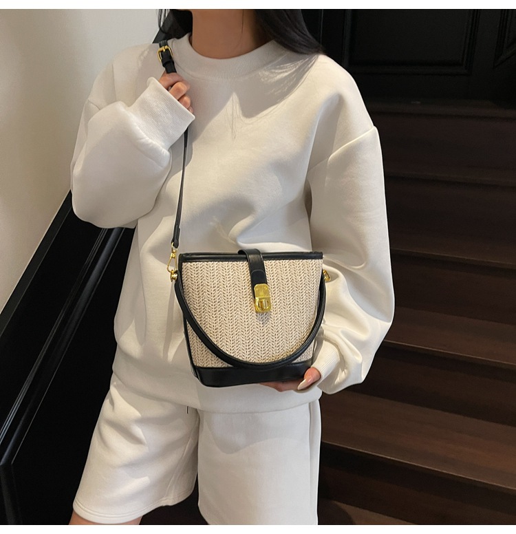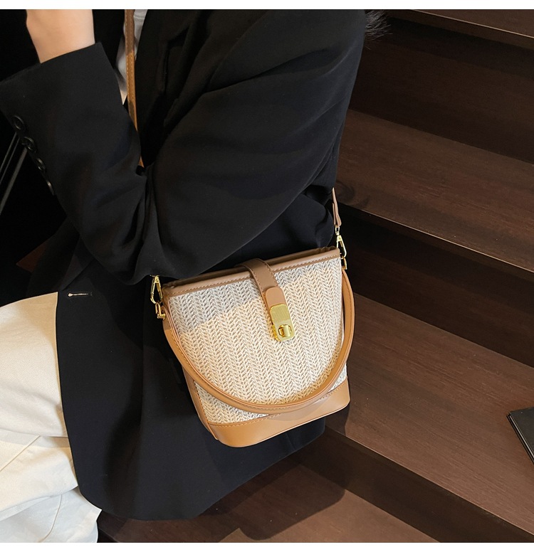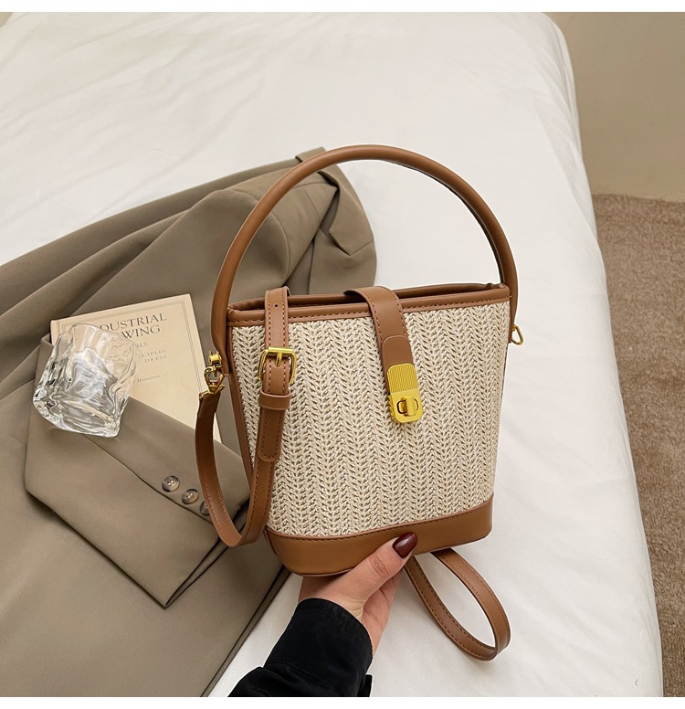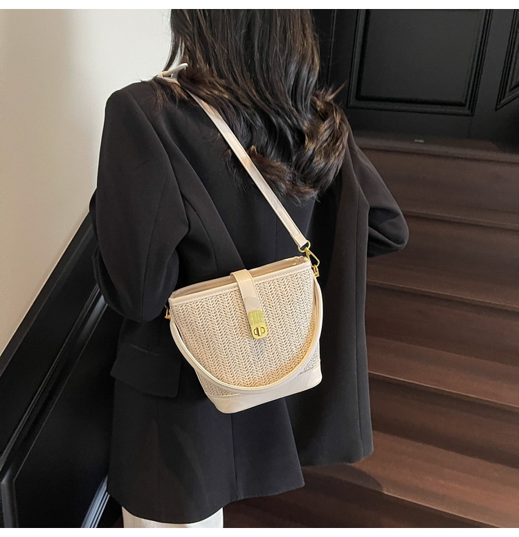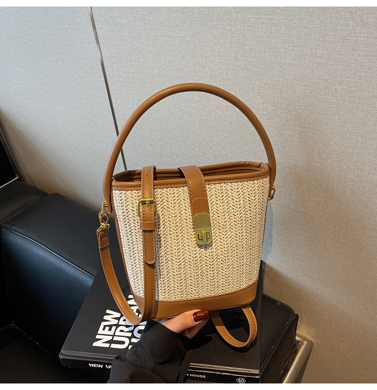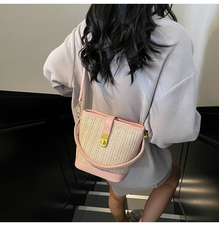 Bolsa de mano de tejido de verano super caliente para mujeres 2025 nuevo bolso de playa de vacaciones de alta calidad bolso de cubo de ocio