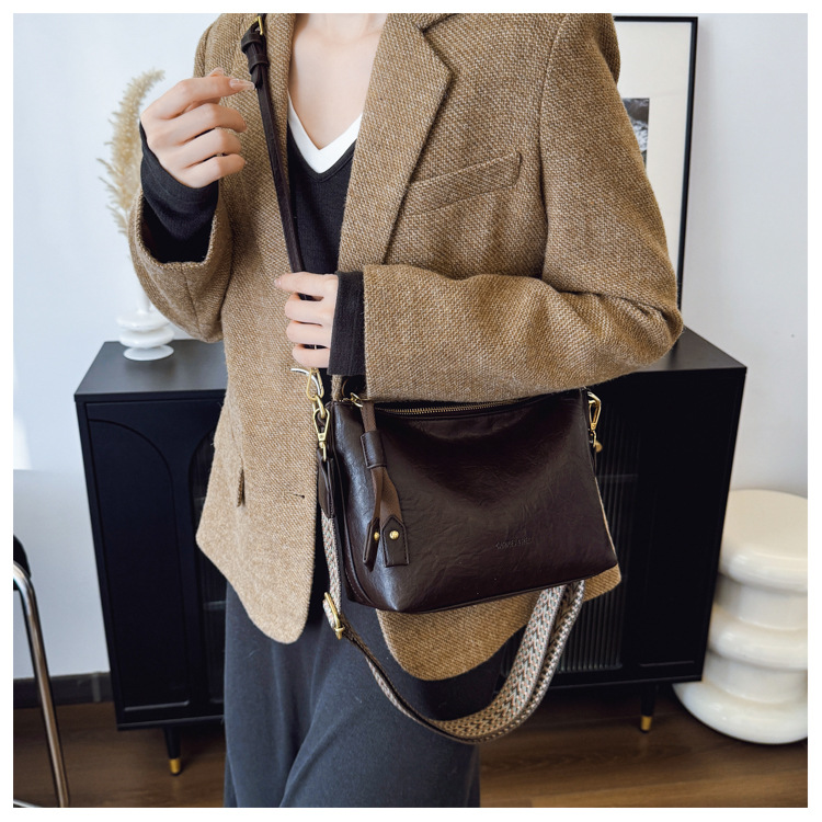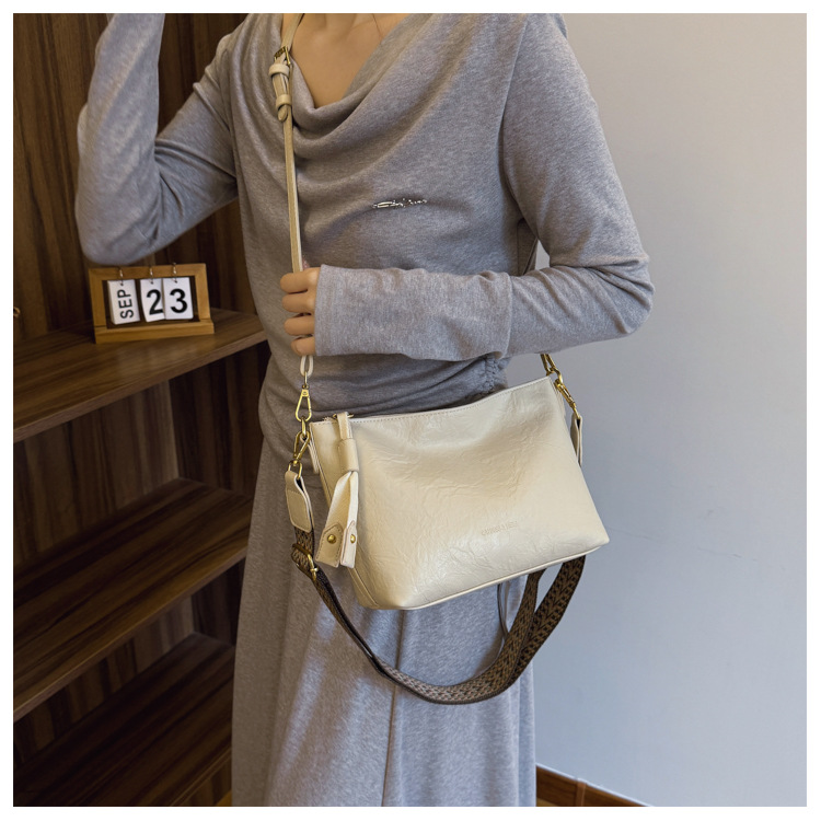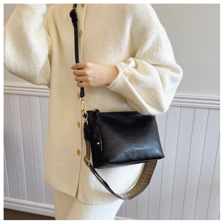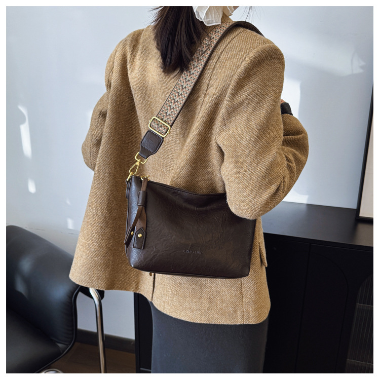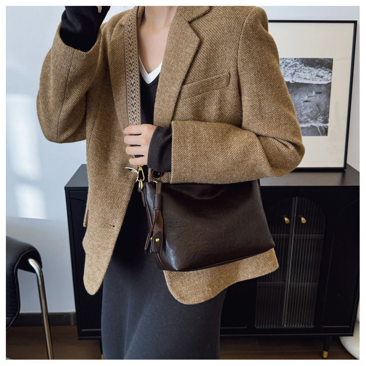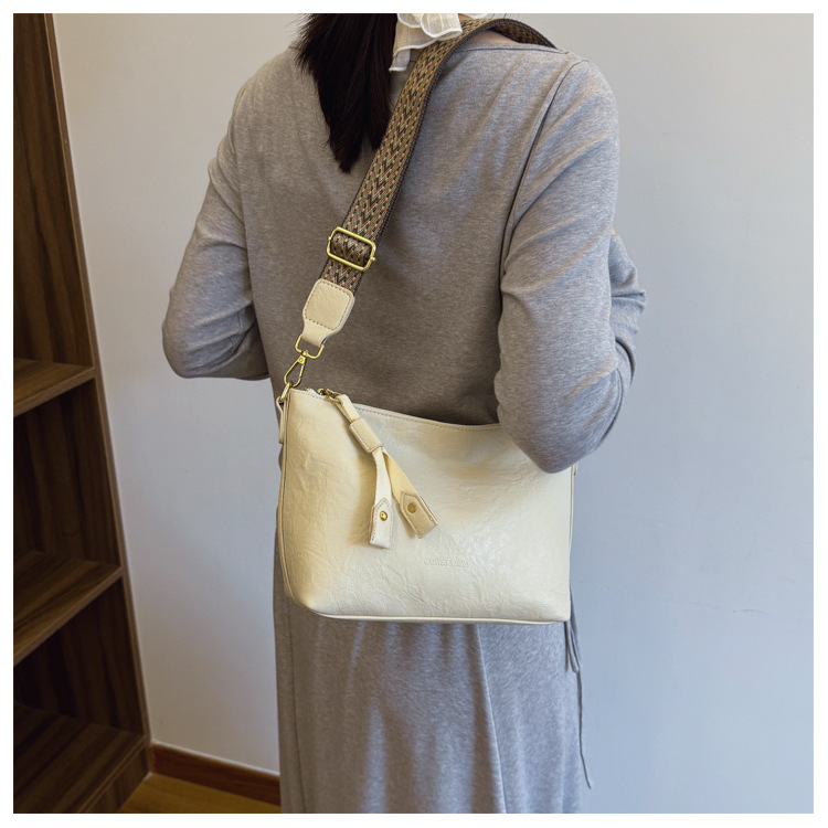 Bolsa de alta sensación de comercio exterior para mujeres 2025 nueva moda simple bolso de hombro de viaje casual bolso de cubo de agua