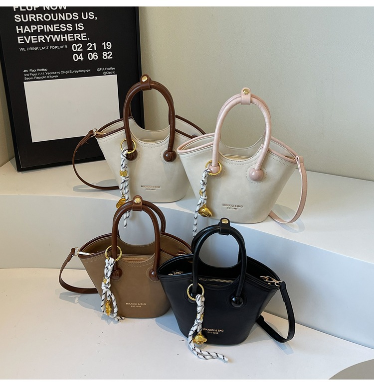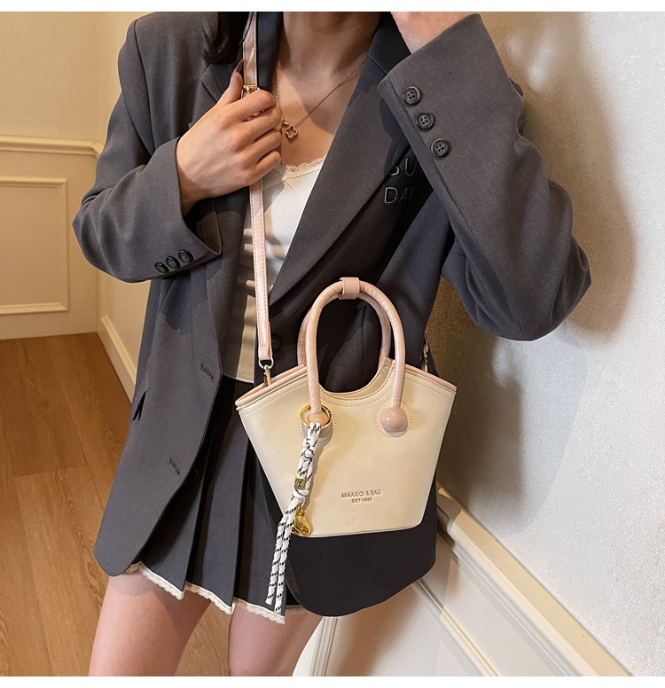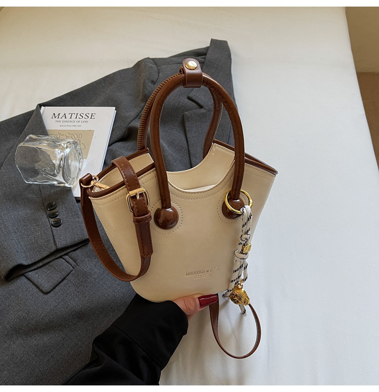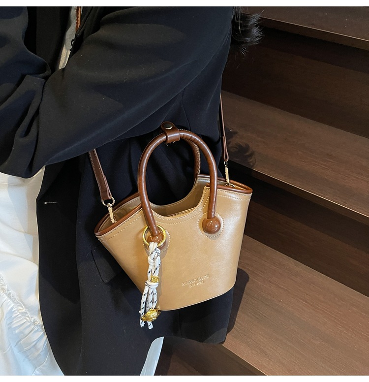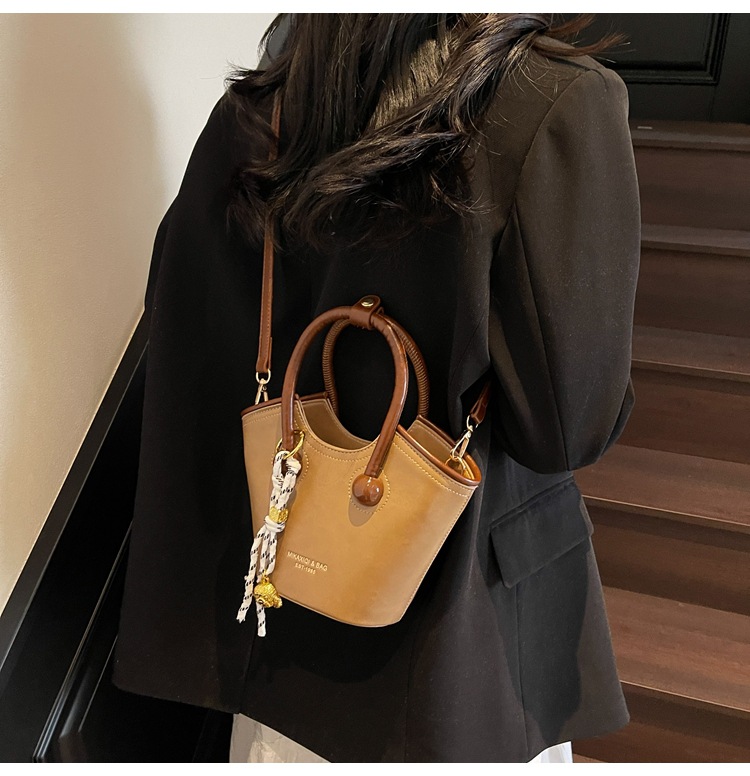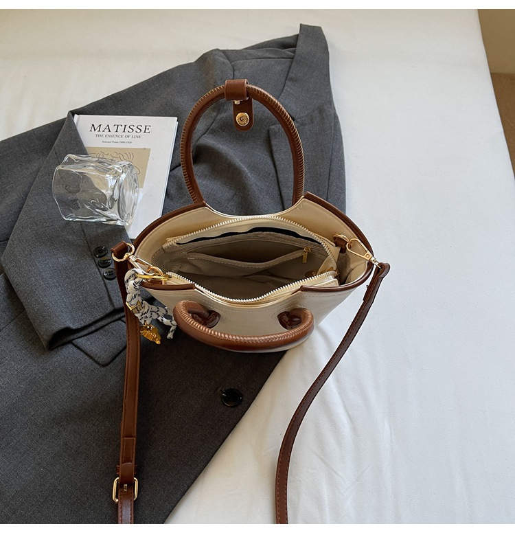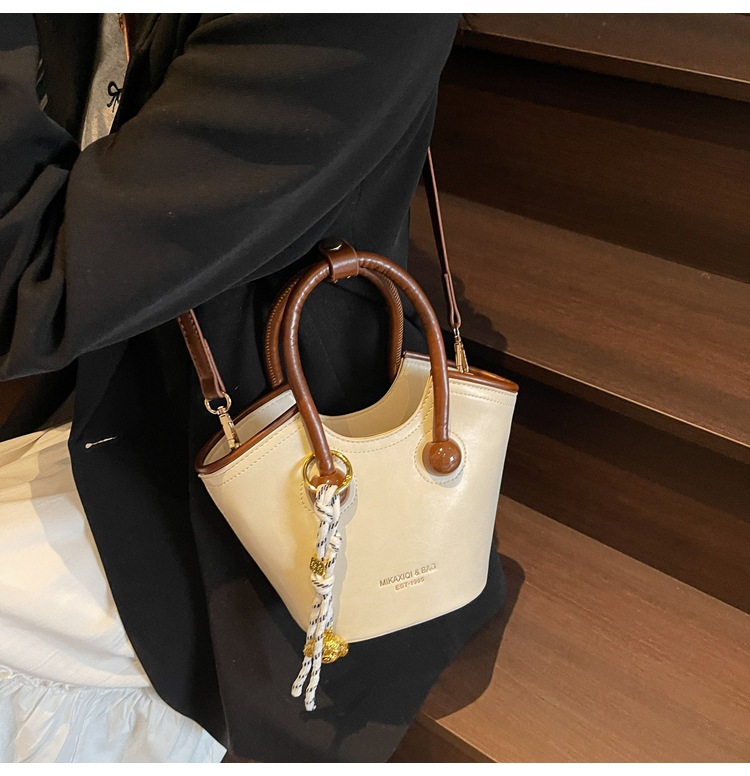 Bolsas de mano retro de color contrastante para mujeres 2025 nueva moda bolsas de hombro de estilo extranjero de alto nivel nicho bolsas de cubo