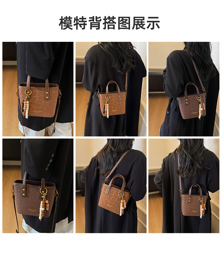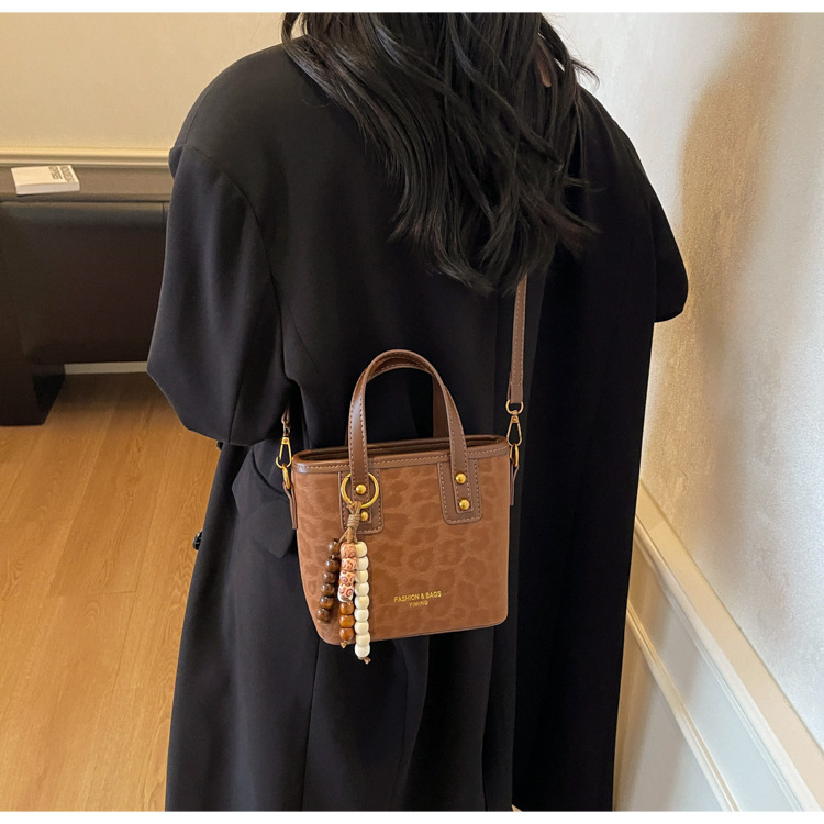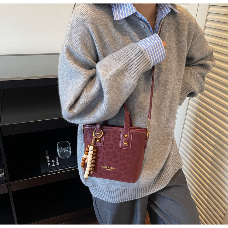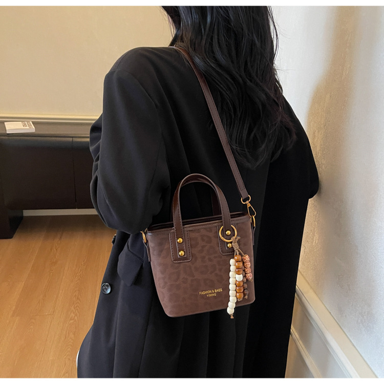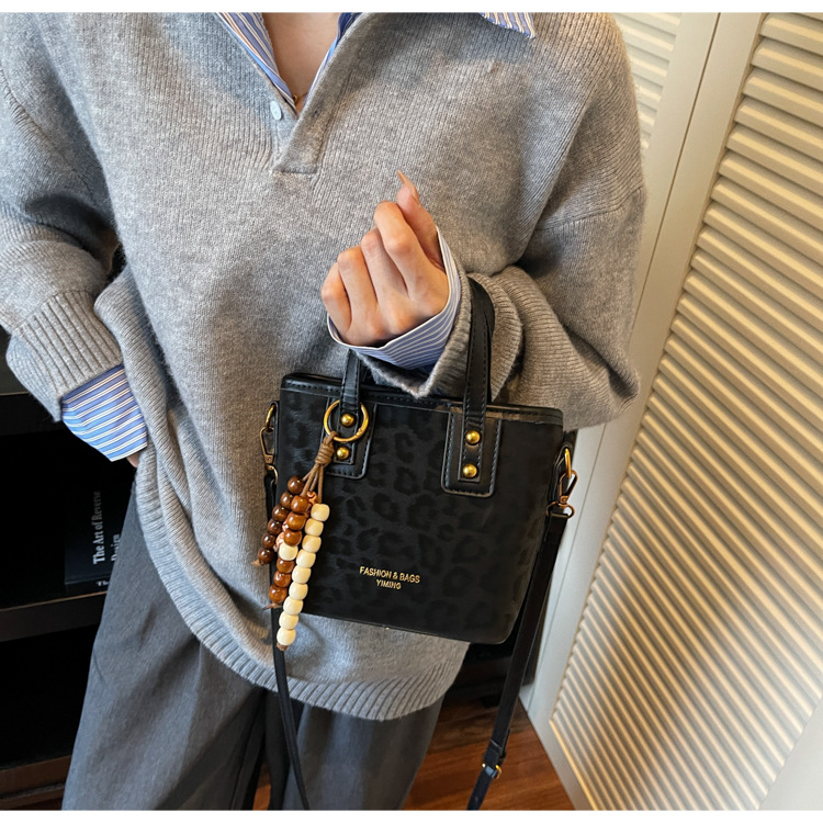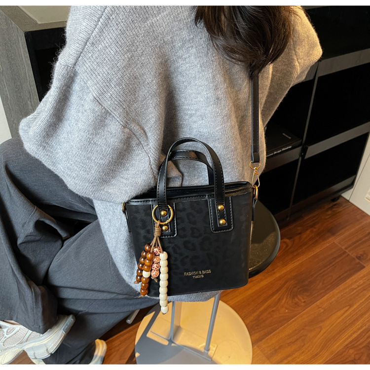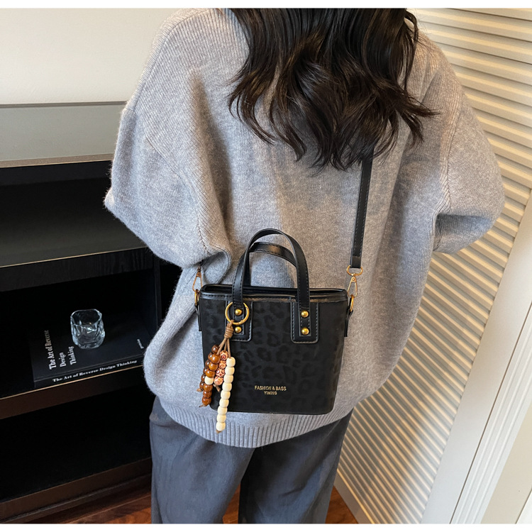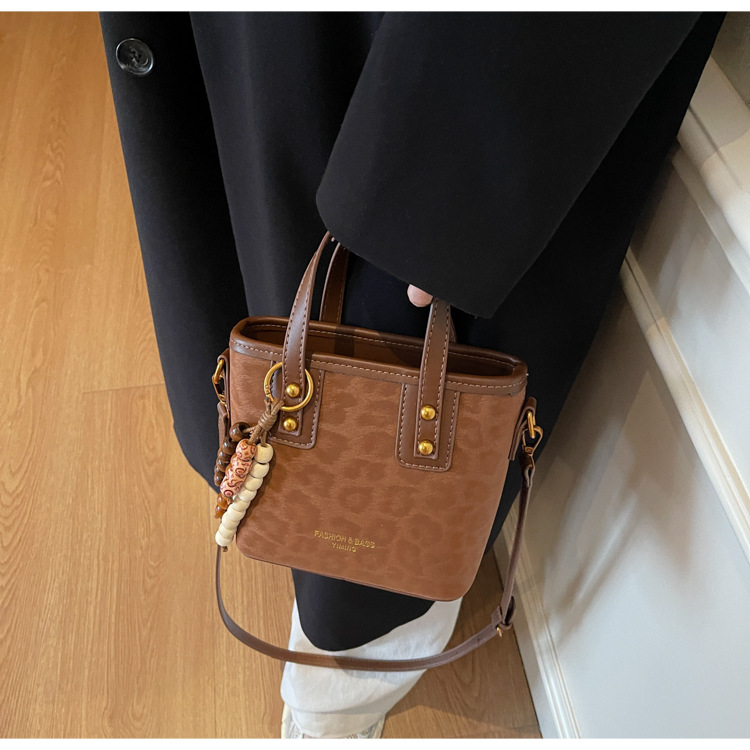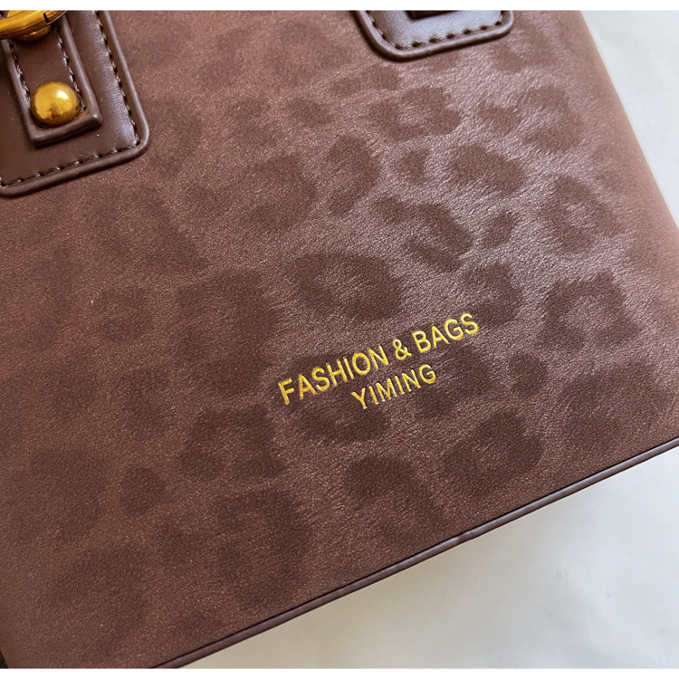 Bolsa de mano con patrón de leopardo transfronterizo, bolsa de cubo de viaje, mujer, otoño y invierno 2025, nueva moda, bolso de hombro de estilo extranjero.