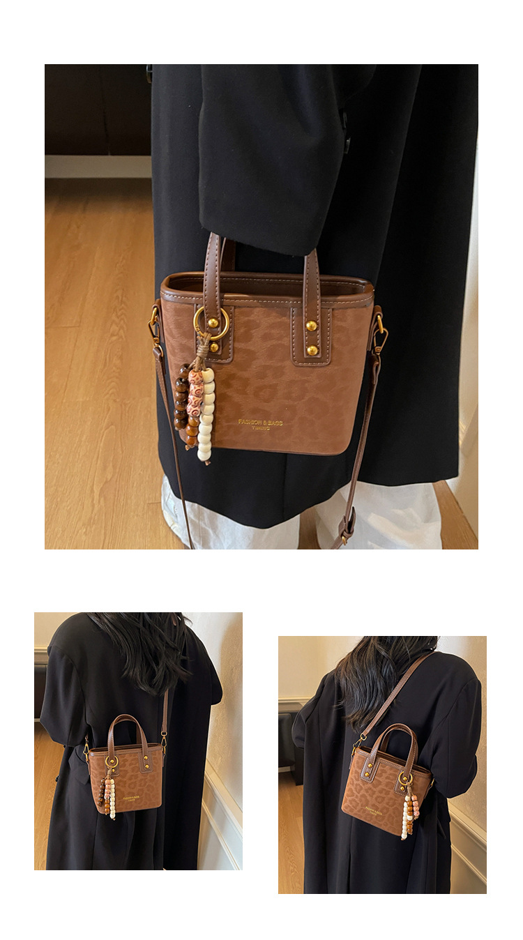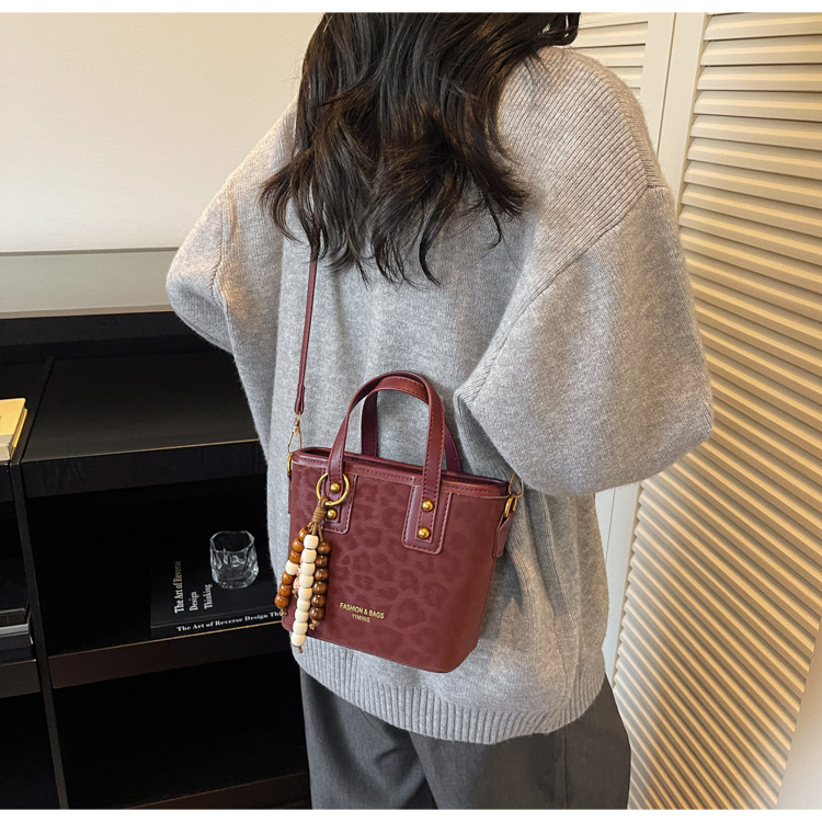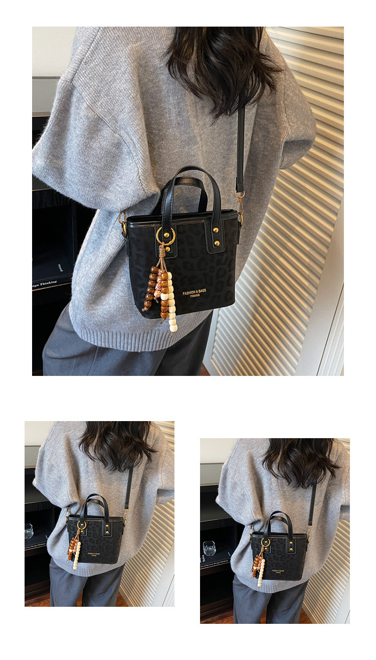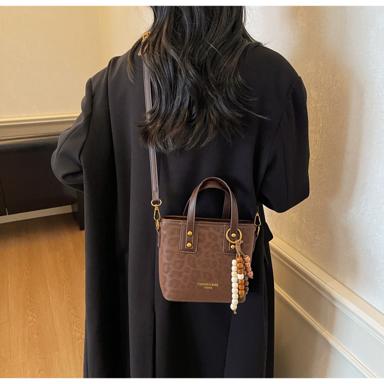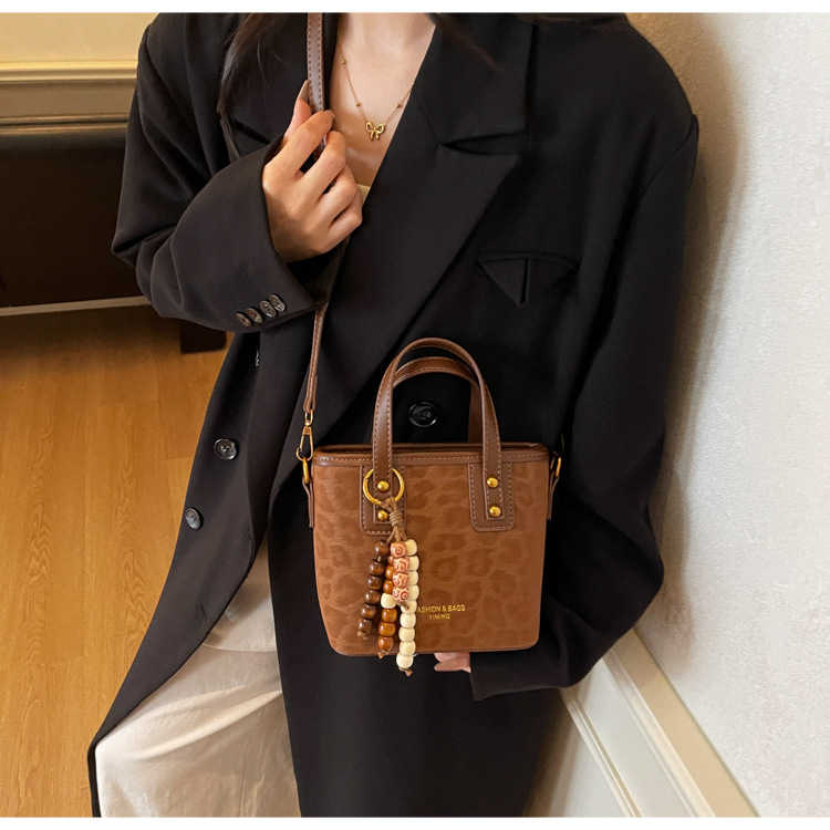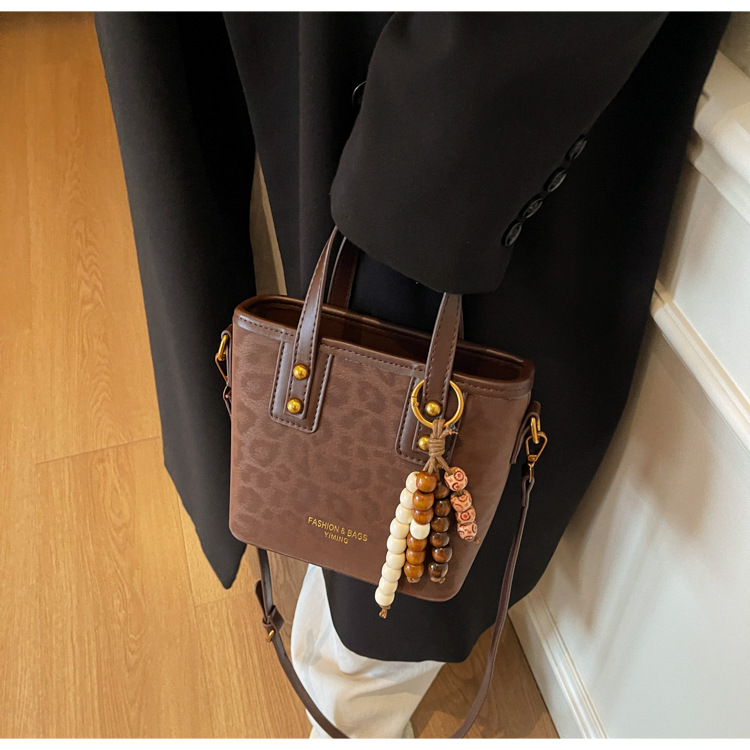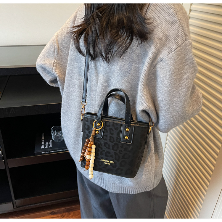 Bolsa de mano con patrón de leopardo transfronterizo, bolsa de cubo de viaje, mujer, otoño y invierno 2025, nueva moda, bolso de hombro de estilo extranjero.