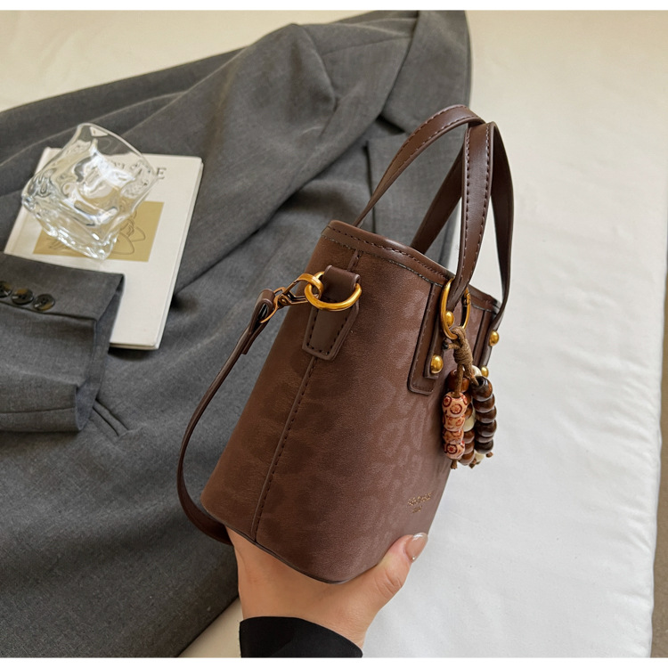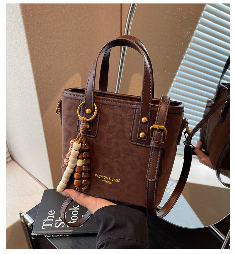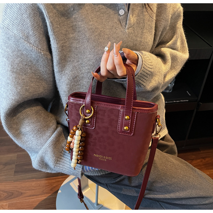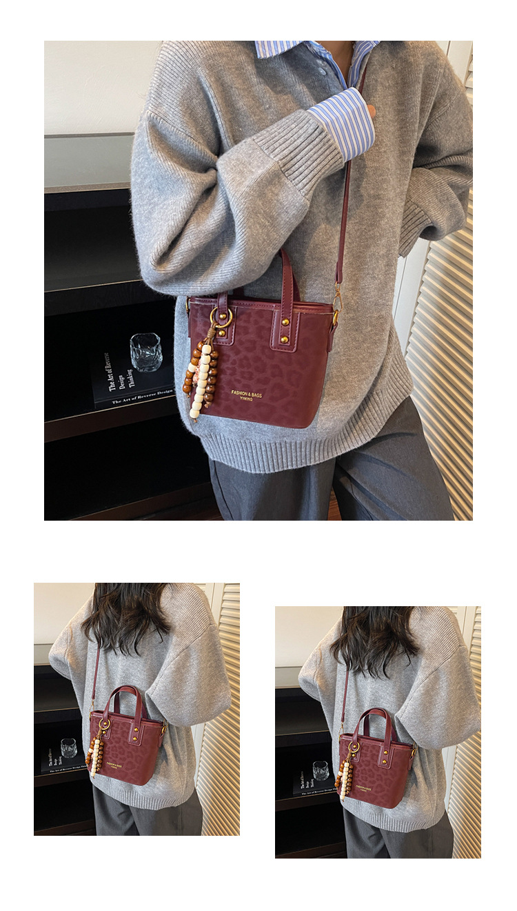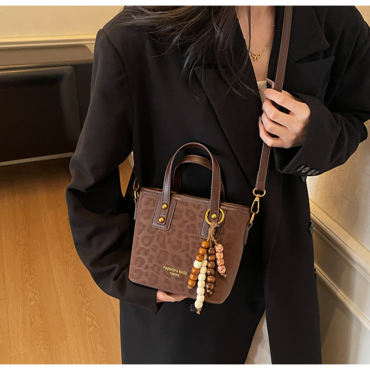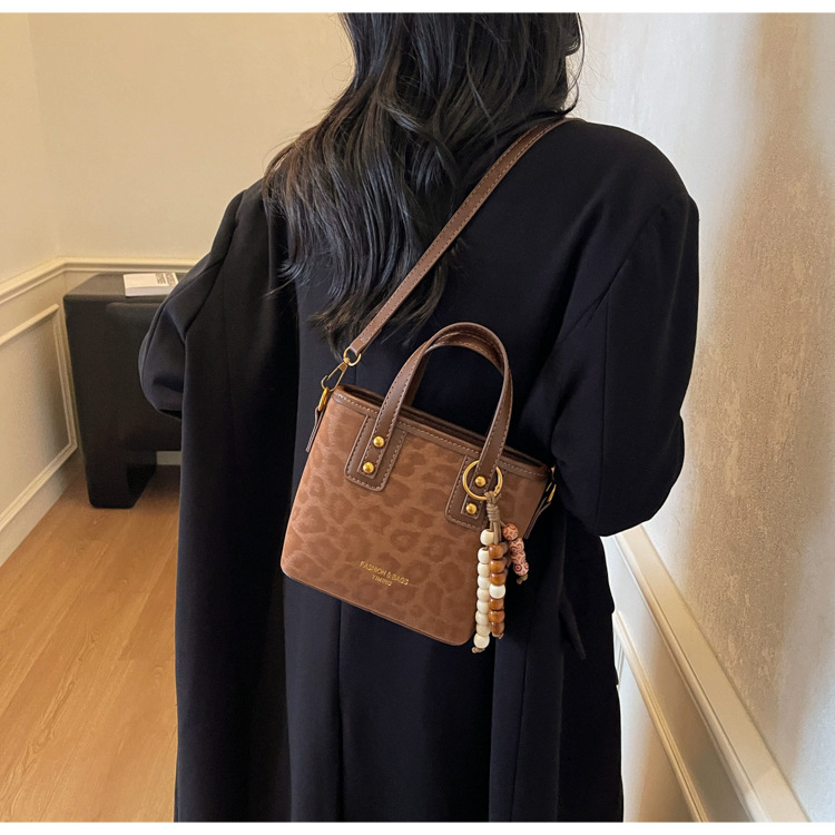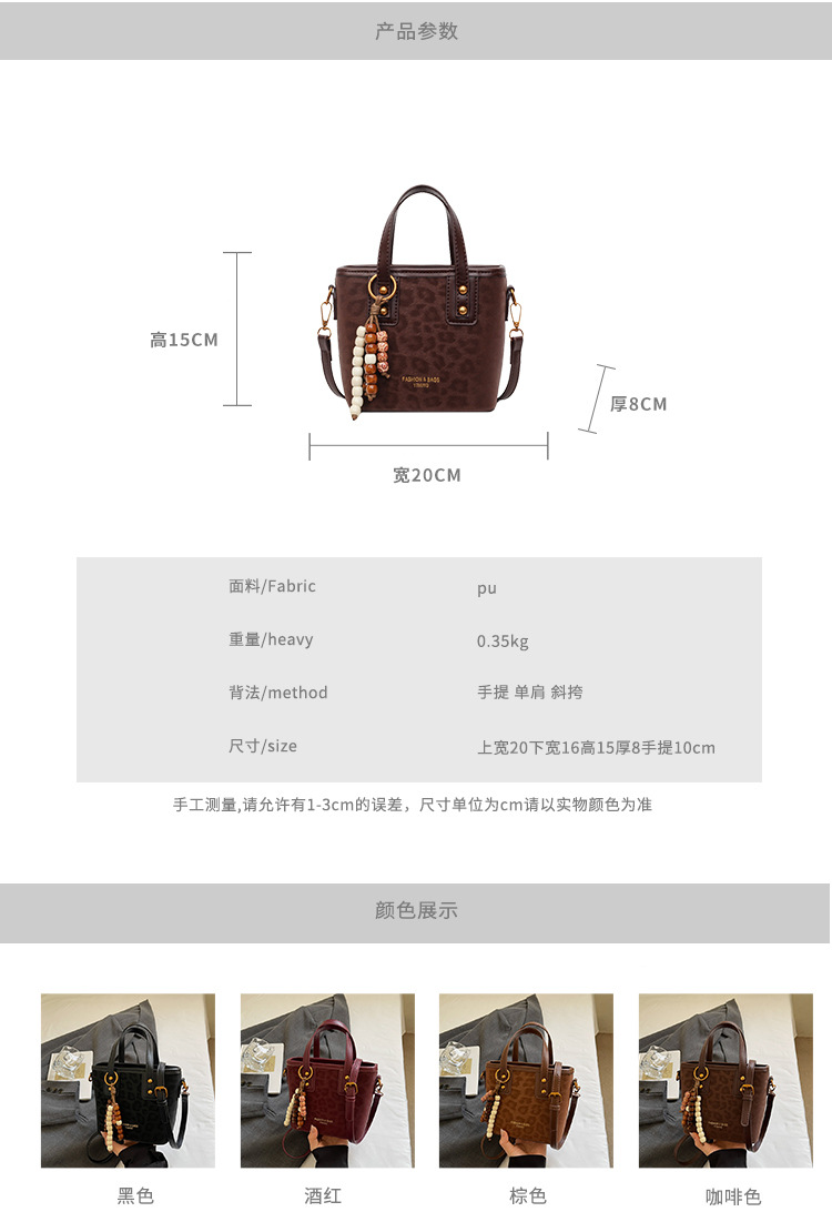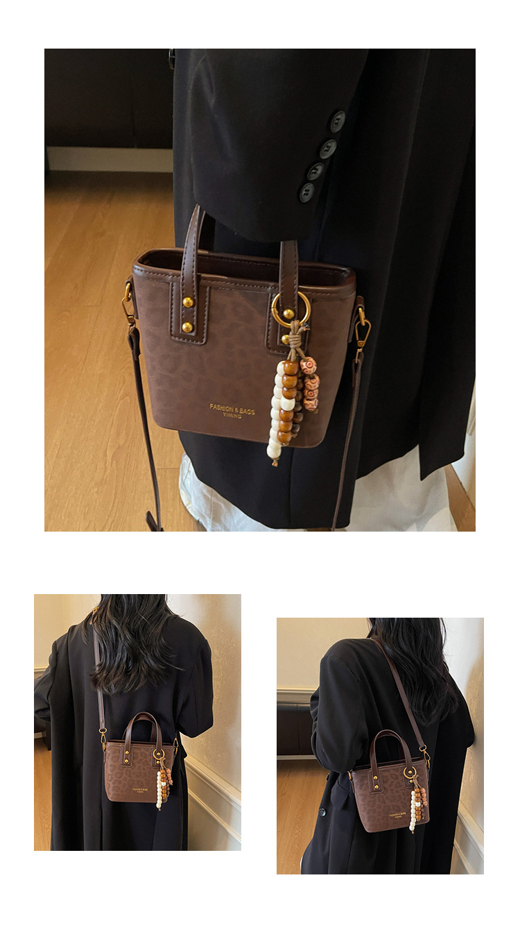 Bolsa de mano con patrón de leopardo transfronterizo, bolsa de cubo de viaje, mujer, otoño y invierno 2025, nueva moda, bolso de hombro de estilo extranjero.