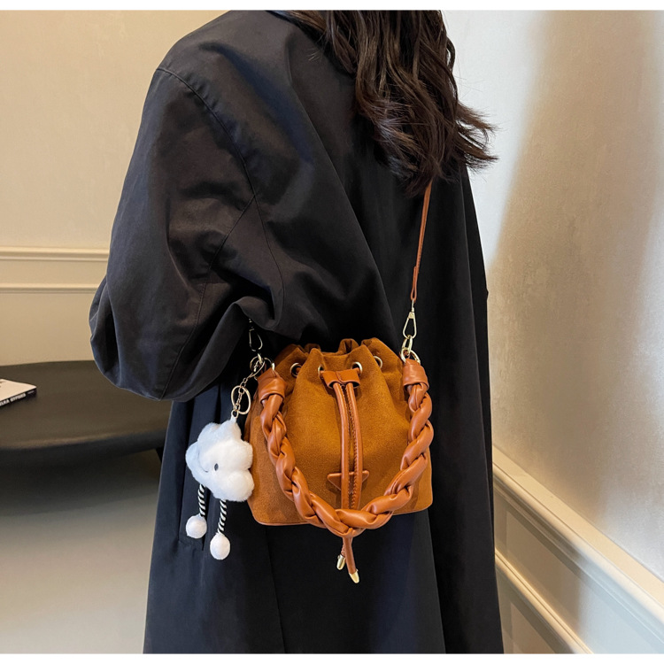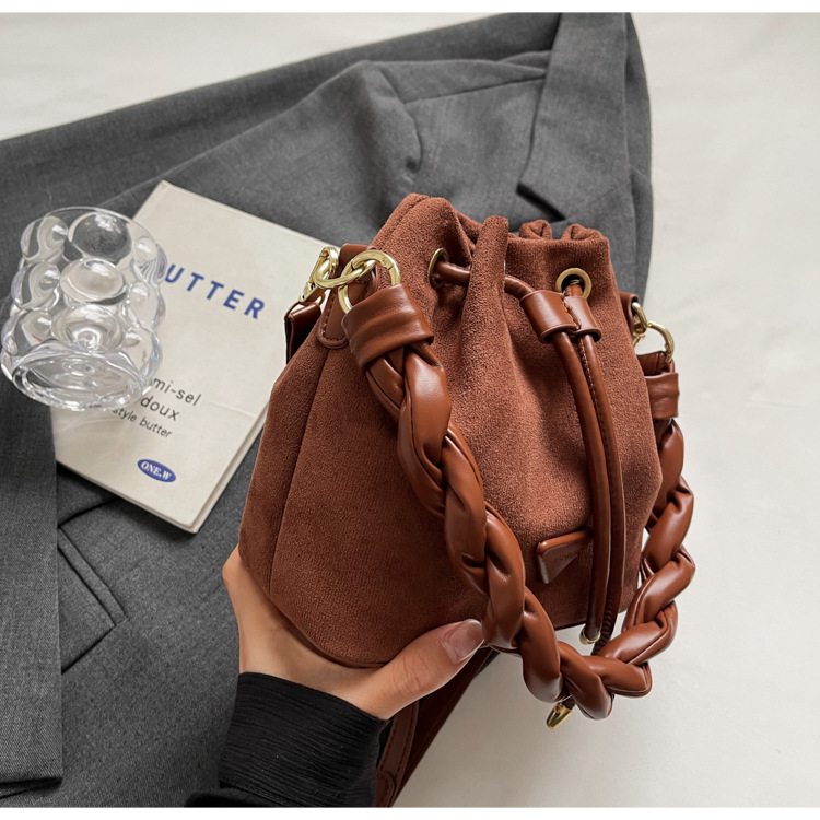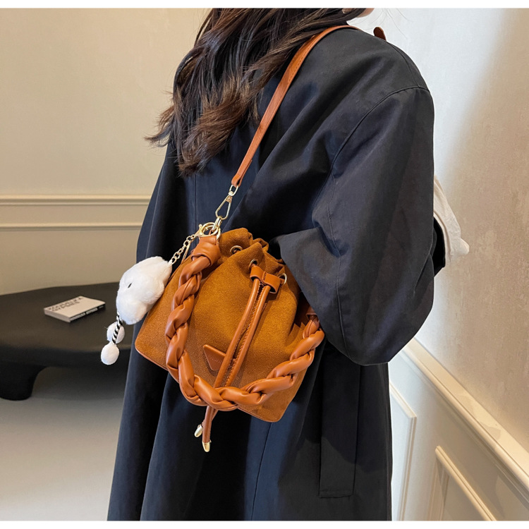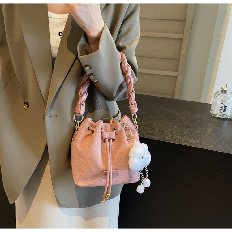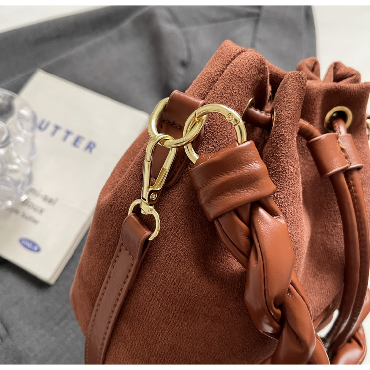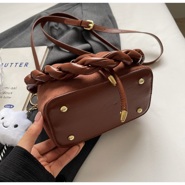 Moda esmerilado diseño de la abertura de la bolsa de cubo de mano mujer otoño y invierno 2025 nuevo estilo popular bolso de hombro universal