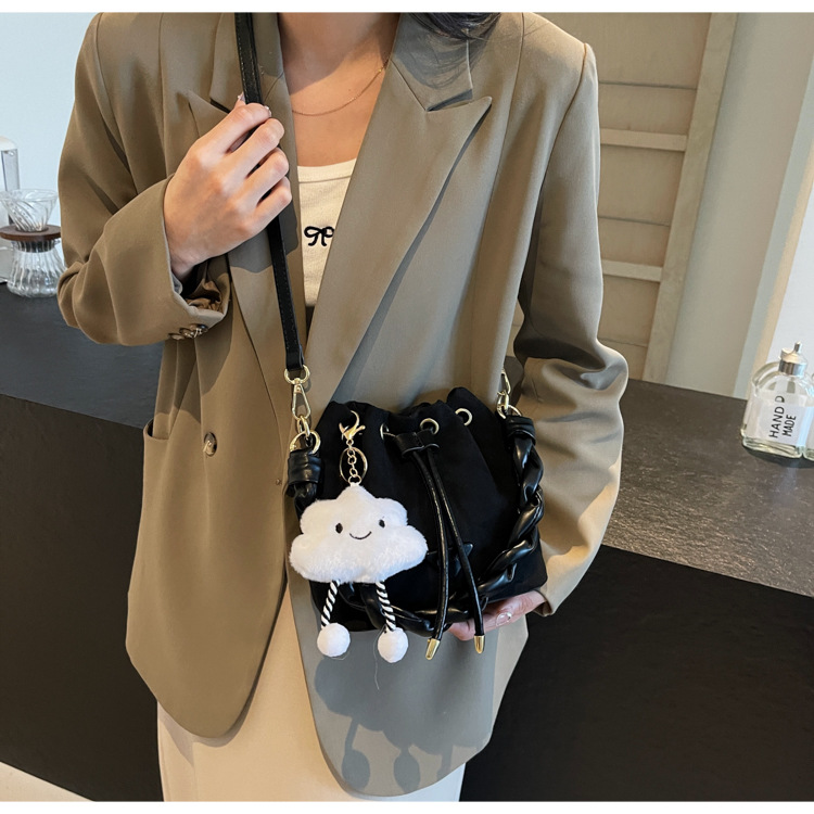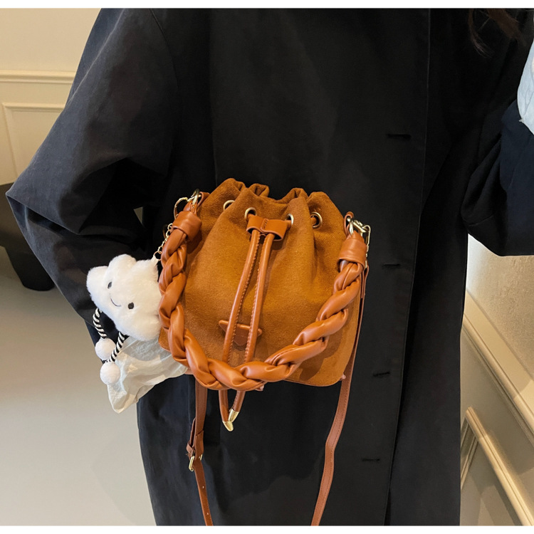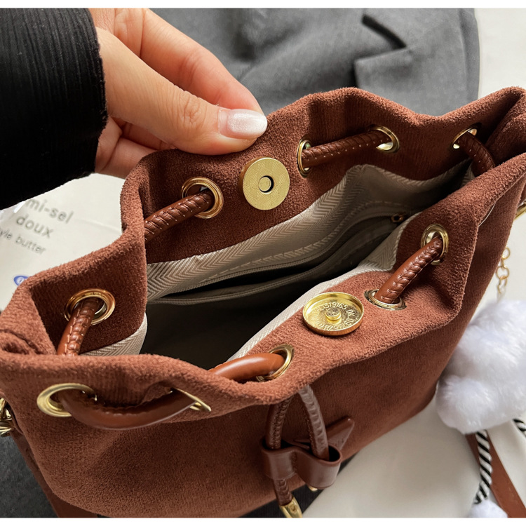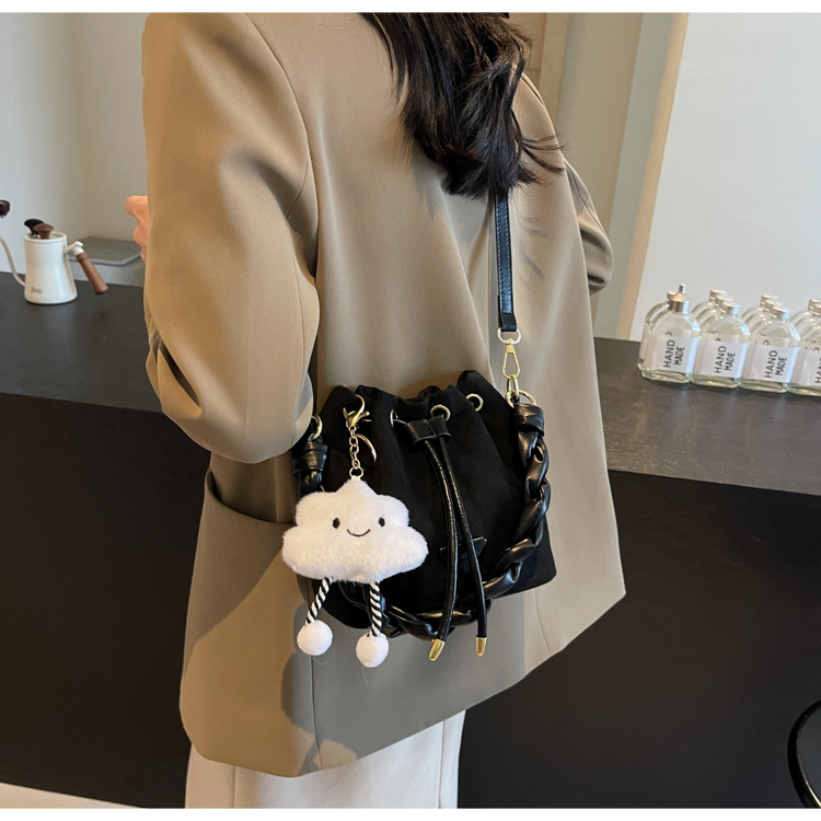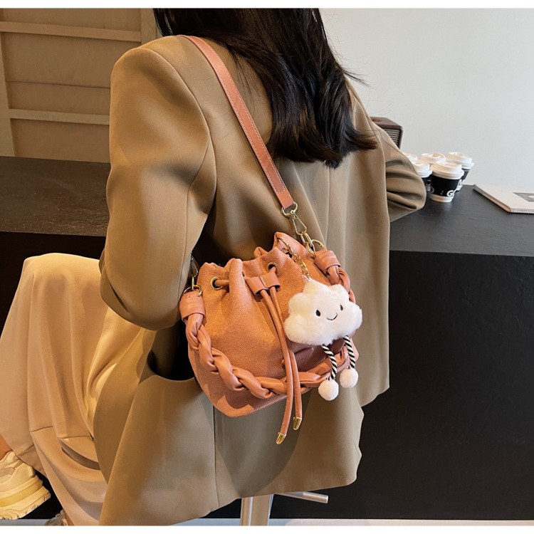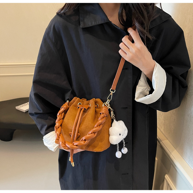 Moda esmerilado diseño de la abertura de la bolsa de cubo de mano mujer otoño y invierno 2025 nuevo estilo popular bolso de hombro universal