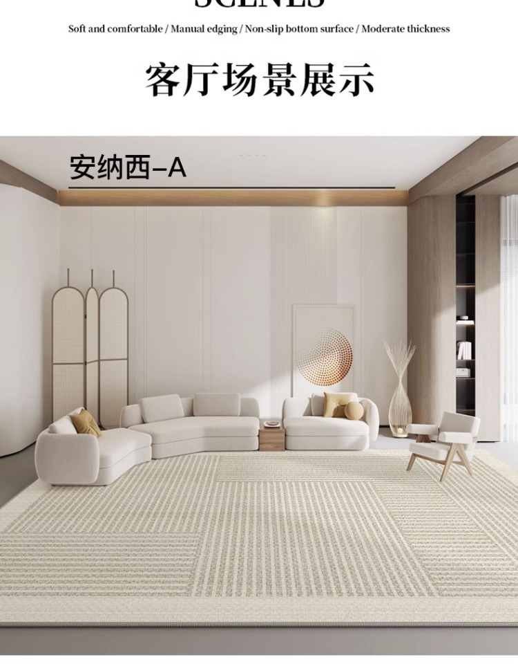 Alfombra de lujo ligera alfombra de lana de cristal alfombra de dormitorio alfombra de cama alfombra de gran área piso al por mayor