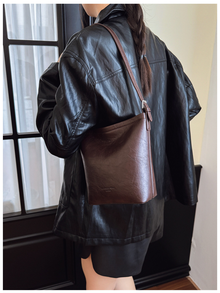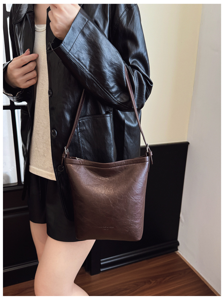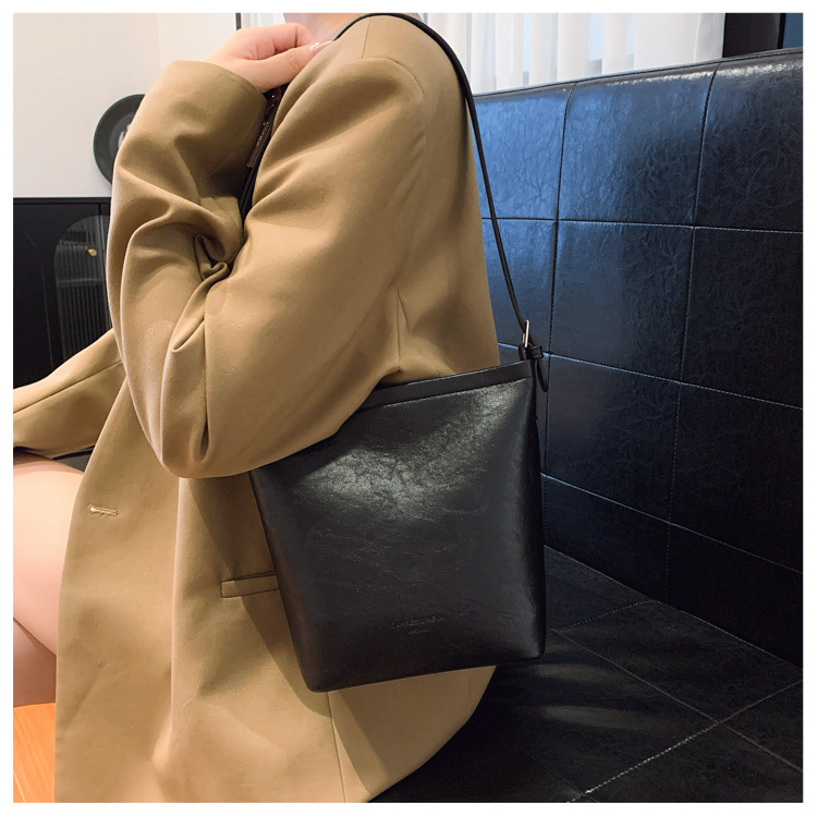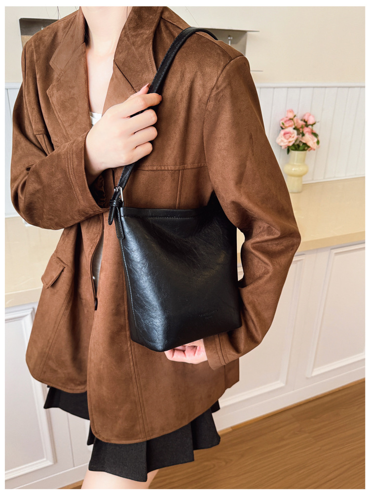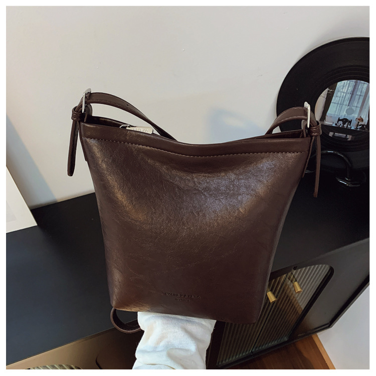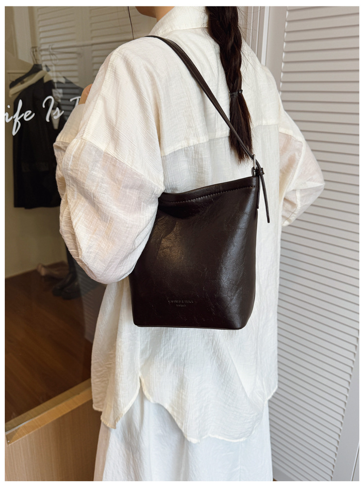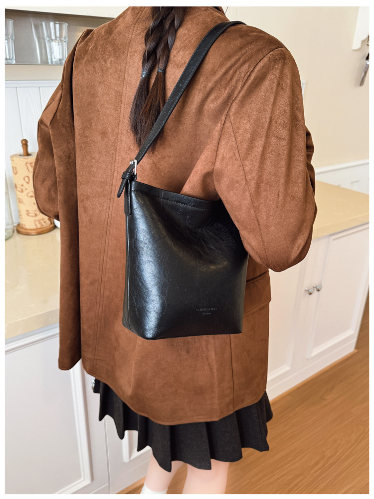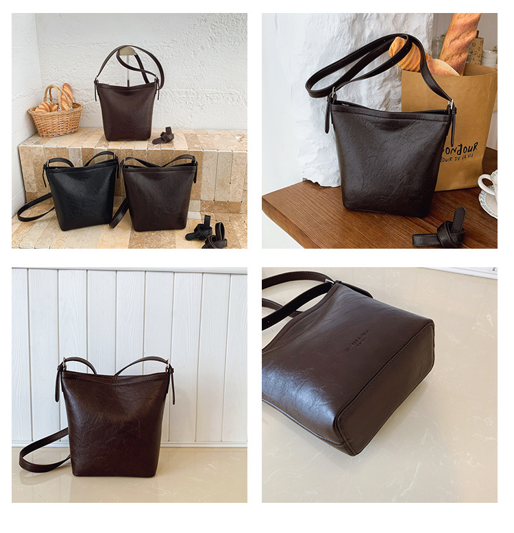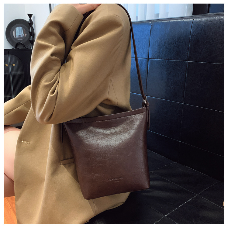 Bolsos de cubo de cera de alta calidad Otoño / Invierno de mujeres 2025 nuevo retro multifuncional bolso de hombro bolso de moda