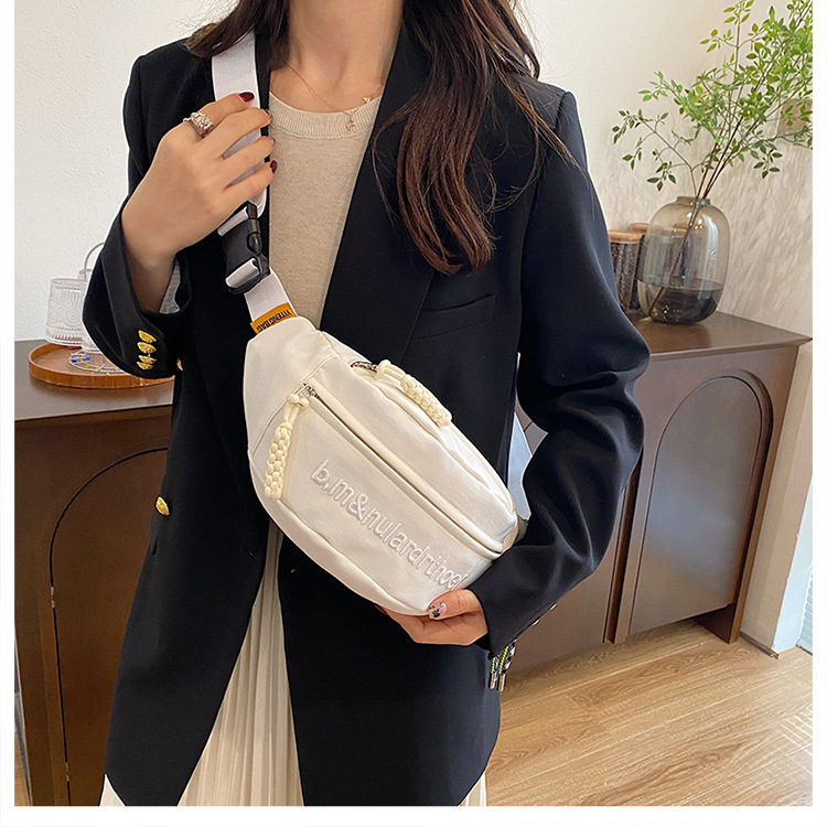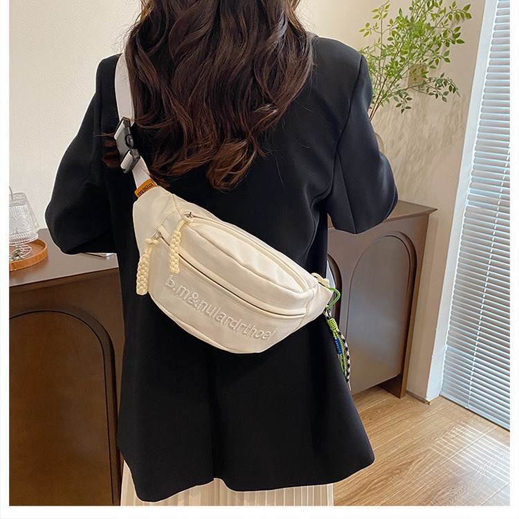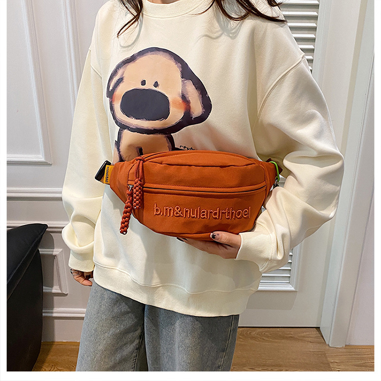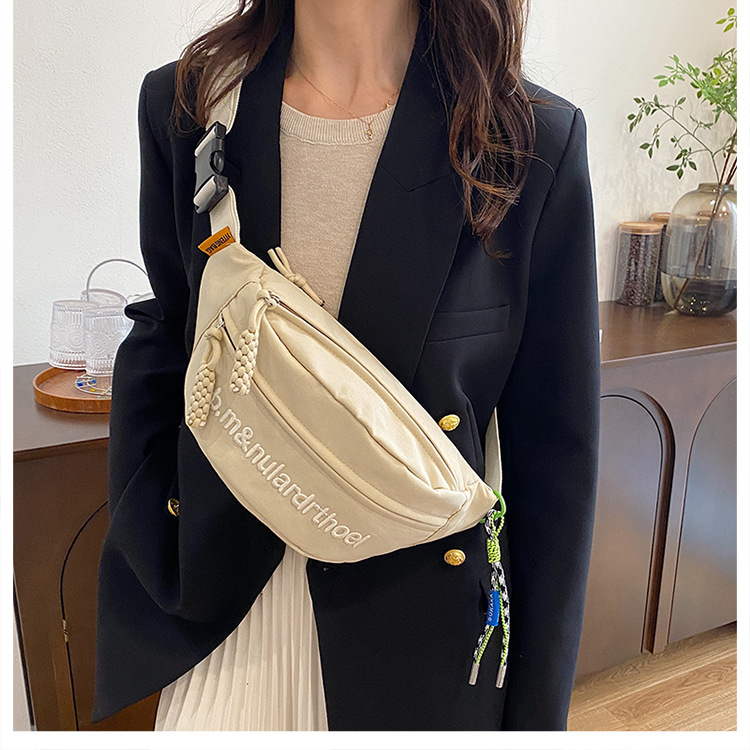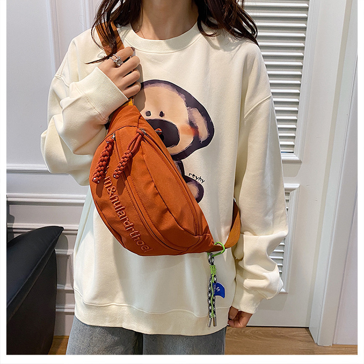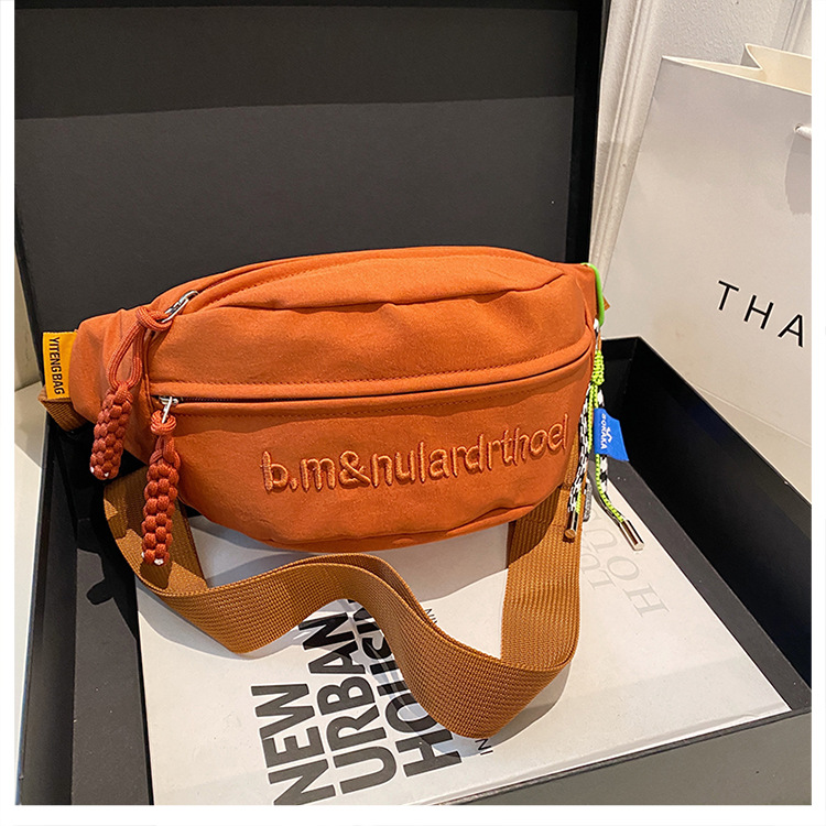 Bolsa de lona para mujeres 2025, nuevo estilo coreano de bolso de mochila deportiva casual popular, bolso de pecho de fuego, bolso de cintura de alta calidad