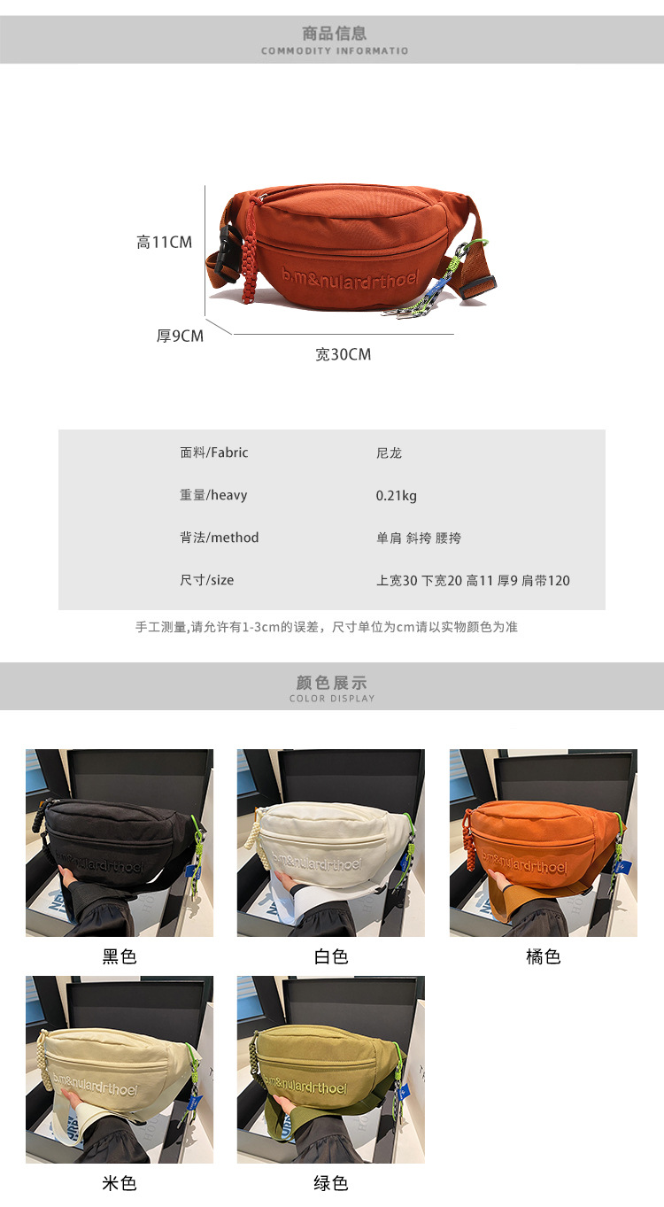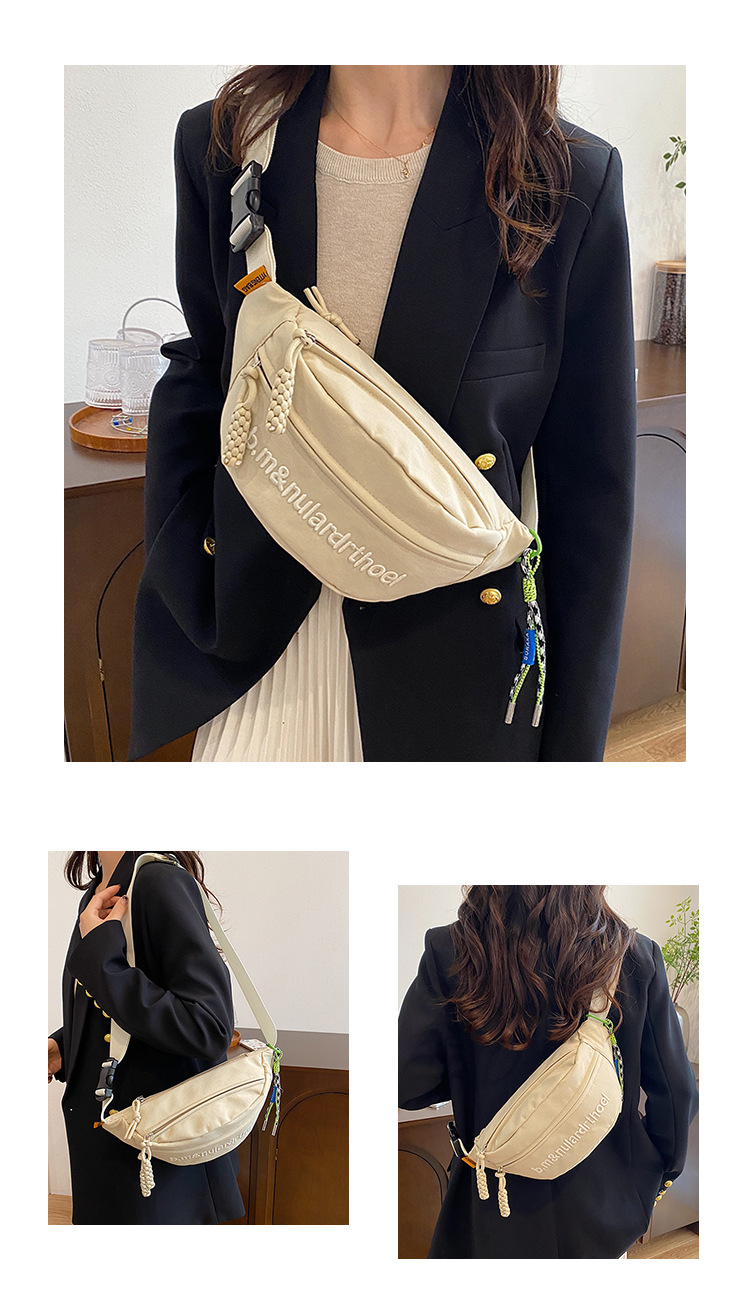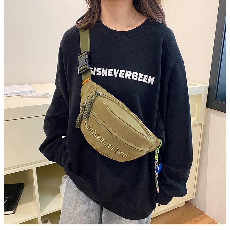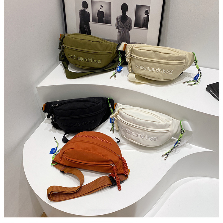 Bolsa de lona para mujeres 2025, nuevo estilo coreano de bolso de mochila deportiva casual popular, bolso de pecho de fuego, bolso de cintura de alta calidad