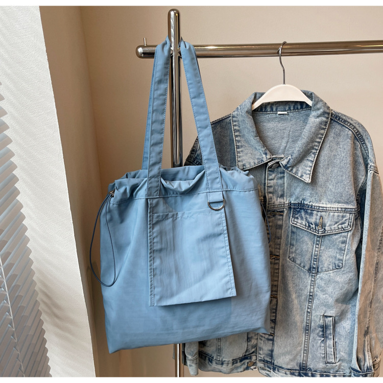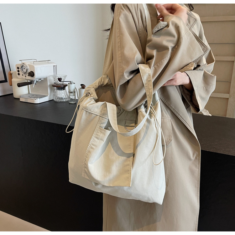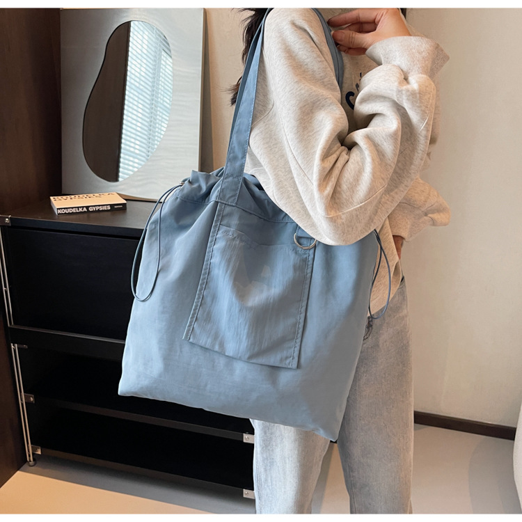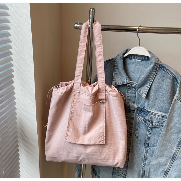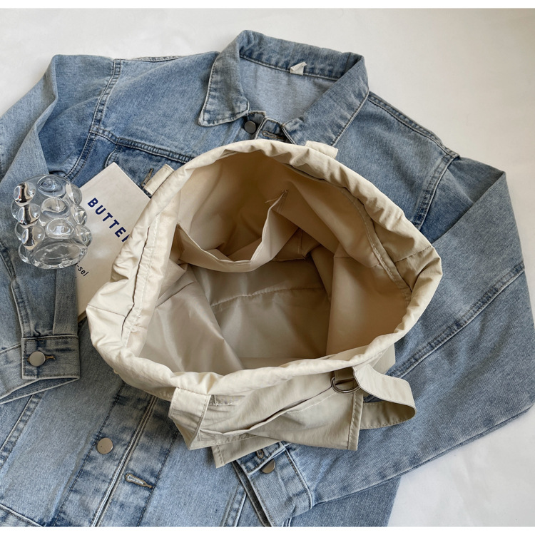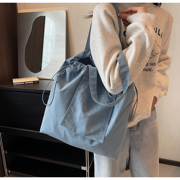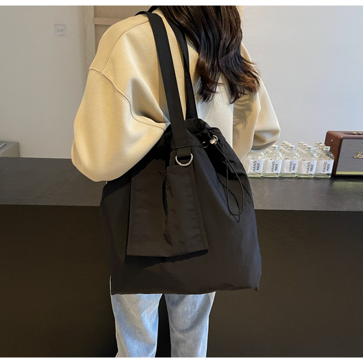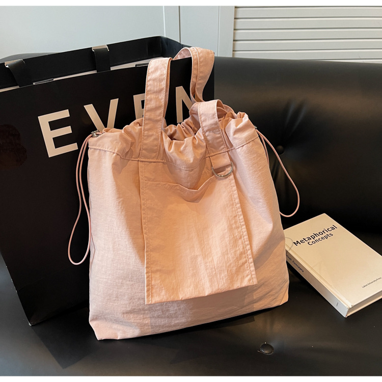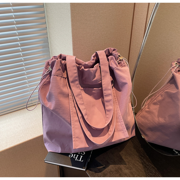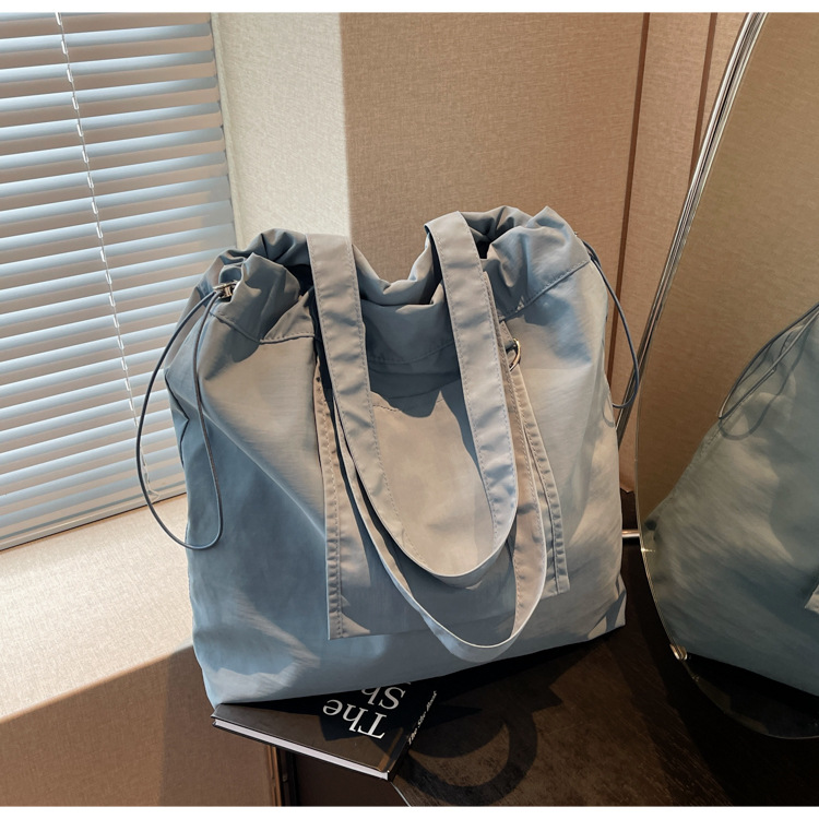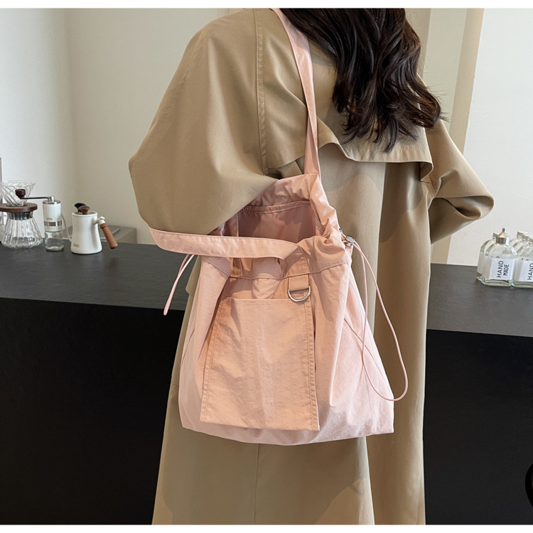 Bolsa de tela de nylon impermeable para mujeres 2025 nuevo tipo bolso de cubo de viaje ligero de gran capacidad bolso de hombro portátil para estudiantes universitarios