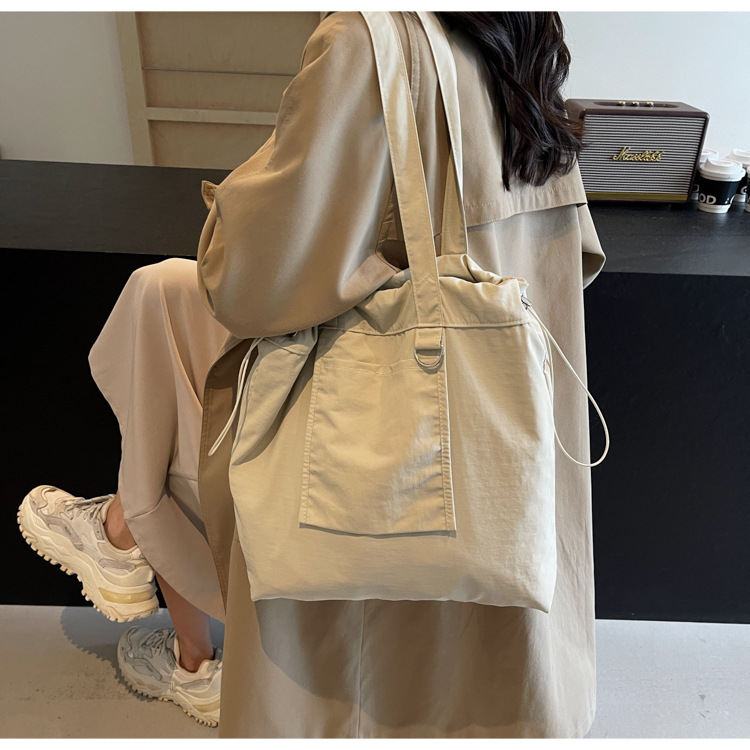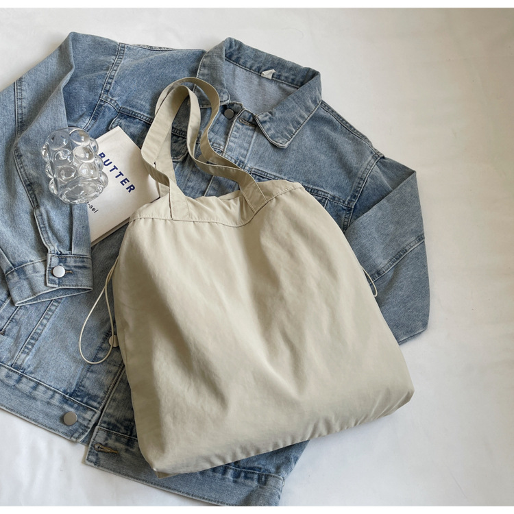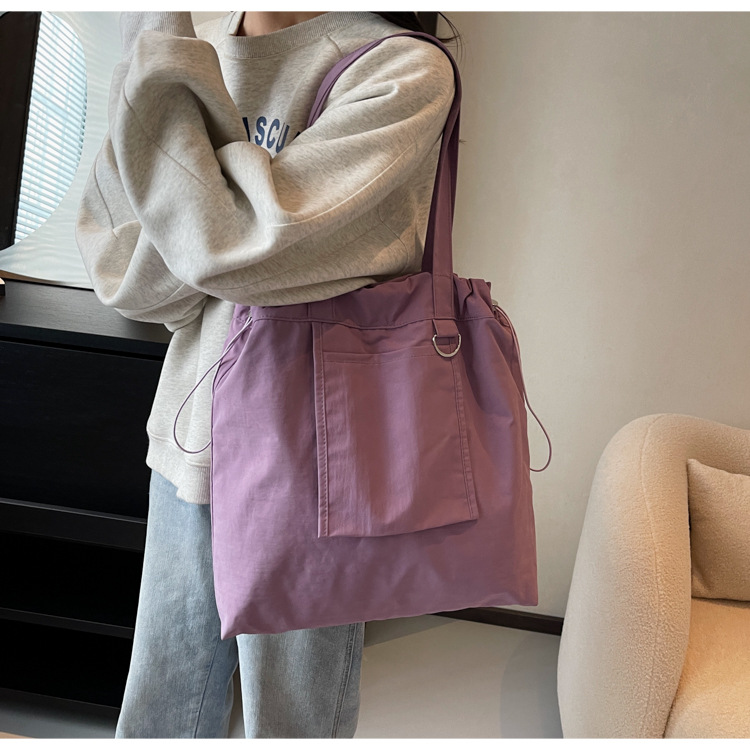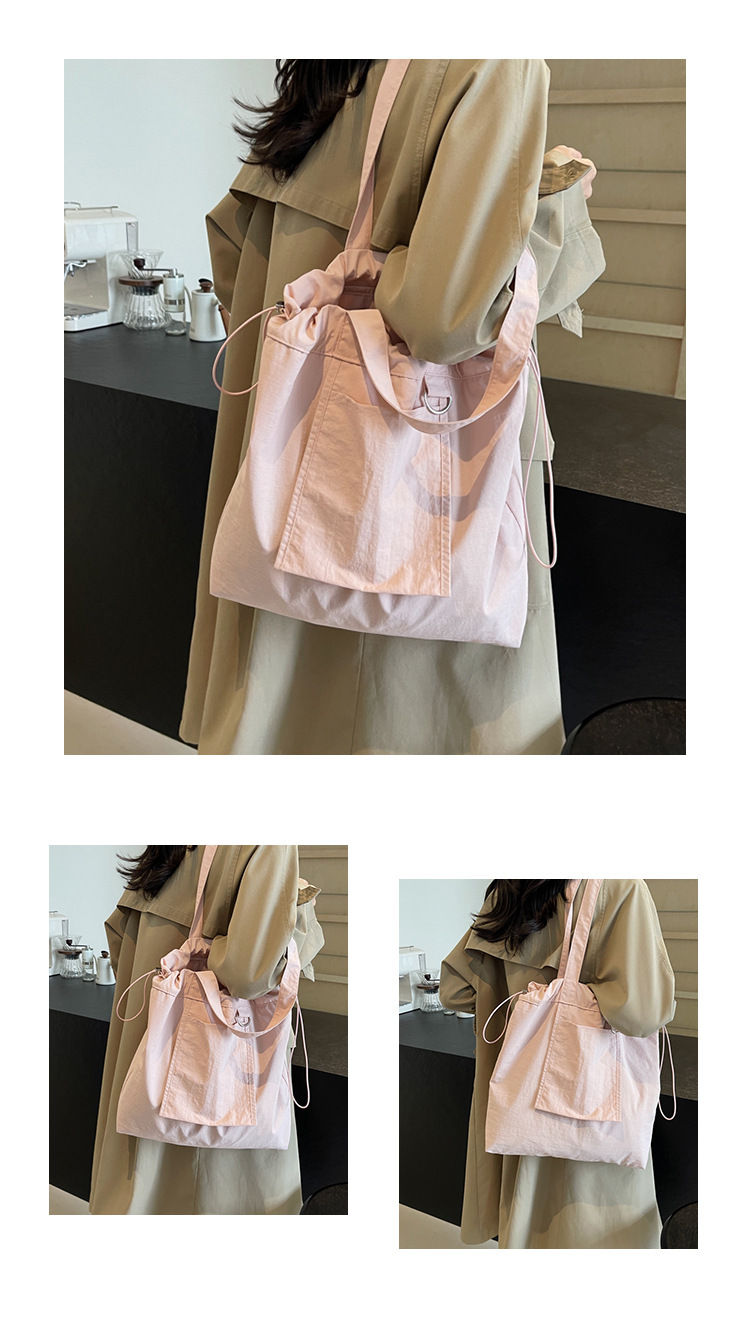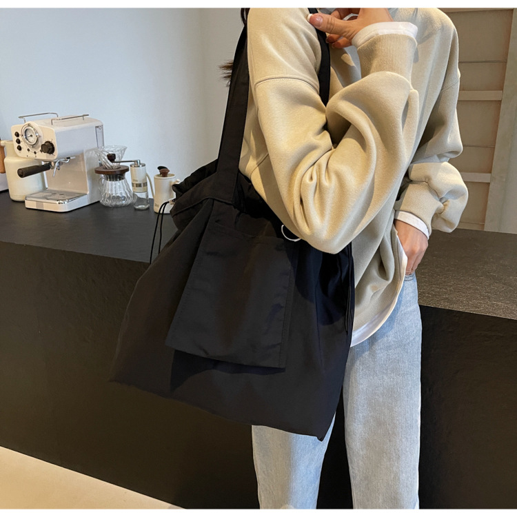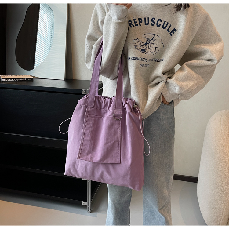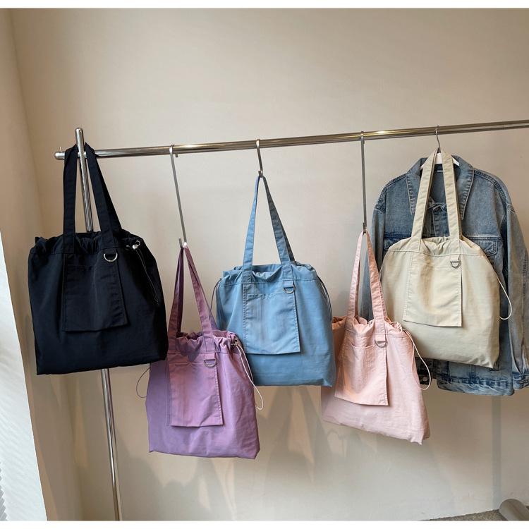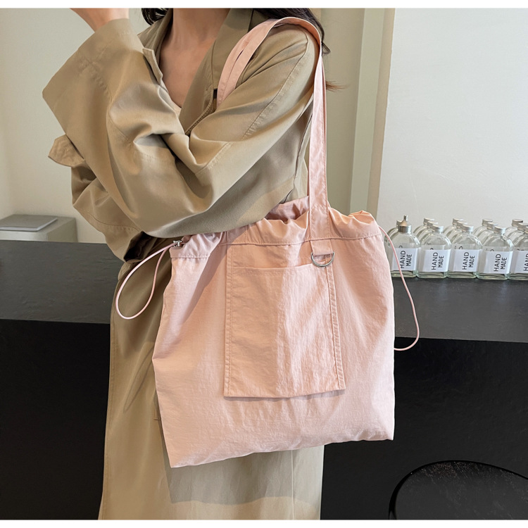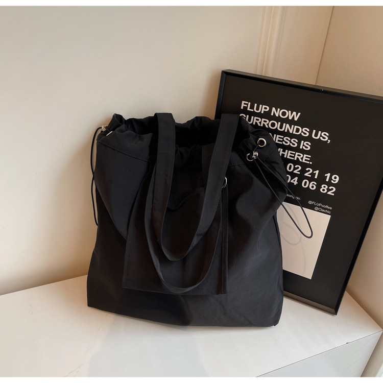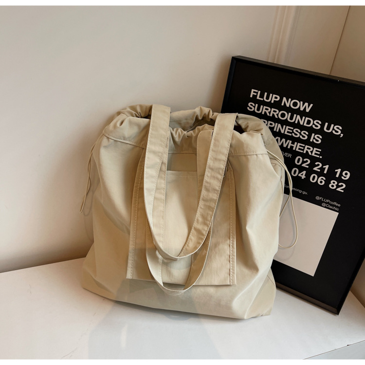Bolsa de tela de nylon impermeable para mujeres 2025 nuevo tipo bolso de cubo de viaje ligero de gran capacidad bolso de hombro portátil para estudiantes universitarios