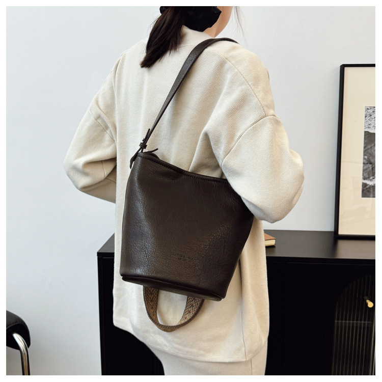 Este año, bolsos populares de mujeres de gran capacidad 2025, nueva moda retro, bolsos de hombro de alta calidad, bolsos de cubo de agua.