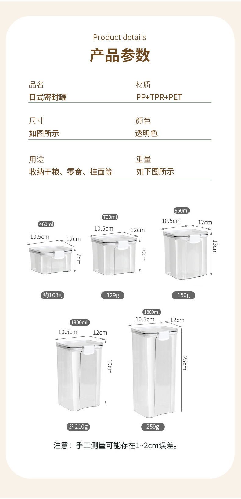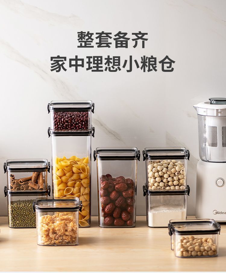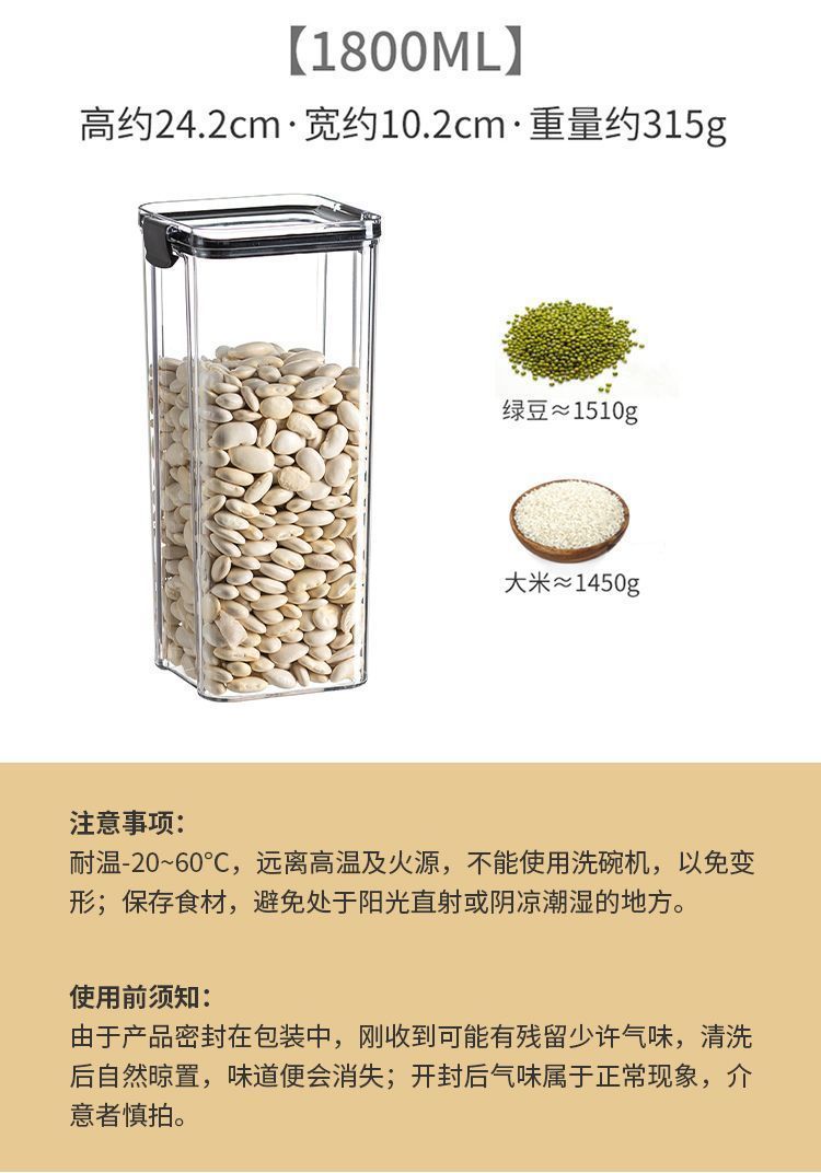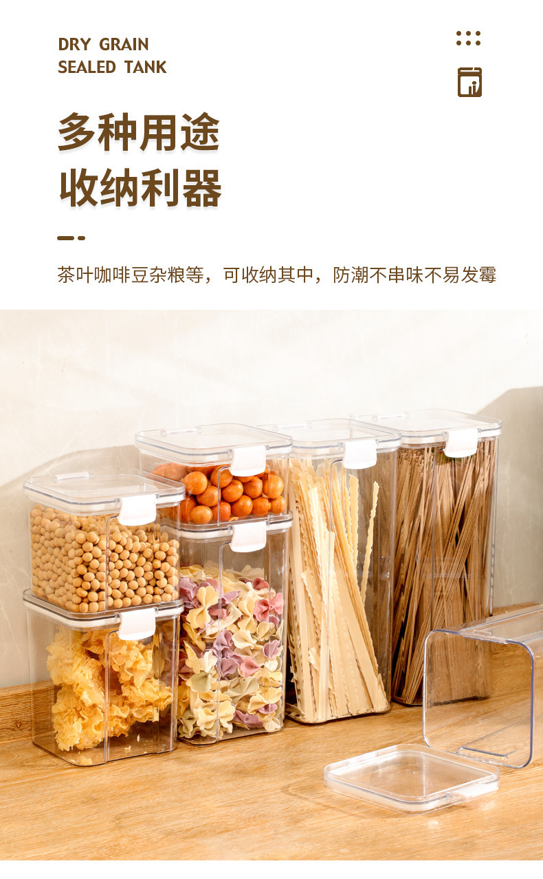 Tanque sellado de granos integrales, tanque de almacenamiento de té, tanque sellado de grado alimenticio transparente para el hogar, caja de almacenamiento de plástico, tanque de grano diverso