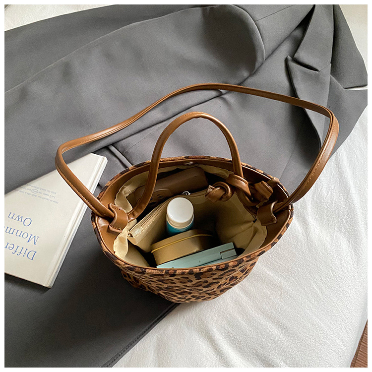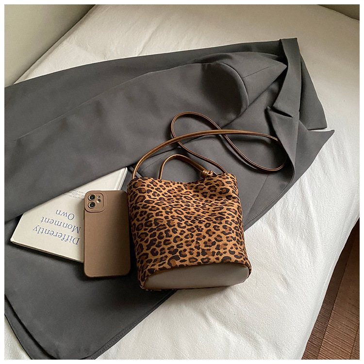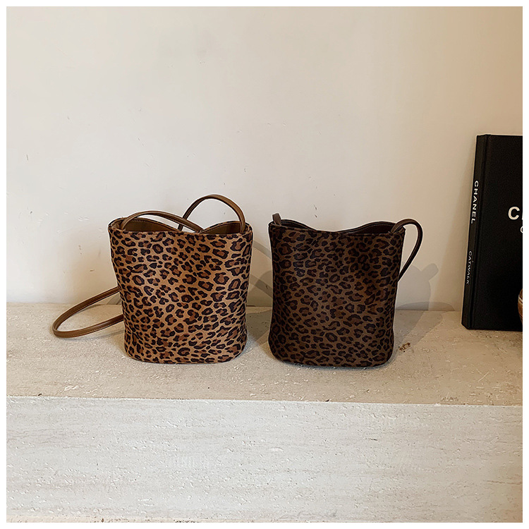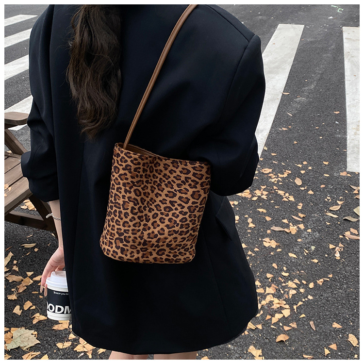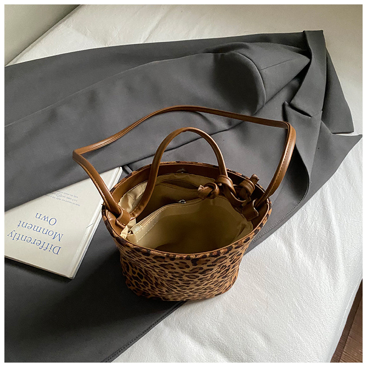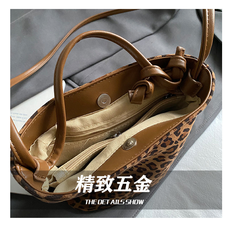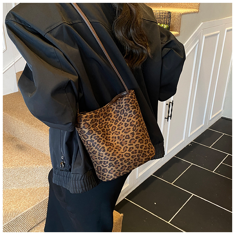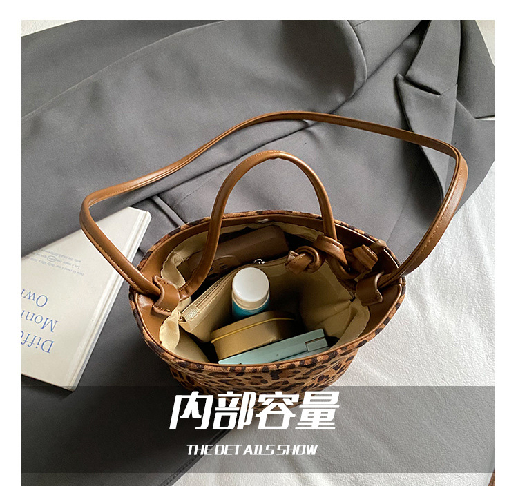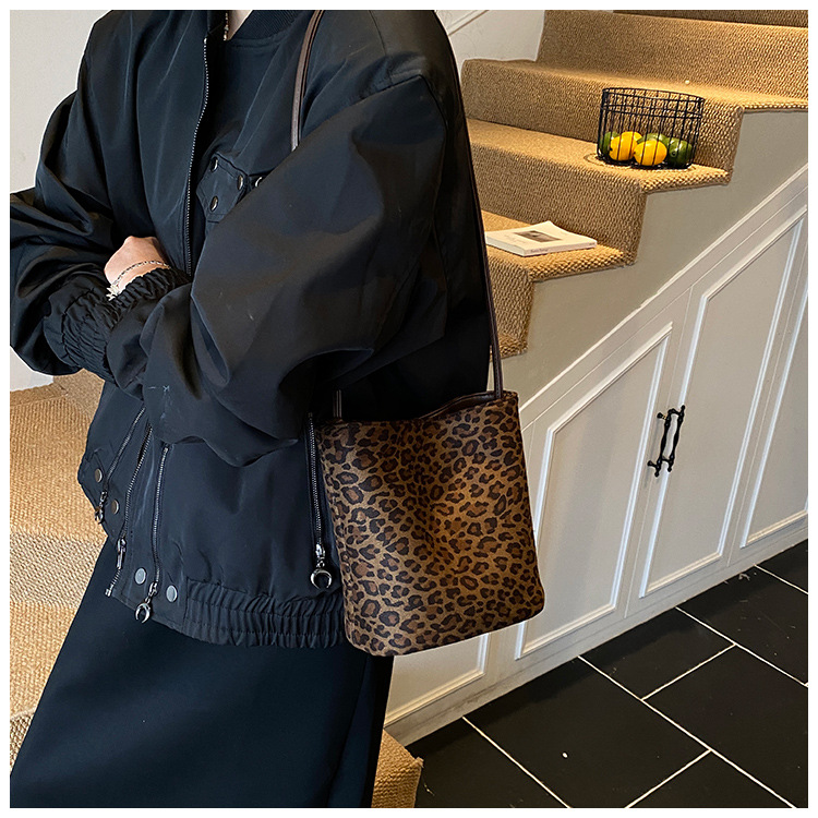 Transfronterizo leopardo bolso 2025, otoño y invierno nuevo bolso de cubo de gran capacidad, bolso de hombro retro de mujer, bolso de transporte