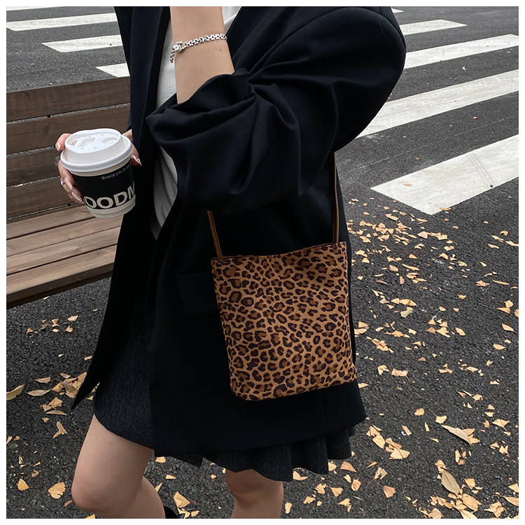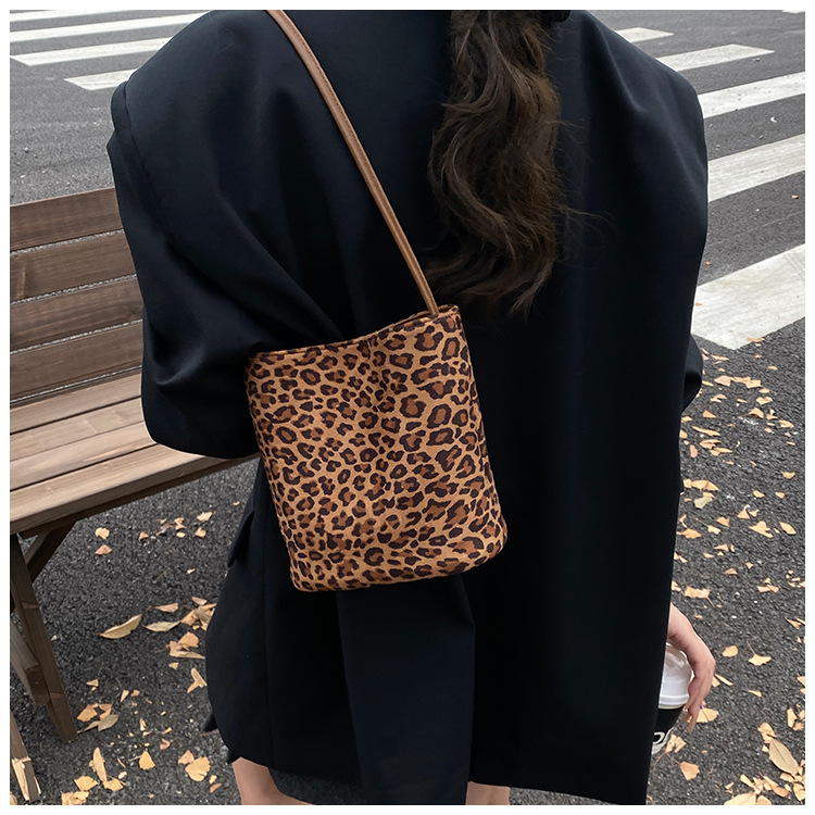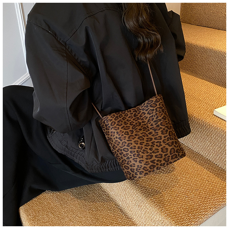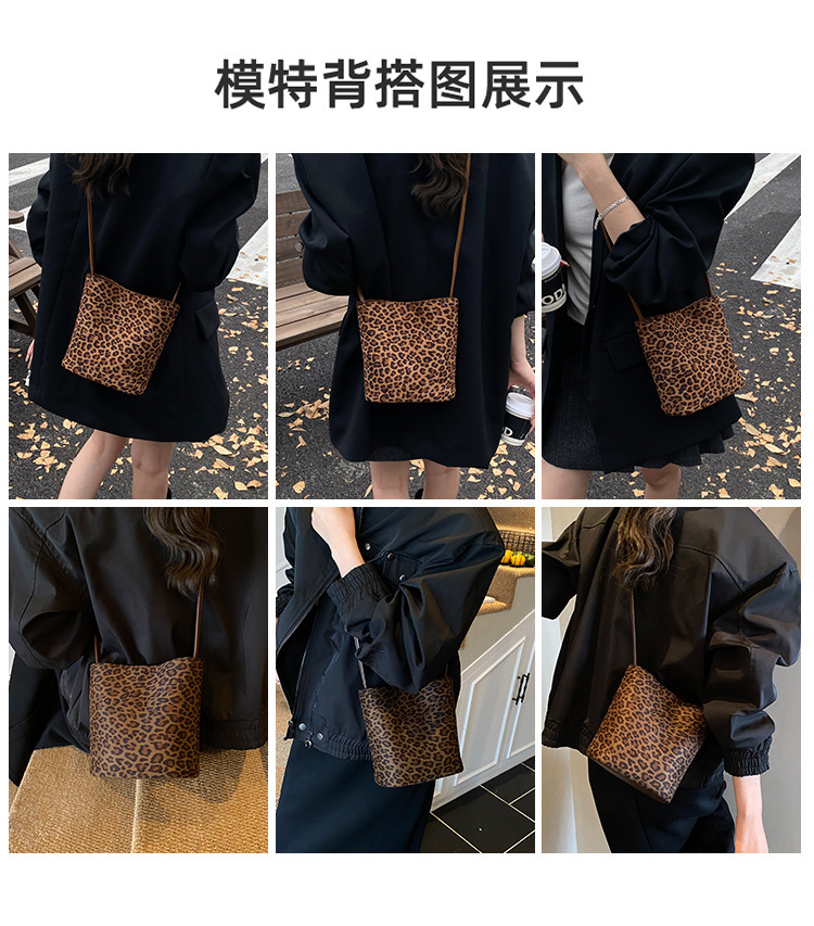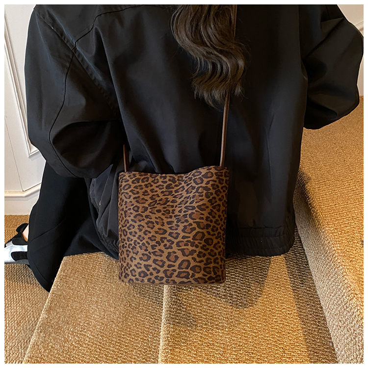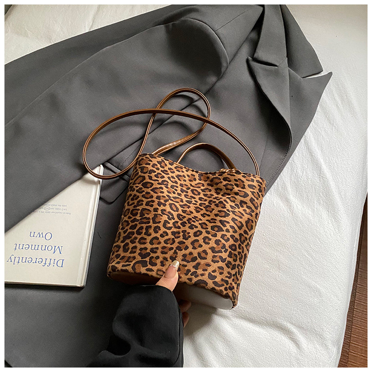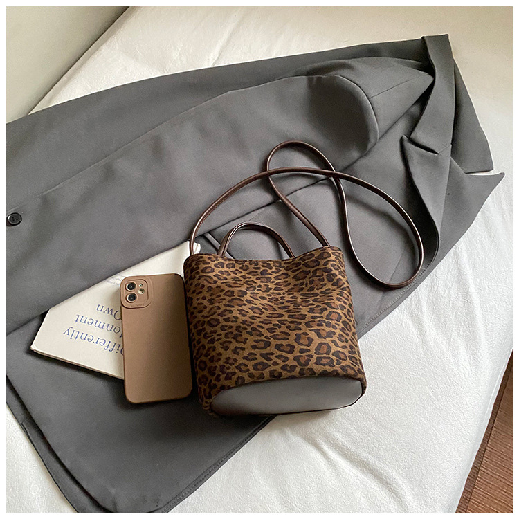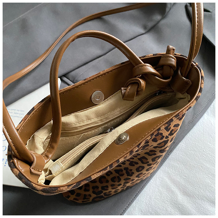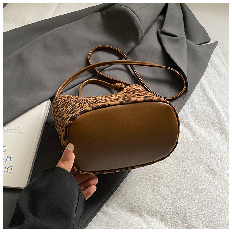 Transfronterizo leopardo bolso 2025, otoño y invierno nuevo bolso de cubo de gran capacidad, bolso de hombro retro de mujer, bolso de transporte