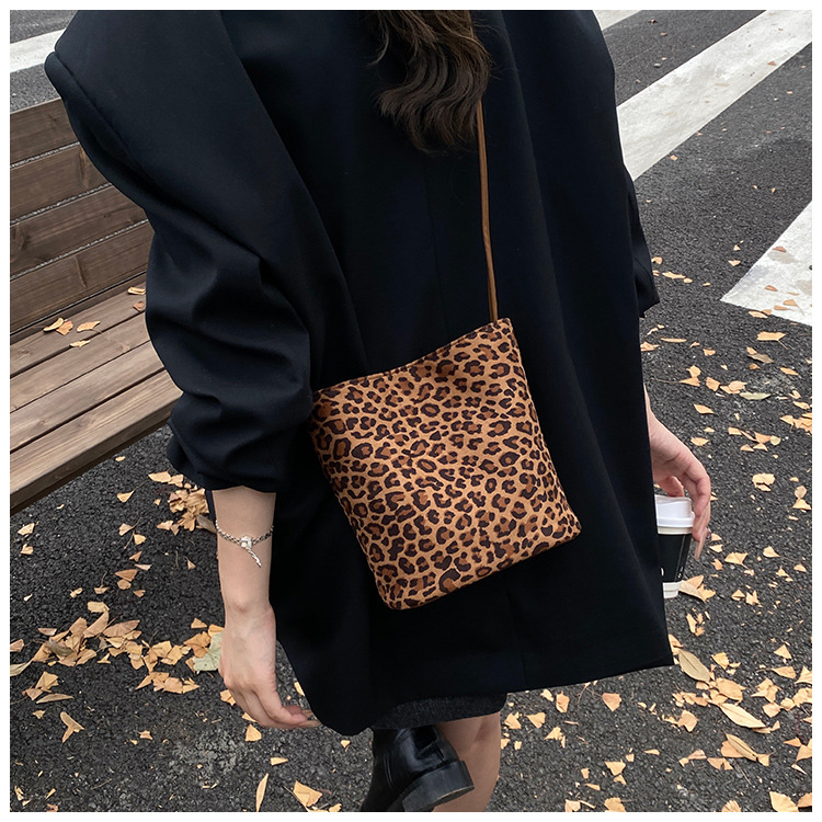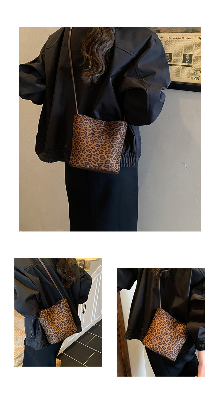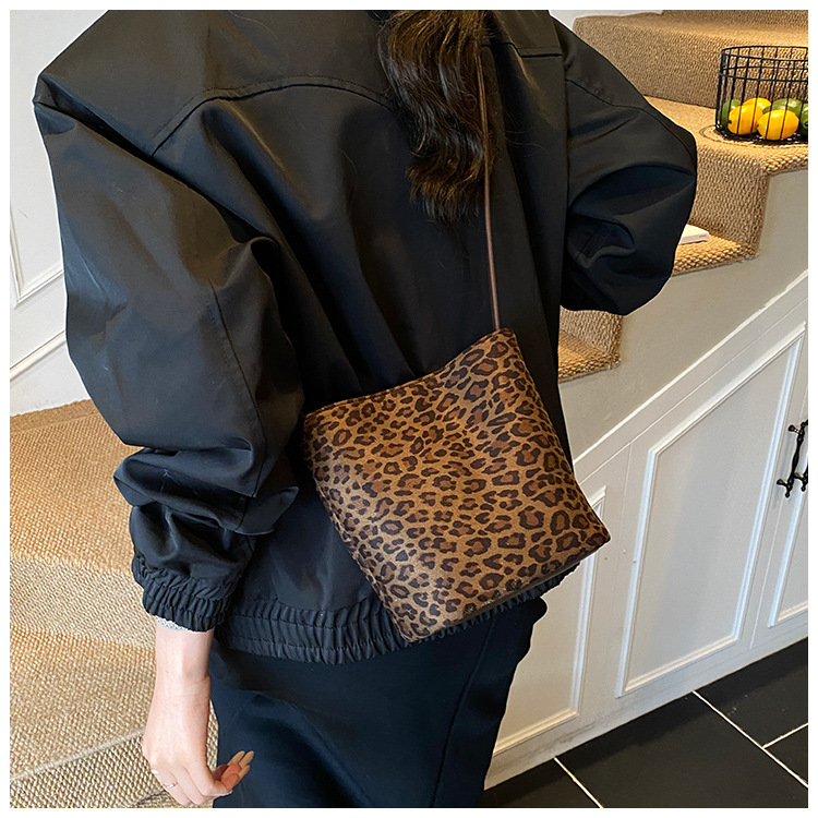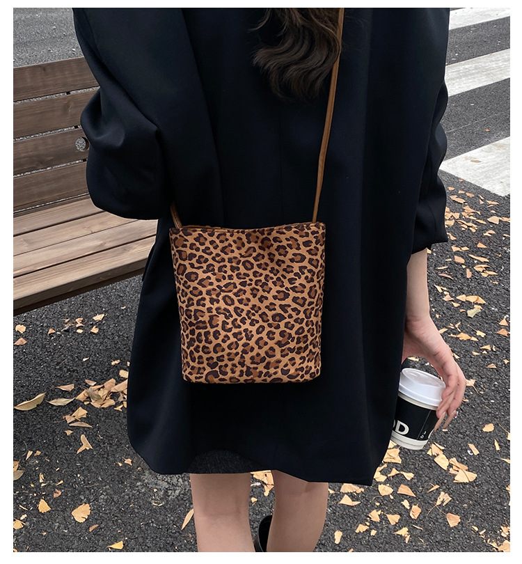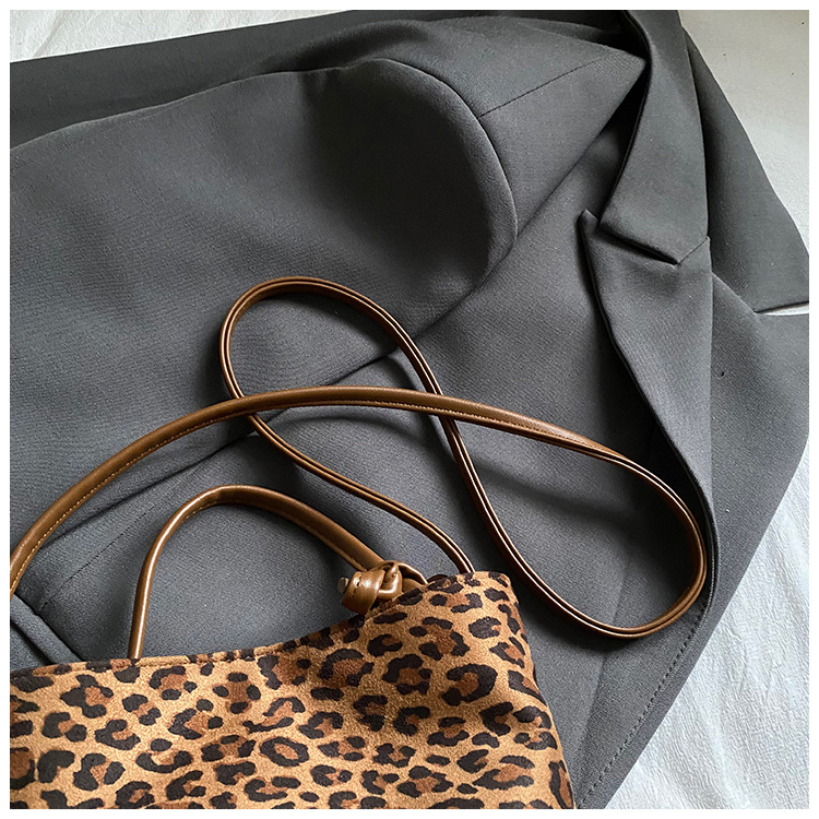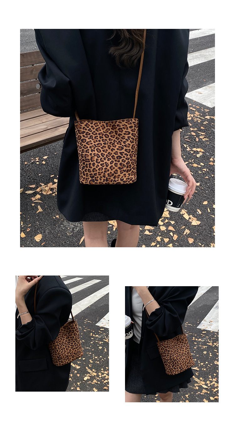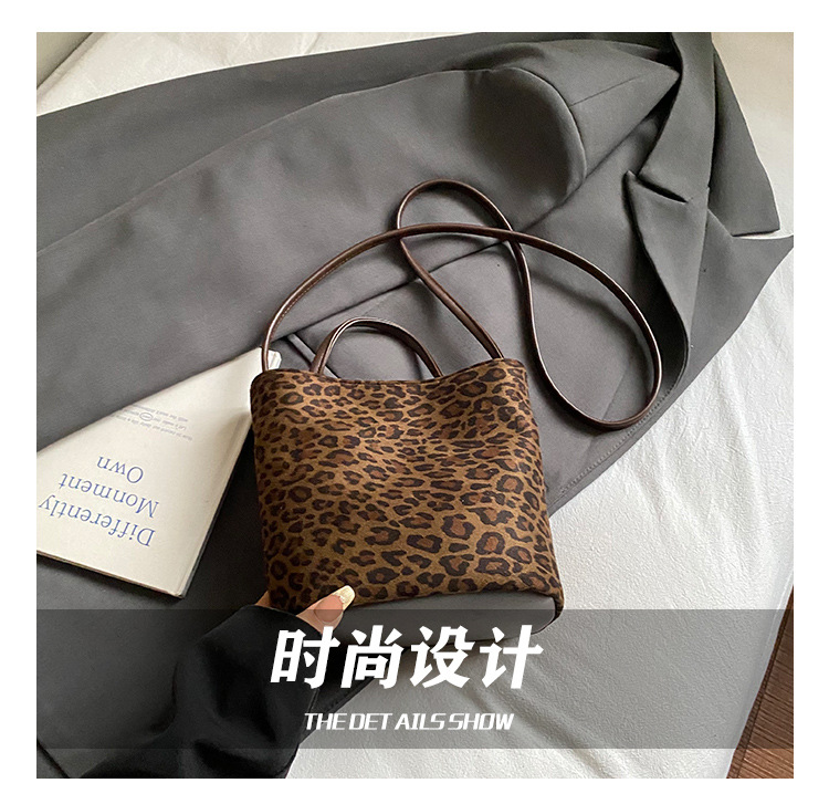 Transfronterizo leopardo bolso 2025, otoño y invierno nuevo bolso de cubo de gran capacidad, bolso de hombro retro de mujer, bolso de transporte