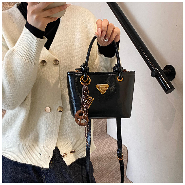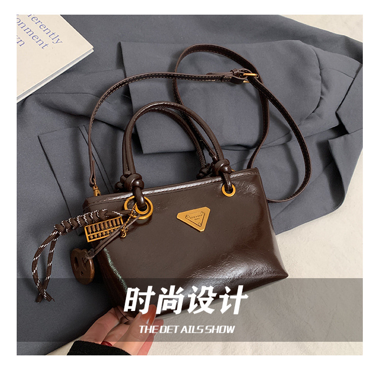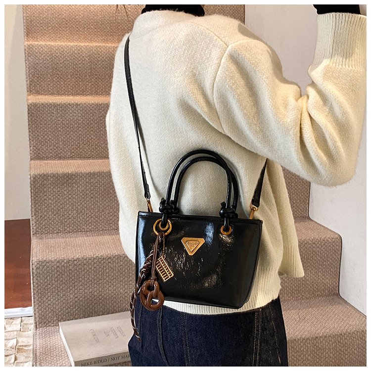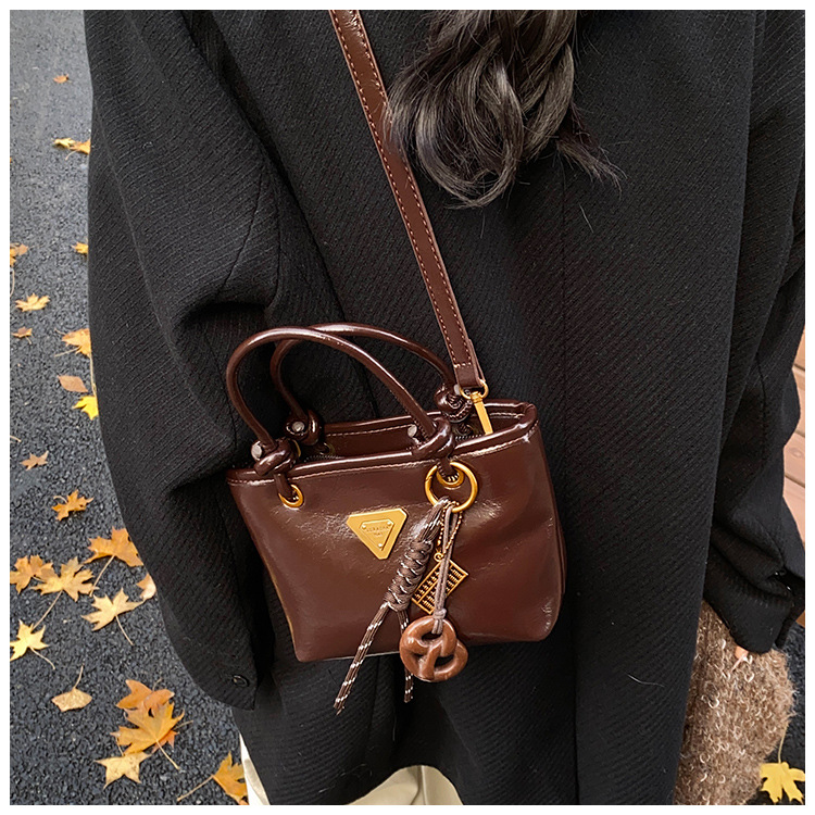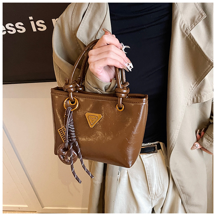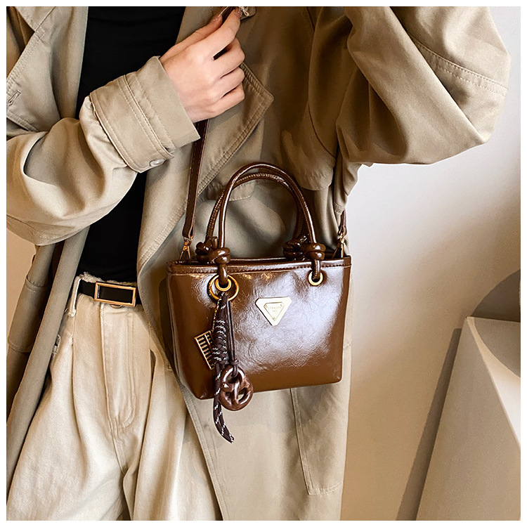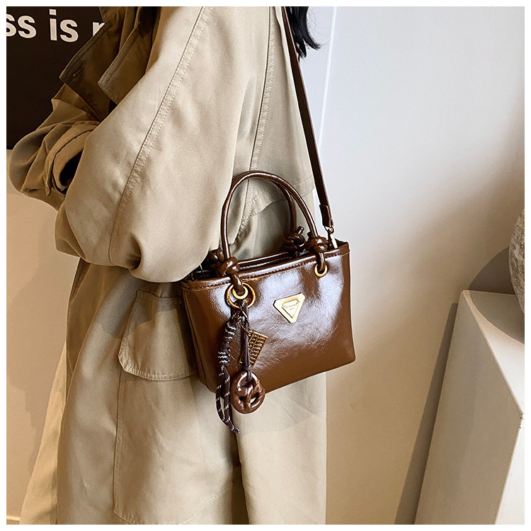 Bolsa de mano de piel de cera retrógrada para mujeres 2024 otoño y invierno nuevo estilo versátil bolso de cubo de viaje de moda mochila casual
