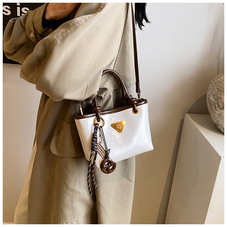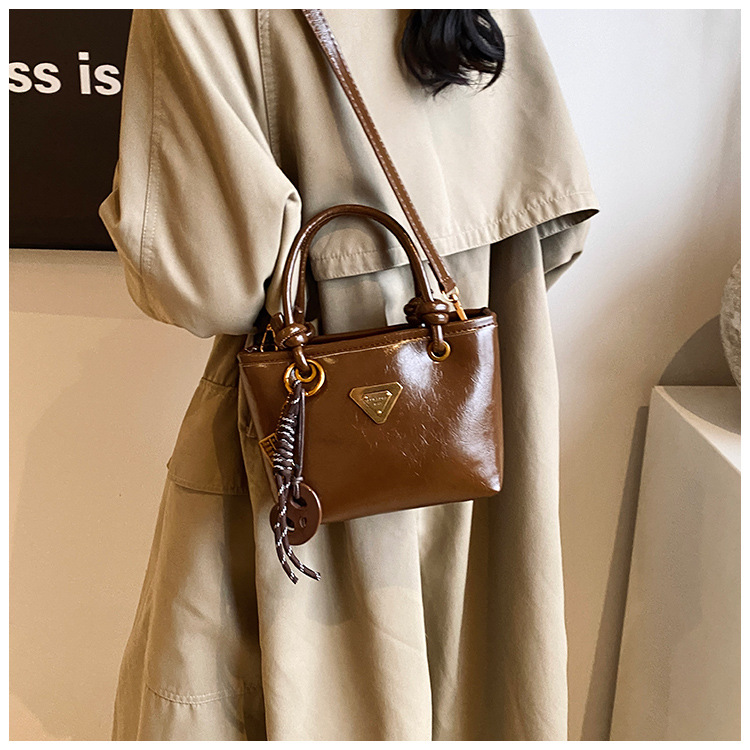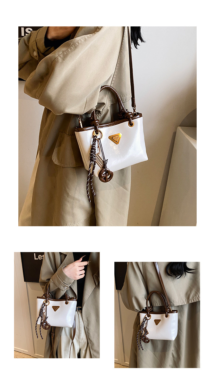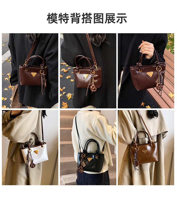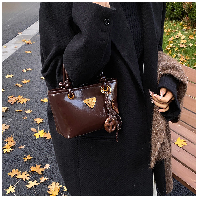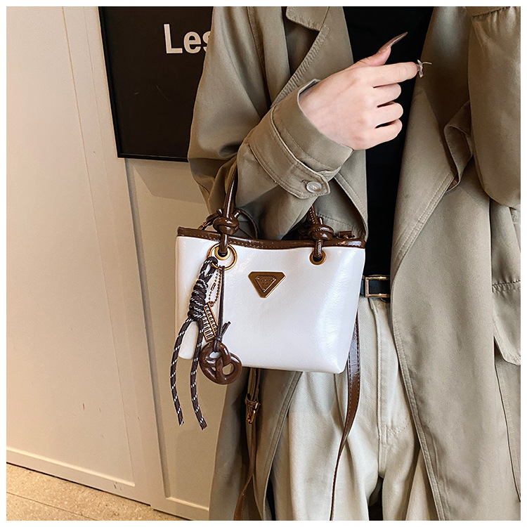 Bolsa de mano de piel de cera retrógrada para mujeres 2024 otoño y invierno nuevo estilo versátil bolso de cubo de viaje de moda mochila casual