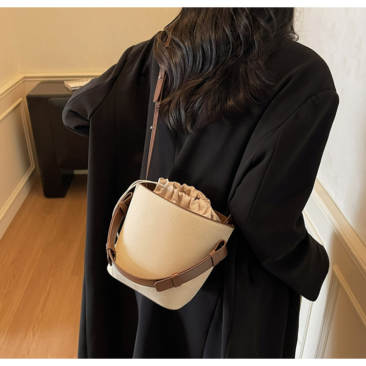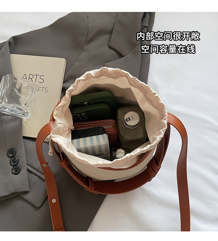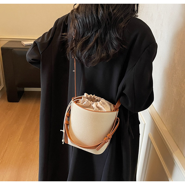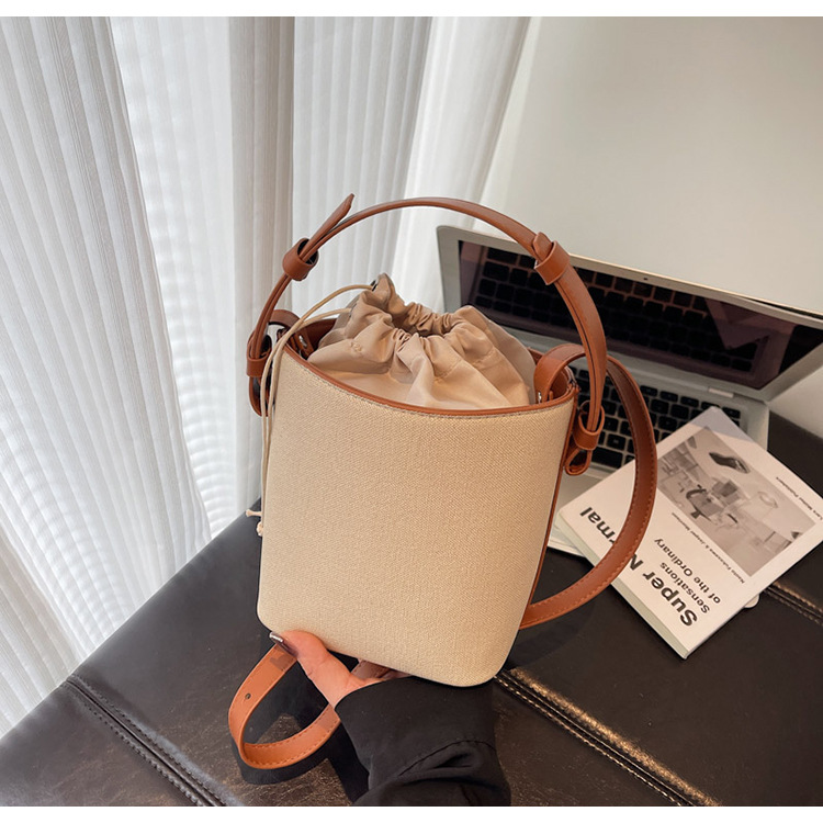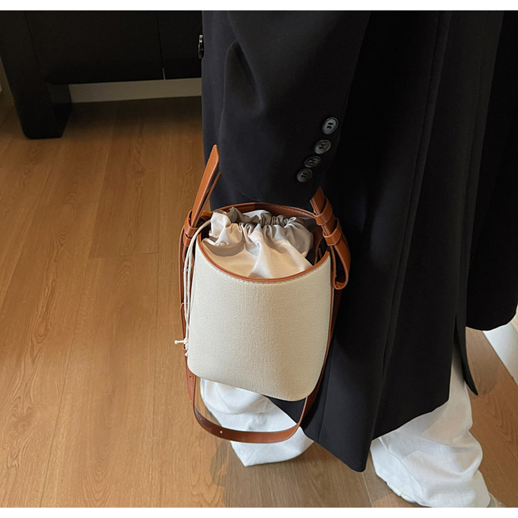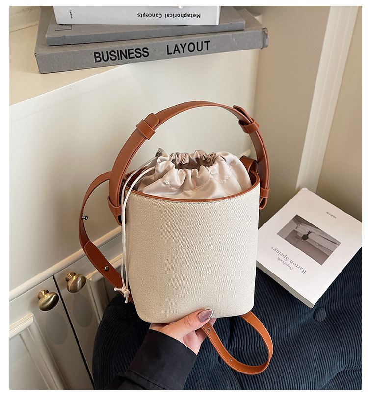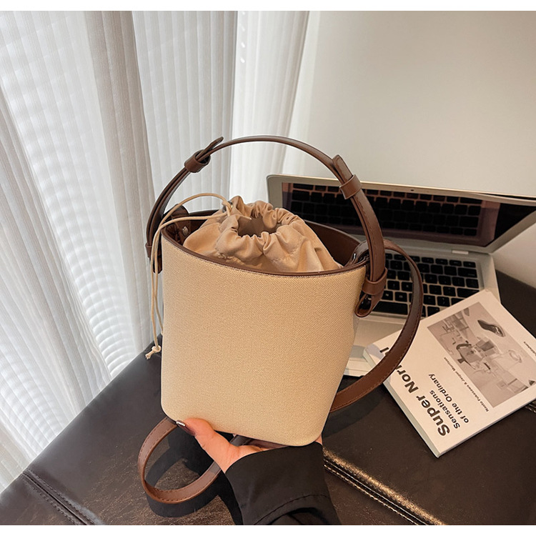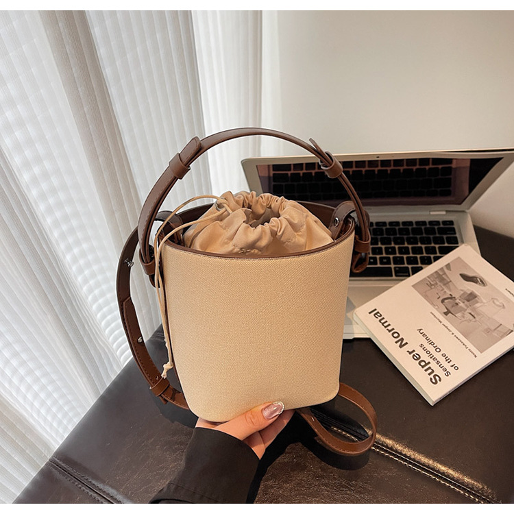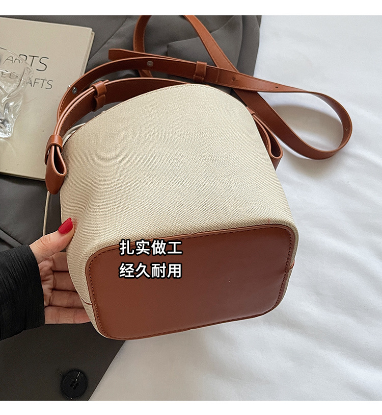 2025 nueva bolsa de cubo de lona de color de contraste para mujeres de alto nivel nicho de diseño de viaje de hombro portátil bolso de mano